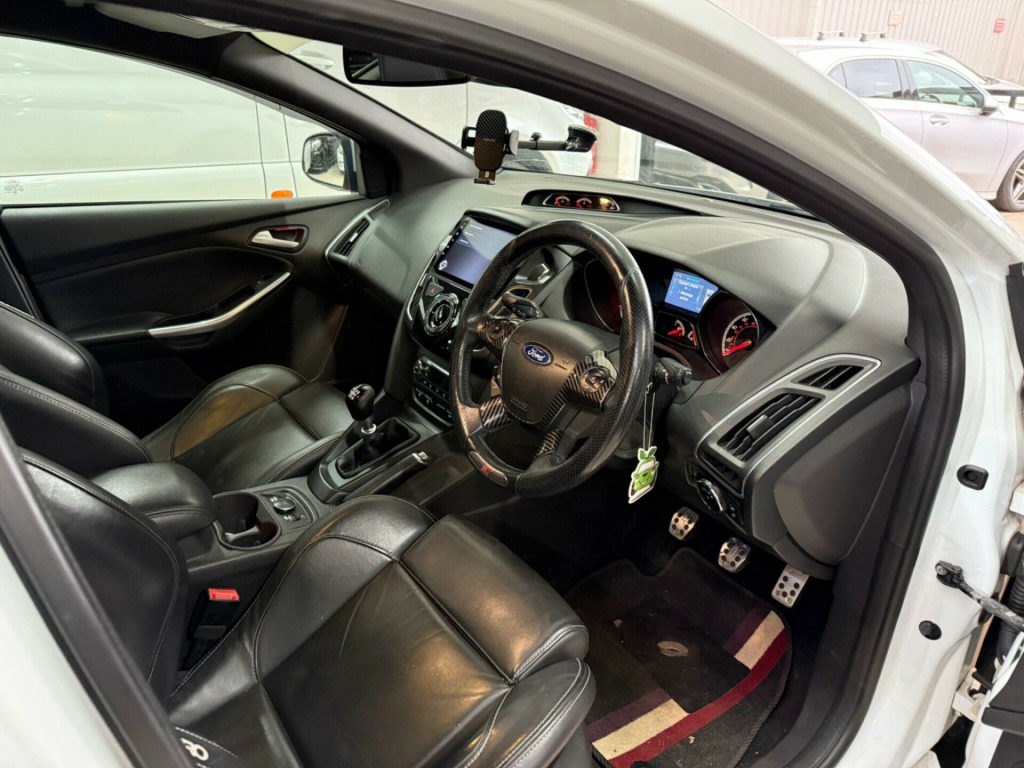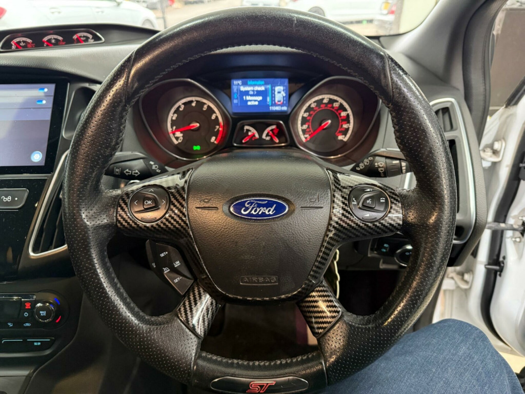 . 12V Power Socket - Additional Front, 12V Power Socket - Additional Rear, 12V Power Socket - Front, 18in Alloy Wheels, 4.2in TFT Display, ABS - Anti-lock Braking System, AUX Connection, Airbags - Curtain, Airbags - Front Passenger, Airbags - Side Impact, Armrest - Centre Console, Automatic Dimming Rear View Mirror, Automatic Rain Sensing Wipers, Bi-Xenon Headlights, Body Colour Side Skirts, CD storage, Central Locking - Keyless Entry, Centre Console with open Stowage Bins, City Pack, DAB Digital Radio, DDS - Deflation Detection System, DEATC - Dual-Zone Electronic Automatic Temperature Control, Drivers Airbag, EBA - Emergency Brake Assist, EBD - Electronic Brakeforce Distribution, EPAS - Electric Power Assisted Steering, ESP - Electronic Stability Programme, Emergency Brake Lights, Ford Easy-Fuel Capless Refuelling System, Ford Power Engine Start-Stop Button, Ford SYNC, Front Fog Lights, Front Grille - Chrome, Headlights - Jet Wash, Headlights - Static Cornering Lights, Heated Driver and Passenger Seats, Heated Front Windscreen, Heated Washer Jets, Heated Windscreen, IPS - Intelligent Protection System, LED Daytime Running Lights, Locking Wheel Nuts, Mini Steel Spare Wheel, Open Stowage Bins, Parking Sensor - Rear, Rear Lights - Dark Smoke Tinted LED, Rear Seat - Two height adjustable head restraints, Rear Spoiler - Body Colour, Recaro Sculpted 3-Seater Rear Bench Seat, Remote Central Locking, ST Front Door Scuff Plates, ST Full Body Styling Kit, Seats - Drivers Electric Adjustment, Seats - Front 8-Way Power Adjustment, Seats - Front Recaro Sports, Seats - ISOFIX Mounting Brackets for Child Seats, Sony Radio-CD, Sports tuned suspension, Steering Wheel - 4 Spoke Leather Trimmed, TVC - Torque Vectoring Control, Thatcham Category 1 Alarm, Traction Control - TC, Trip Computer, USB Connection, Unique ST Floor Mats - Front and Rear, Unique ST Instrument Cluster Binnacle, Unique ST Leather Gearshift Knob, Unique ST Rear Spoiler, Unique ST pedals, Voice Control - Audio, Z-Shape Handbrake.