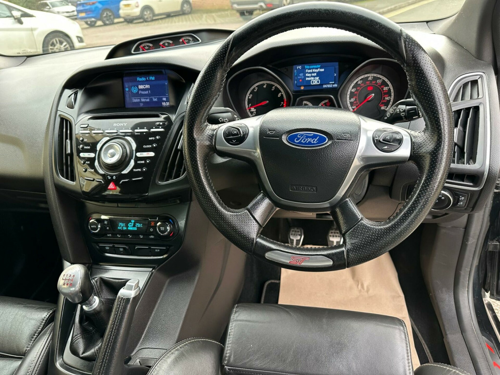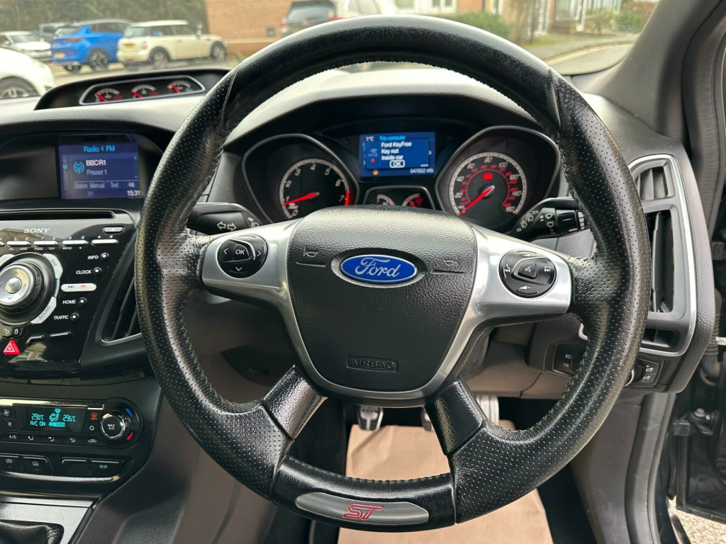 This 2014 Ford Focus T ST-3 presents an exceptional opportunity with its remarkably low mileage of just 48,000 miles for its age, a clear vehicle history check, and a powerful 2.0L petrol engine. This ST-3 variant boasts a wealth of notable features designed for comfort and convenience, including Bluetooth handsfree and voice control, automatic headlights, rear parking sensors, and dual zone electronic automatic temperature control for personalised comfort. Additionally, both the driver and passenger seats are heated, ensuring a pleasant experience in all weather conditions.The Ford Focus T ST-3 truly stands out with its impressive acceleration, achieving 0-62mph in a swift 6.5 seconds, demonstrating its performance capabilities. This model also offers generous boot space, making it a practical choice for everyday use and longer journeys alike. These highlights collectively indicate that this particular Ford Focus T ST-3 offers a superior driving experience and enhanced practicality compared to many other vehicles in its class.. 12V Power Socket - Front, 18in Alloy Wheels - Unique ST, 4.2in TFT Display, ABS - Anti-lock Braking System, AUX Connection, Air Conditioning - Dual Zone Electronic Automatic Temperature Control, Airbags - Curtain, Airbags - Front Passenger, Airbags - Side Impact, Automatic Dimming Rear View Mirror, Automatic Rain Sensing Wipers, Bi-Xenon Headlights, Bluetooth Handsfree and Voice Control, Central Locking - Keyless Entry, City Pack, DDS - Deflation Detection System, Door Handles - Body Colour, Door Mirrors - Heated - Electric - Auto Foldable - Integrated Side Indicators - Body Coloured, Drivers Airbag, EBA - Emergency Brake Assist, EBD - Electronic Brakeforce Distribution, EPAS - Electric Power Assisted Steering, ESP - Electronic Stability Programme, Electric Windows - Front and Rear with One Touch Drivers, Emergency Assistance, Emergency Brake Lights, Ford Power Starter Button, Ford SYNC, Front Fog Lights, Headlights - Automatic, Headlights - Jet Wash, Heated Driver and Passenger Seats, Heated Front Windscreen, Heated Washer Jets, IPS - Intelligent Protection System, ISOFIX - Child Seat Attachments, LED Daytime Running Lights, Locking Wheel Nuts, Mini Steel Spare Wheel, Parking Sensor - Rear, Rear Lights - LED, Recaro Sculpted 3-Seater Rear Bench Seat, ST Front Door Scuff Plates, ST Full Body Styling Kit, Seats - 60-40 Rear Split Back, Seats - Front 8-Way Power Adjustment, Seats - Front Recaro Sports, Sony DAB CD MP3 and USB, Speakers - x10, Steering Column - Rake and Reach Adjustment, Steering Wheel - 4 Spoke Leather Trimmed, Steering Wheel - Multifunction, Suspension - Sports, TVC - Torque Vectoring Control, Thatcham Category 1 Alarm, Traction Control - TC, Trip Computer, USB Connection - iPod Connectivity, Unique ST Floor Mats - Front and Rear, Unique ST Leather Gearshift Knob, Unique ST Rear Spoiler, Unique ST pedals, Voice Control - Audio. Full service history