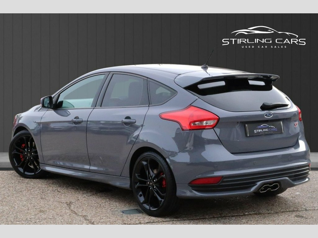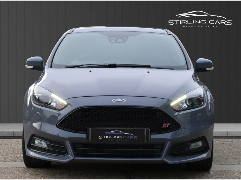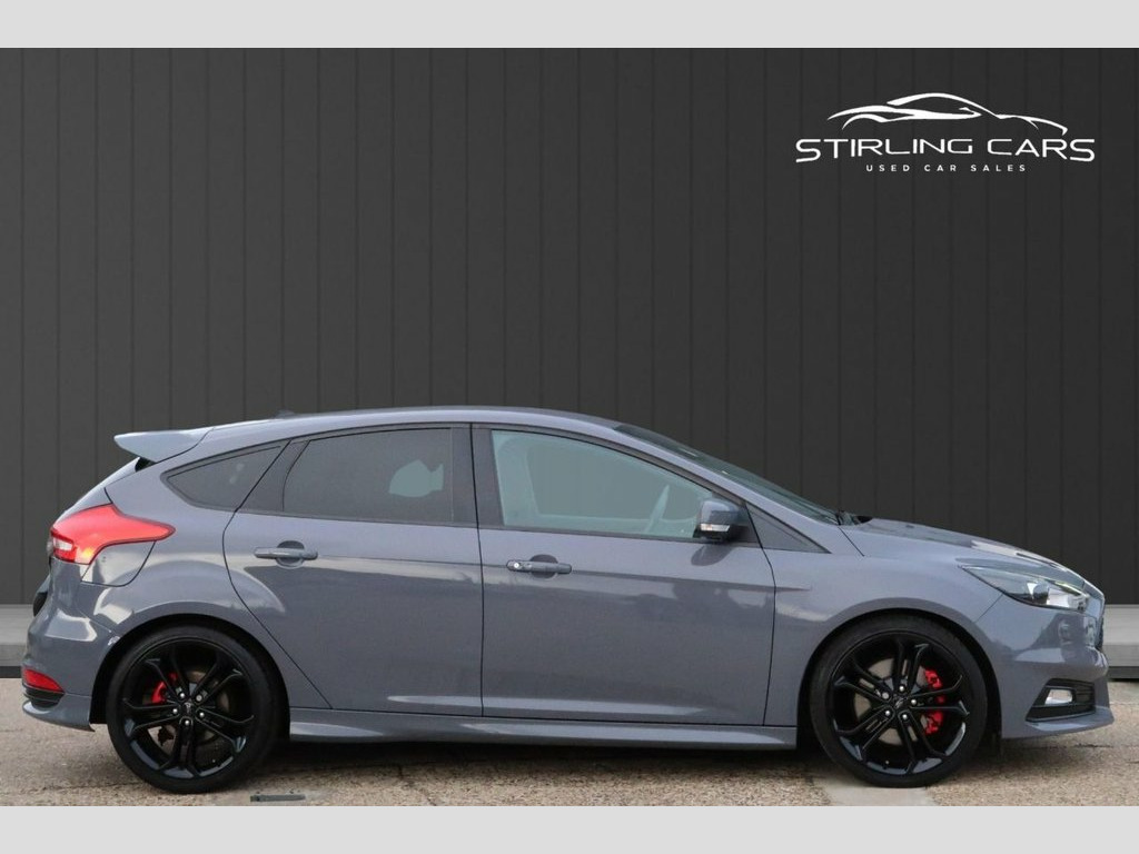 2017 (17) Ford Focus 2.0T EcoBoost ST-3 Hatchback 6-speed Manual in Stealth Grey with low mileage, MOT and warranty included. This outstanding Focus ST-3 offers the perfect mix of performance, comfort, and style. Powered by the 2.0-litre EcoBoost petrol engine producing 250PS, it delivers a thrilling drive with sharp handling and a precise manual gearbox, while still being practical for everyday use. Finished in stunning Stealth Grey with gloss black alloy wheels, red brake calipers, and a gloss black front grille, this ST-3 has real road presence. It also benefits from a professionally fitted Ghost immobiliser for added security and peace of mind. Inside, the cabin features heated Recaro leather sports seats with electric adjustment, a Sony premium sound system, Bluetooth audio and phone connectivity, rear-view camera, and start/stop technology. The build quality and comfort make it as enjoyable on long drives as it is on winding roads. This example comes with two keys, low mileage, MOT and warranty included, and has clearly been well cared for. Main extras include heated leather Recaro seats, electric front seats, rear camera, Sony audio system, Bluetooth audio and phone, Ghost immobiliser, gloss black alloy wheels, red calipers, gloss black front grille, and the desirable Stealth Grey paint finish. A superb, high-spec Focus ST-3 in excellent condition — powerful, stylish, and ready to drive away. Stealth, Rear View Camera, ST Black Style Pack, Rear Privacy Glass, 18in Alloy Wheels - Rock Metallic ST, Airbags - Driver and Front Passenger, Airbags - Front Side Impact, Airbags - Front and Rear Side Curtain, Alarm - Thatcham Category 1 with Volume , Anti-Lock Braking System - ABS with Elec, Automatic Dimming Rear View Mirror, Automatic Headlights, Bi-Xenon Headlights with Adaptive Lighti, Centre Console - Premium with Sliding Ar, City Pack, Colour TFT Instrument Cluster Display, Courtesy Lights - Ambient LED Courtesy L, Cruise Control with Active Speed Limiter, DEATC - Dual-Zone Electronic Automatic T, Door Mirrors - Body Colour Housing - Hea, Drivers and Passengers 8-Way Power Adjus, EP