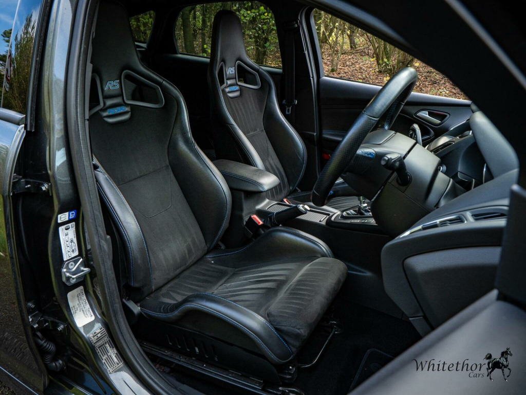 FREE DELIVERY WITHIN 200 MILES – Here we have a stunning Ford Focus RS finished in Magnetic Grey Metallic. This being the flagship RS model means it comes with fantastic spec from the factory, but this example also boasts the must have optional extras such as: Recaro Shell Front Seats – 19in Black Forged Alloy Wheels – Painted Brake Callipers (Blue) – Door Edge Protectors – and more. , Some highlights from the factory spec include: Bi-Xenon Headlights with Adaptive Lighting – 4 Preset Drive Modes (Normal/Sport/Track/Drift) – AWD Torque Vectoring Control – Nine Sony Audio Speakers – Performance Shift Light – Quickclear Heated Front Windscreen with Heated Washer Jets – RS Flat Bottom 3-Spoke Leather Trimmed Steering Wheel with RS Logo – SYNC3 with 8in Touchscreen DAB Audio System – and much more. This car has had 9 services in total (6 by Ford, 3 by Matt Lewis Motorsport) last carried out at 59,182 miles. The MOT expires November 2026. 3 Month £2000 Claim Limit Warranty is included with the sale but the option to upgrade to a 12M, 24M, & 36M £5000 Claim Limit Nation Wide Premium Autoguard Warranty with Breakdown Cover is available. Multiple Finance Options, Competitive Part Exchange Prices. All Cars Are HPI, MotorCheck & Experian Clear. Further Vehicle Delivery Options Also Available. All Rights Reserved - Whitethor cars exercise all reasonable care and skill in providing you with vehicle information and data. The specification is attained through HPI, Experian & Autotrader VRM. Options Sold as packs may be shown individually, spec check is a guide so please contact us or physically verify any info that is crucial.