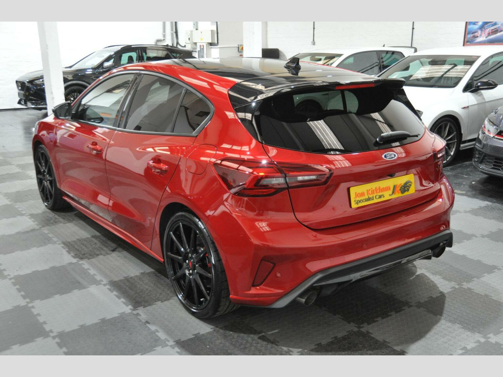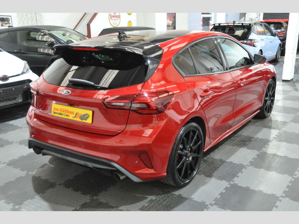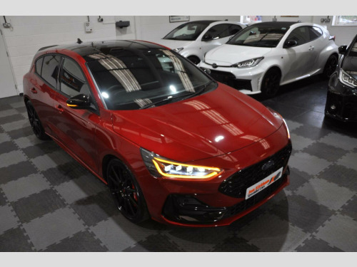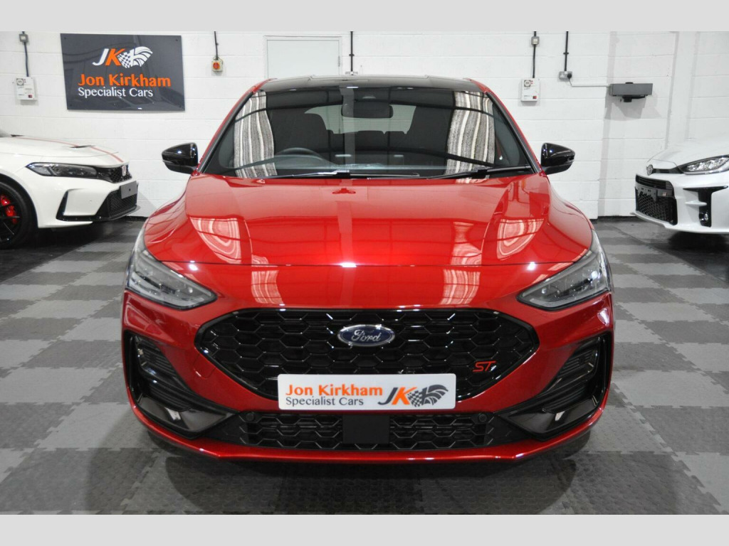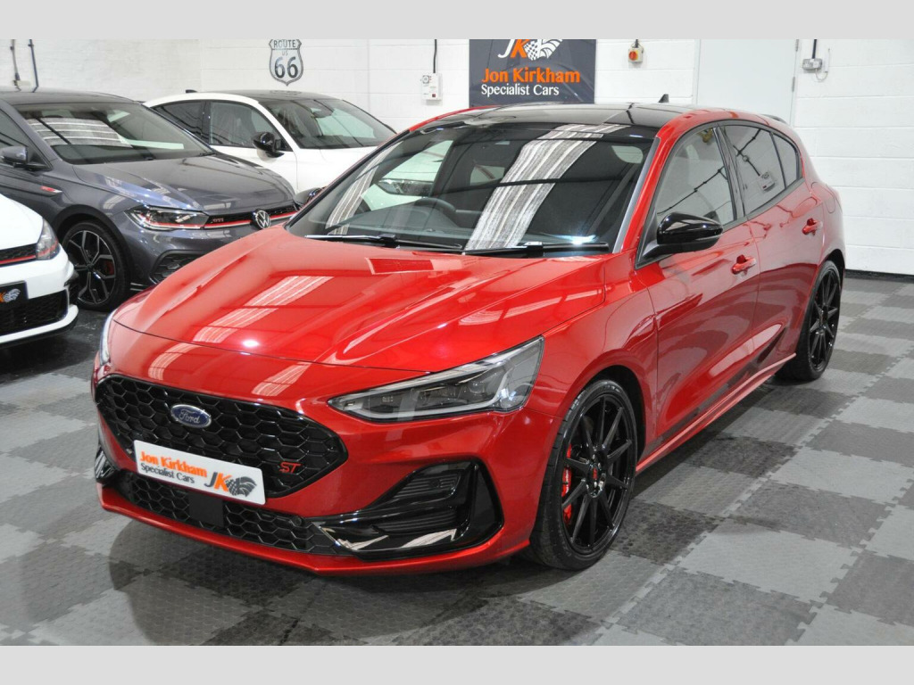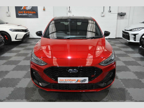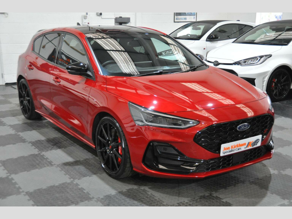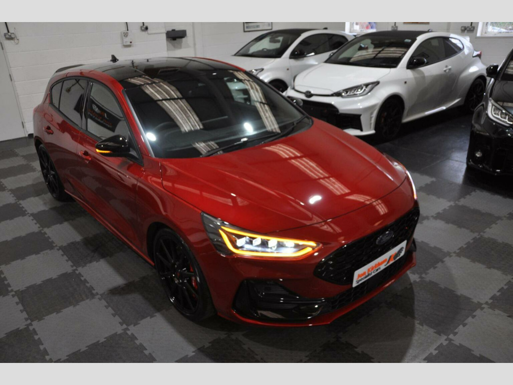 THIS EXAMPLE HAS NOW BEEN RESERVED,, , HOWEVER IF YOU HAVE A SIMILAR EXAMPLE, A SPORTS, PRESTIGE OR PERFORMANCE CAR, PLEASE CONTACT US WITH WHAT YOU HAVE, FOR A QUICK, HASSLE FREE SALE...WE OFFER A FRIENDLY, RELIABLE AND SAFE SERVICE, FROM A TRUSTED SPECIALIST. , WE CAN CLEAR FINANCE AND OFFER SECURE BANK TRANSFER WITH FASTER PAYMENT.YOU DO NOT HAVE TO BE BUYING A CAR FROM US, WE WILL ENDEAVOUR TO BEAT ANY GENUINE PART EXCHANGE OR TRADE PRICE. , PLEASE GET IN TOUCH IF YOU ARE CONSIDERING SELLING ANYTHING THAT MEETS OUR STOCK PROFILE. THANK YOU, , ⚠️ Viewings On Appointment Only Basis - We are a small but personal team, this ensures someone is available and to answer any questions you may have. , ????Test Drives will only be conducted as part of the collection process - Due to our specialist and cared for stock, be rest assured the car you buy, will not have been test driven by test pilots. , ???? Low Rate Finance - Unlike most dealers, WE DO NOT CHARGE ANY FINANCE COMMISSION, we pass the best rate onto our customers, take a look at our finance calculator. Worried you may not get finance? we have a panel of lenders that cater for various credit profiles (Contact us to discuss), , ???? Part Exchange Valuation - Please use our online part exchange or sell your car form. Worried your car does not suit our profile? We have a host of buying partners to best place your vehicle and provide a competitive valuation. , ???? Selling Your Vehicle - We are always looking to expand our stock inventory, if you are selling a car that meets our stock profile, submit the details via our sell your car form for a free valuation. , Here We Have One Of The Last Ford Focus ST (Track Pack) MK4.5, 2.3 Ecoboost Turbo (280ps), Manual, 5 Door, Rare Fantastic Red Metallic Paint, Half Black Leather Electric Ford Performance Bucket Seats. Registered Oct 2023 (73 Plate) Genuine 1,200 miles, 1 Private Owner from new. , ►Ford Service Completed Dec 24 at 1,100 Miles and Nov 25 at 1,213 Miles. Factory Warranty Until Oct 2026. ULEZ Zone Compliant. , MK4.5 revised in 2022 saw a slight face lift with new bumpers and lights, the fantastic new style interior with large centre screen Sync 4 media system, its 2.3-litre EcoBoost engine produces 276bhp with a huge 420Nm of torque and is the same unit used in the Ford Mustang. Included is an actual electronically controlled limited-slip diff and adaptive damping is standard on the petrol hatch. 0-62 is an impressive 5.7 Seconds and 155 Limited Top Speed. , Track Pack Spec (£3,000):, ►Performance Pack: Limited Slip Differential, Red Brake Calipers, Rev matching, Launch Control, Performance Shift Lights, , ►19 In Flow Formed Alloys with Pirelli P-Zero Corsa tyres, ►Enlarged Brakes with Red Brembo Calipers, ►Ford Performance Coilover Suspension,, ►Track Mode, ►Gloss Black Exterior Styling Pack/Roof,, , Standard Features:, ST Exterior Styling Pack, Adaptive Matrix LED Front Lights, Dual Tailpipe Exhaust, Electric Ford Performance sports seats, Heated Front Seats, Heated Flat Bottom Multi Function Steering wheel with ST Mode Button, LCD Drivers Information Display, Ford SYNC 4 Navigation with 8In Touchscreen and Apple CarPlay, B&O Bang and Olufsen Sound System, Lane Keeping Assist, Reverse Camera, Rear Parking Sensors, Bluetooth, Digital Dual Zone Climate Control, Air Conditioning, Heated Front & Rear Screen, Carbon Finish Dash Inserts, Driver Alert System, Ambient Lighting, Rain Sensing Wipers, Auto-dimming Rear View Mirror, Keyless Entry & Keyless Start, Power Fold Door Mirrors with Puddle Lights, Rear privacy glass, Fitted Carpet Mats. , ►Why Buy From JKSC?, -We are true car enthusiasts. -We do not buy from vehicle auctions, we source and inspect every vehicle extensively, prior to purchase. -All of our vehicles undergo an independent PDI (Pre Delivery Inspection). -HPI Clear Certificate provided. -All cars are prepared to exceptional standards. -All vehicles have an extensive interior and exterior valet, using Autoglym products, including steam clean of wheels, arches, engine bay, and shuts. -All our vehicles will come on premium, matching branded tyres. -3 Month minimum warranty on any vehicles outside of manufacturers Warranty (Extendable up to 12 Months with one of the leading warranty providers). -6 Month Minimum MOT on any vehicles outside of the initial 3 Year New Car period. -Relaxed, no pressure sales environment, with impartial advice, -Highly rated on all review platforms. , Excellent, Zero Commission, low rate Finance packages from a panel of lenders. FCA approved and regulated, available for Business users and Private purchasers. Part Exchanges welcome too of course.