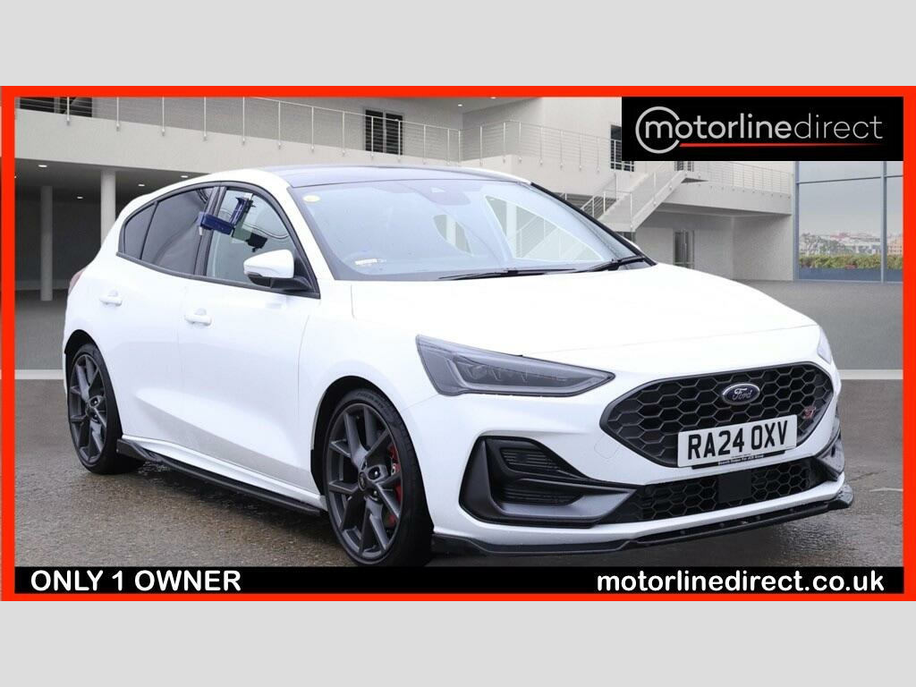 FINANCE & PART EXCHANGE AVAILABLE* - Only 1 registered keeper & 2,588 miles from new, 2 KEYS, PLEASE CALL FOR FULL SPECIFICATION - this HIGH SPECIFICATION FORD FOCUS ST AUTOMATIC WITH FULL ELECTRIC GLASS PANORAMIC SUNROOF is finished in stunning sports white & is complimented with contrasting 1/2 black sports leather trim and extends itself to the following additional features - Ford ST Sports styling, head up display, full electric tilt & sliding glass panoramic sunroof with electric sun blind, on board satellite navigation system, reverse camera, wireless phone charger, dual zone climate control / automatic air conditioning, trip computer, cruise control with speed limiter, heated leather trimmed multi function steering wheel, front & rear park distance control, driver & passenger heated front seats, drivers seat electrically adjustable, Bluetooth, DAB digital radio, media input, keyless entry & start, FordPass Connect, privacy glass, auto dimming rear view mirror, driver assistance pack, emergency brake assist, pre-collision assist with autonomous emergency braking & pedestrian cyclist detection, heated front screen, hill start assist, drive mode select, lane keeping aid with lane keeping assist, blind spot information, electric folding & heated exterior mirrors, auto high beam, auto headlights, rain sensor, power assisted steering, abs, airbags, electric windows, remote central locking, Ford brake callipers finished in sports red, Ford 19'' sports alloy wheels, Ford anti theft system. ***FINANCE AVAILABLE - subject to status. T&C's apply.***PART EXCHANGE AVAILABLE***ALL VEHICLES ARE HPI & NATIONAL MILEAGE REGISTER CHECKED***THE AA WARRANTY IS SUBJECT TO TERMS & CONDITIONS AND DOES NOT COVER VEHICLES THAT ARE BEING USED FOR TAXI, PRIVATE HIRE, CHAUFFEURING PURPOSES OR FOR REWARD.***Please note, that the specifications etc. are generic to that vehicle of the type advertised but may not be included in the specific vehicle that is for sale. It is for the intended purchaser to satisfy themselves of the presence or absence of any specifications before sale.. 19in Alloy Wheels - 5x2-Spoke - Magnetite Matte Finish, 6-Way Power Adjustment Driver Seat, ABS - Anti-lock Braking System, Acoustic Laminated Windscreen, Airbags - Driver and Front Passenger, Airbags - Front Side Impact, Airbags - Front and Rear Side Curtain, Automatic Dimming Rear View Mirror, Centre Console - Premium with Sliding Armrest - Cupholder with Sliding Cover - 12V Front Power Point, Child Proof Rear Door Locks, Courtesy Light - Ambient LED Courtesy Lighting, Cruise Control with Adjustable Speed Limiter, DEATC - Dual-Zone Electronic Automatic Temperature Control, Door Mirrors - Electrically-Operated - Heated - Power-Foldable - Puddle Lights - Side Indicators, Dynamic Matrix LED Headlights including Glare Free Lighting, EBA - Emergency Brake Assist, ESC - Electronic Stability Control, Electric Parking Brake, Ford Easy Fuel System, Ford Key Free System - Keyless Entry with Keyless Start, Ford SYNC4 Navigation with 13.2in Touchscreen, Front Passenger Airbag Deactivation Switch, Front Seatback Map Pockets - Driver and Passenger, Front and Rear Floor Mats with Double Stitching, Front and Rear Seatbelt Minder, Full Digital 12.3in Instrument Cluster, Gearshift Knob - E-shifter Rotary Bezel, Headlights - Automatic On-Off, Hill Start Assist, Intelligent Speed Assistance, Lane-Keeping Aid with Lane-Keeping Assist, Large Rear Spoiler - Body Colour with Centre High Mounted Stop Light, Load Compartment Area Cover, Load Floor Carpet, Load Through Ski Hatch, Locking Wheel Nuts, MyKey, Overhead Console - Medium Length with Front and Rear LED Courtesy Lights, Parking Sensor - Front and Rear, Power Steering, Pre-Collision Assist with Autonomous Emergency Braking and Pedestrian-Cyclist Detection, Quickclear Heated Windscreen, Rain Sensitive Windshield Wipers, Rear Centre Armrest with Cupholders, Rear Fog Lamps, Rear Lights - LED, Rear Privacy Glass, Rear Seat - 60-40 Split Folding Seats, Rear View Camera, Red Brake Calipers, Remote Central-Double Locking, ST Unique Exhaust - Dual, ST-Line Badge, ST-Line Scuff Plates, Seats - ISOFIX Mounting Provision for Child Seats, Seats - Passenger 6-Way Electric Adjustment, Selectable Drive Mode, Spare Wheel - Mini Steel, Steering Wheel - 3-Spoke Sensico Trimmed with Integrated Audio Controls, Tailgate Wash-Wipe, Thatcham Category Alarm with Power Door Deadlocks, Traction Control - TC, Trailer Sway Control, Trip Computer, Tyre Pressure Monitoring System, Unique ST Front and Rear Bumpers with Crystalline Grey Bumper Extension, Unique ST Sport Suspension with Limited Slip Differential, Unique ST Upper and Lower Grille with Full Bodystyling Kit, Windows - Electrically Operated Front and Rear with One Touch Opening and Closing, Winter Pack, Wireless Charging, Auto High Beam, Door Mirrors - Body Colour, Electric Windows - Front, Ford Easy Fuel - Capless Refuelling System, FordPass Connect, Front Upper Grille - Crystalline Grey Mesh and Surround - ST Badge, Heated Front Seats and Heated Steering Wheel, Rear Suspension - Multi-Link, Seat Belt Reminder - Driver-Passenger-Rear Seats with Passenger Seat Occupant Detection, ST-Line Side Badge, Standard Duty Rear Shock Absorbers, Steering Wheel - Sensico-Wrapped ST Style, Panoramic Roof - Openable, Ford Performance Pack, Driver Assistance Pack, Blind Spot Information System, Head-Up Display, Partial Sensico - Ebony with Red Stitching.