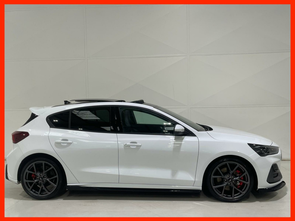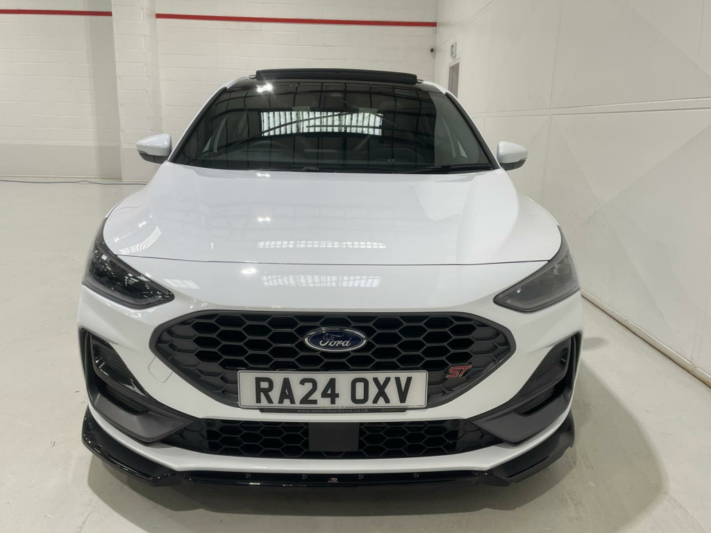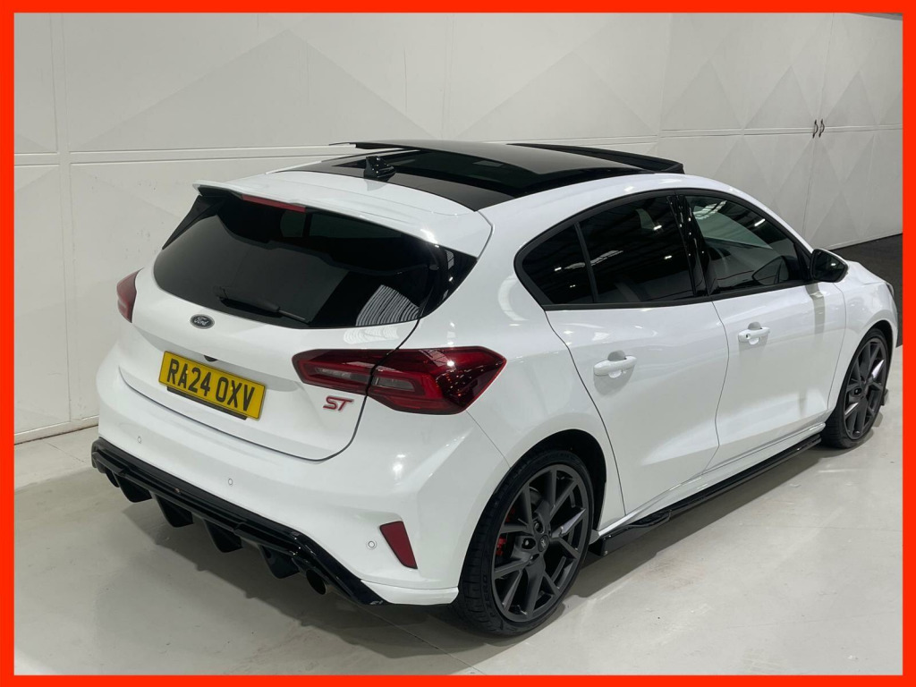FINANCE & PART EXCHANGE AVAILABLE* - Only 1 registered keeper & 2,589 miles from new, 2 KEYS - this STUNNING VERY LOW MILEAGE HIGH SPECIFICATION FORD FOCUS ST AUTOMATIC WITH FULL ELECTRIC GLASS PANORAMIC SUNROOF & MAXTON STYLING KIT is finished in stunning sports Frozen white & is complimented with contrasting full black leather & alcantara Ford Performance seats and extends itself to the following additional features - Ford ST Sports styling, Maxton design sports styling to include rear bumper diffuser, side skirts, front splitter, head up display, full electric tilt & sliding glass panoramic sunroof with electric sun blind, on board satellite navigation system, reverse camera, virtual cockpit, wireless phone charger, dual zone climate control / automatic air conditioning, adaptive cruise control with speed limiter, heated leather trimmed multi function steering wheel, park distance control, electric heated front seats, Bluetooth, DAB, Bang & Olufsen sound system, Apple CarPlay / Android Auto, voice command, keyless entry & start, Ford assistant, privacy glass, emergency assistance, pre-collision assist, heated screen, drive mode select, lane keeping system, blind spot monitor, electric tailgate, electric folding mirrors, traffic sign recognition, cross traffic & wrong way alert, adaptive LED headlights, power steering, abs, airbags, electric windows, remote locking, Ford brake callipers finished in superb sports red, Ford 19'' alloy wheels finished in sports grey, Ford anti theft system. ***FINANCE AVAILABLE - subject to status. T&C's apply.***PART EXCHANGE AVAILABLE***ALL VEHICLES ARE HPI & NATIONAL MILEAGE REGISTER CHECKED***THE AA WARRANTY IS SUBJECT TO TERMS & CONDITIONS AND DOES NOT COVER VEHICLES THAT ARE BEING USED FOR TAXI, PRIVATE HIRE, CHAUFFEURING PURPOSES OR FOR REWARD.***Please note, that the specifications etc. are generic to that vehicle of the type advertised but may not be included in the specific vehicle that is for sale. It is for the intended purchaser to satisfy themselves of the presence or absence of any specifications before sale.. 19in Alloy Wheels - 5x2-Spoke - Magnetite Matte Finish, 6-Way Power Adjustment Driver Seat, ABS - Anti-lock Braking System, Acoustic Laminated Windscreen, Airbags - Driver and Front Passenger, Airbags - Front Side Impact, Airbags - Front and Rear Side Curtain, Automatic Dimming Rear View Mirror, Centre Console - Premium with Sliding Armrest - Cupholder with Sliding Cover - 12V Front Power Point, Child Proof Rear Door Locks, Courtesy Light - Ambient LED Courtesy Lighting, Cruise Control with Adjustable Speed Limiter, DEATC - Dual-Zone Electronic Automatic Temperature Control, Door Mirrors - Electrically-Operated - Heated - Power-Foldable - Puddle Lights - Side Indicators, Dynamic Matrix LED Headlights including Glare Free Lighting, EBA - Emergency Brake Assist, ESC - Electronic Stability Control, Electric Parking Brake, Ford Easy Fuel System, Ford Key Free System - Keyless Entry with Keyless Start, Ford SYNC4 Navigation with 13.2in Touchscreen, Front Passenger Airbag Deactivation Switch, Front Seatback Map Pockets - Driver and Passenger, Front and Rear Floor Mats with Double Stitching, Front and Rear Seatbelt Minder, Full Digital 12.3in Instrument Cluster, Gearshift Knob - E-shifter Rotary Bezel, Headlights - Automatic On-Off, Hill Start Assist, Intelligent Speed Assistance, Lane-Keeping Aid with Lane-Keeping Assist, Large Rear Spoiler - Body Colour with Centre High Mounted Stop Light, Load Compartment Area Cover, Load Floor Carpet, Load Through Ski Hatch, Locking Wheel Nuts, MyKey, Overhead Console - Medium Length with Front and Rear LED Courtesy Lights, Parking Sensor - Front and Rear, Power Steering, Pre-Collision Assist with Autonomous Emergency Braking and Pedestrian-Cyclist Detection, Quickclear Heated Windscreen, Rain Sensitive Windshield Wipers, Rear Centre Armrest with Cupholders, Rear Fog Lamps, Rear Lights - LED, Rear Privacy Glass, Rear Seat - 60-40 Split Folding Seats, Rear View Camera, Red Brake Calipers, Remote Central-Double Locking, ST Unique Exhaust - Dual, ST-Line Badge, ST-Line Scuff Plates, Seats - ISOFIX Mounting Provision for Child Seats, Seats - Passenger 6-Way Electric Adjustment, Selectable Drive Mode, Spare Wheel - Mini Steel, Steering Wheel - 3-Spoke Sensico Trimmed with Integrated Audio Controls, Tailgate Wash-Wipe, Thatcham Category Alarm with Power Door Deadlocks, Traction Control - TC, Trailer Sway Control, Trip Computer, Tyre Pressure Monitoring System, Unique ST Front and Rear Bumpers with Crystalline Grey Bumper Extension, Unique ST Sport Suspension with Limited Slip Differential, Unique ST Upper and Lower Grille with Full Bodystyling Kit, Windows - Electrically Operated Front and Rear with One Touch Opening and Closing, Winter Pack, Wireless Charging, Auto High Beam, Door Mirrors - Body Colour, Electric Windows - Front, Ford Easy Fuel - Capless Refuelling System, FordPass Connect, Front Upper Grille - Crystalline Grey Mesh and Surround - ST Badge, Heated Front Seats and Heated Steering Wheel, Rear Suspension - Multi-Link, Seat Belt Reminder - Driver-Passenger-Rear Seats with Passenger Seat Occupant Detection, ST-Line Side Badge, Standard Duty Rear Shock Absorbers, Steering Wheel - Sensico-Wrapped ST Style, Panoramic Roof - Openable, Ford Performance Pack, Driver Assistance Pack, Blind Spot Information System, Head-Up Display, Partial Sensico - Ebony with Red Stitching.