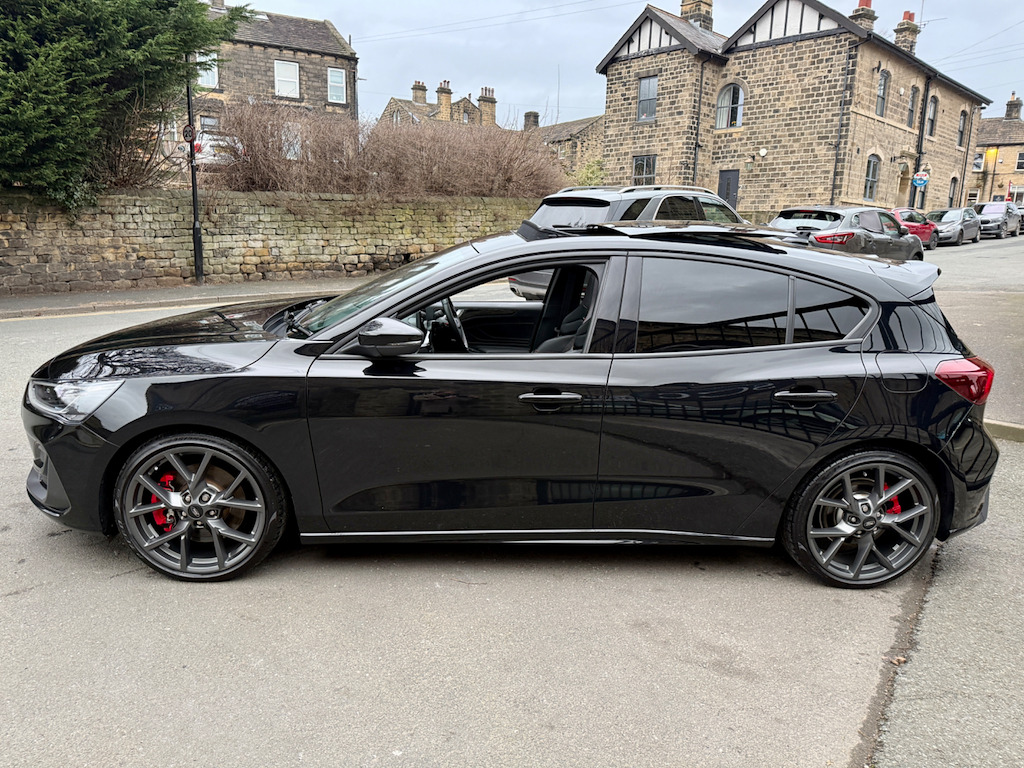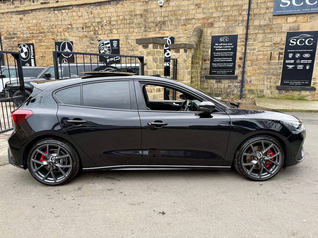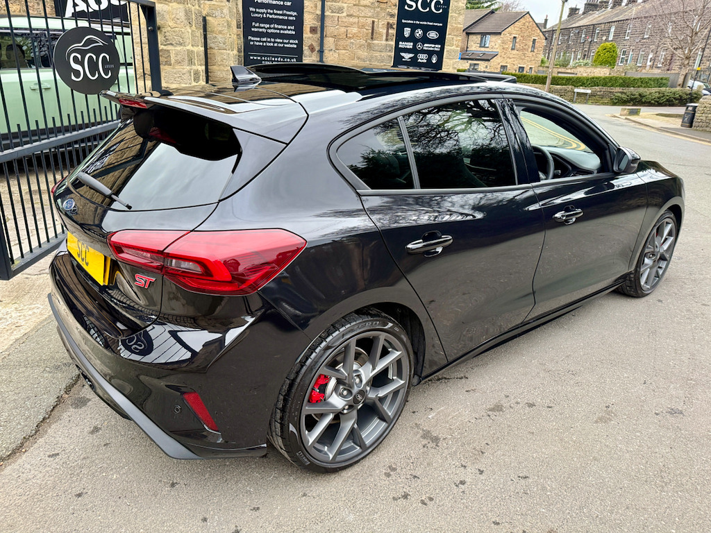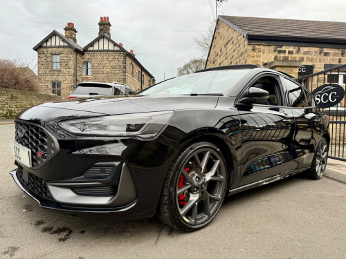 In a crowded hot-hatch market, this exceptional 2023 (73) Ford Focus ST stands out for all the right reasons. Finished in gleaming Agate Black, this rare example combines serious performance credentials with an outstanding level of factory options — making it a true standout choice for drivers who want more than the standard offering. Equipped with the coveted ST Performance Pack, the car delivers sharper dynamics, enhanced drive modes and a more focused, exhilarating driving experience. Even more desirable is the rare automatic transmission, offering lightning-fast shifts and effortless usability whether tackling fast A-roads or navigating daily traffic. This example is all about the extras. The panoramic roof — a rare option — floods the cabin with natural light, while heated seats and a heated steering wheel ensure year-round comfort. The Head-Up Display projects key driving information directly into your line of sight, enhancing both safety and driver engagement. With 2 owners from new and supplied with two keys, this Focus ST represents a rare opportunity to own a highly specified, performance-focused hot hatch that blends practicality, technology and everyday comfort with genuine driving thrills. Contact us today on 01943 884551 to arrange your viewing or test drive. 19in Alloy Wheels - 5x2-Spoke - Magnetite Matte Finish,6-Way Power Adjustment Driver Seat,ABS - Anti-lock Braking System,Acoustic Laminated Windscreen,Airbags - Driver and Front Passenger,Airbags - Front Side Impact,Airbags - Front and Rear Side Curtain,Auto High Beam,Automatic Dimming Rear View Mirror,Centre Console - Premium with Sliding Armrest - Cupholder with Sliding Cover - 12V Front Power Point,Child Proof Rear Door Locks,Courtesy Light - Ambient LED Courtesy Lighting,Cruise Control with Adjustable Speed Limiter,DEATC - Dual-Zone Electronic Automatic Temperature Control,Door Mirrors - Body Colour,Door Mirrors - Electrically-Operated - Heated - Power-Foldable - Puddle Lights - Side Indicators,Dynamic Matrix LED Headlights including Glare Free Lighting,EBA - Emergency Brake Assist,ESC - Electronic Stability Control,Ford Easy Fuel - Capless Refuelling System,Ford Key Free System - Keyless Entry with Keyless Start,Ford SYNC4 Navigation with 13.2in Touchscreen,FordPass Connect,Front Passenger Airbag Deactivation Switch,Front Seatback Map Pockets - Driver and Passenger,Front Upper Grille - Crystalline Grey Mesh and Surround - ST Badge,Front and Rear Floor Mats with Double Stitching,Full Digital 12.3in Instrument Cluster,Gearshift Knob - E-shifter Rotary Bezel,Headlights - Automatic On-Off,Hill Start Assist,Intelligent Speed Assistance,Lane-Keeping Aid with Lane-Keeping Assist,Load Compartment Area Cover,Load Floor Carpet,Load Through Ski Hatch,Locking Wheel Nuts,MyKey,Overhead Console - Medium Length with Front and Rear LED Courtesy Lights,Parking Sensor - Front and Rear,Power Steering,Pre-Collision Assist with Autonomous Emergency Braking and Pedestrian-Cyclist Detection,Quickclear Heated Windscreen,Rain Sensitive Windshield Wipers,Rear Centre Armrest with Cupholders,Rear Fog Lamps,Rear Lights - LED,Rear Privacy Glass,Rear Seat - 60-40 Split Folding Seats,Rear Suspension - Multi-Link,Rear View Camera,Red Brake Calipers,Remote Central-Double Locking,ST Unique Exhaust - Dual,ST-Line Side Badge,Seat Belt Reminder - Driver-Passenger-Rear Seats with Passenger Seat Occupant Detection,Seats - ISOFIX Mounting Provision for Child Seats,Seats - Passenger 6-Way Electric Adjustment,Selectable Drive Mode,Spare Wheel - Mini Steel,Standard Duty Rear Shock Absorbers,Steering Wheel - Sensico-Wrapped ST Style,Tailgate Wash-Wipe,Thatcham Category Alarm with Power Door Deadlocks,Traction Control - TC,Trailer Sway Control,Trip Computer,Tyre Pressure Monitoring System,Unique ST Front and Rear Bumpers with Crystalline Grey Bumper Extension,Unique ST Sport Suspension with Limited Slip Differential,Unique ST Upper and Lower Grille with Full Bodystyling Kit,Windows - Electrically Operated Front and Rear with One Touch Opening and Closing,Winter Pack,Wireless Charging,eCall,Agate Black,Ford Performance Pack,Head-Up Display,Panoramic Roof - Openable,Partial Sensico - Ebony with Red Stitching
