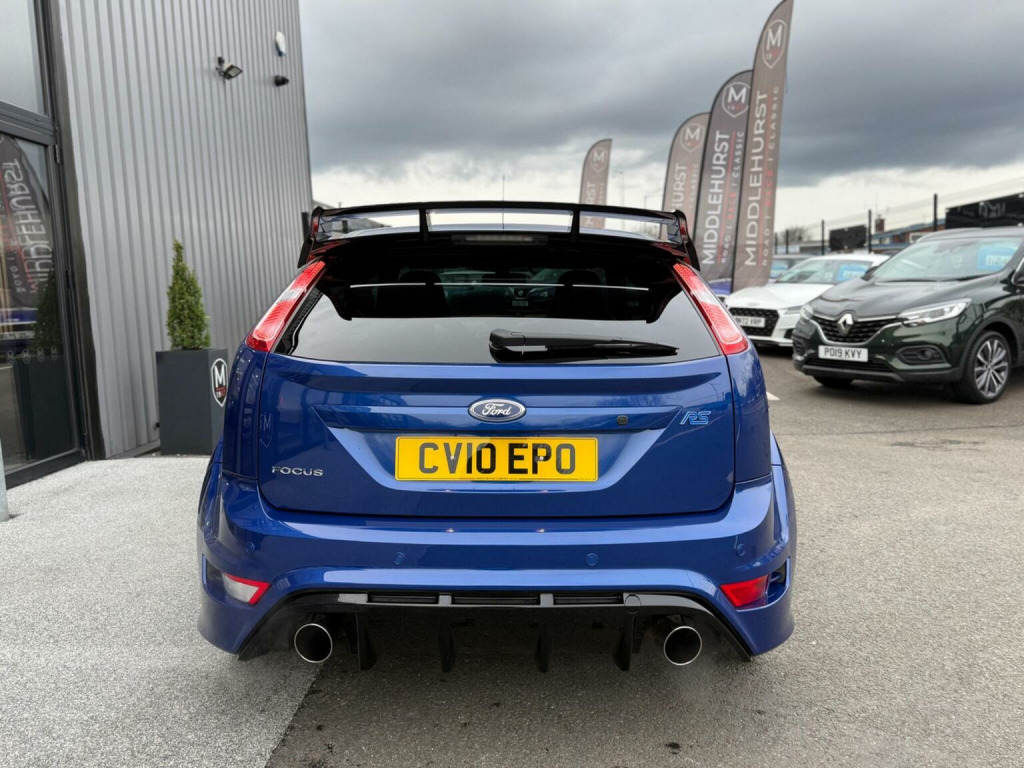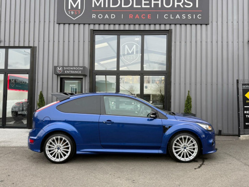 Middlehurst Road Race & Classic present this 2010/10 plate Ford Focus RS (Lux Pack 1) finished in Performance Blue with blue cloth/grey alcantara Recaro seats. We are delighted to offer this extremely low mileage, completely unmodified, collectors grade example. The underside of this car is incredible, its genuinely like new underneath. Even the coil springs, rear subframe etc, are like new. There is virtually not a spec of rust (even surface rust), anywhere on the underside!, It was first registered 01/03/2010 and has only covered a mere 10,850 miles from new by its 3 registered keepers, making this a very low mileage, low ownership example, with fabulous investment potential. The original Ford book pack is present, along with the owners handbooks, original Ford service book, all of the old MOT certificates, old tax discs, service invoices and 3x keys. The service history is as follows:, 21/02/2011 - Davies Ford (Cardigan) - 4,526 miles, 11/04/2012 - FD - 8,006 miles , 06/02/2023 - Tarnock Garage Ford (Somerset) - 9,966 miles, 25/07/2024 - Jag and Land Surrey Ltd - 10,466 miles , 14/10/2025 - Tarnock Garage Ford (Somerset) - 10,729 miles, The vehicle has been dry stored its entire life and despite the gap in the service record, it was MOTd every single year regardless, with virtually no miles covered in between... With such a low mileage car, its sometimes a case of how often do you service it when it literally isnt doing any miles in between each service... Between 2013 (when it had its first MOT at 8,733 miles) and currently in 2026 (10,867 miles), it has covered just 2,094 miles! , The vehicles MOT record is nothing short of exemplary and is as follows:, 26/02/2013 - 8,774 miles, 25/02/2014 - 9,062 miles, 25/02/2015 - 9,406 miles, 24/02/2016 - 9,673 miles, 13/02/2017 - 9,785 miles, 21/02/2018 - 9,832 miles, 27/02/2019 - 9,905 miles , 24/02/2020 - 9,925 miles, 03/02/2023 - 9,966 miles, 25/07/2024 - 10,466 miles, 14/10/2025 - 10,729 miles , Next service & MOT due October 2026. Supplied with 3 months warranty. Got a low mileage, Mk2 RS for sale? - Contact us today