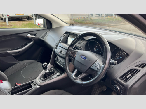 Ford Focus 1.0 EcoBoost 125 Zetec Edition 5dr Cruise control + speed limiter, Digital clock, Easy fuel capless refuelling system, Eco mode, Electric boot release, PAS, Rear parking sensor, SYNC 3 nav system with DAB radio/CD, 8" colour touch screen, bluetooth, emergency assistance, advanced voice control and 6 speakers, TFT cluster screen, Trip computer, Aux input, Steering column with mounted audio controls, USB connection, 'Quickclear' heated windscreen/heated washer jets, Body colour bumpers, Body colour door handles, Body colour door mirrors, Chrome finish on upper door line, Chrome radiator grille and surround, Electric adjustable heated door mirrors, Front fog lights, Front variable intermittent wipers with electric wash, Heated rear window, Rear privacy glass, Silver roof rails, Tailgate wash/wipe, 3 spoke leather steering wheel, 60/40 split back and cushion rear seats with 2 height adjustable headrests, Air conditioning - CFC-free, Centre console storage box/armrest, Cloth upholstery, Driver's seat manual height adjust, Driver's seat with adjustable lumbar support, Front floor mats, Height adjustable front headrests, Isofix child seat preparation, Reach + rake adjustable steering column, Sports style front seats, Tonneau cover, ABS+Electronic Brake force Distribution, Driver airbag, ESP with traction control + emergency brake assist, Front inertia reel height adjustable seatbelts with pre-tensioners, Front passenger airbag, Front side airbags, Hill start assist, Side curtain airbags, Three rear inertia reel lap/diagonal seatbelts, Torque vectoring brake, Tyre pressure monitoring system, Immobiliser-Passive Anti-Theft System (PATS), MyKey system, Remote central double locking, Thatcham Cat.1 alarm, Mini steel spare wheel