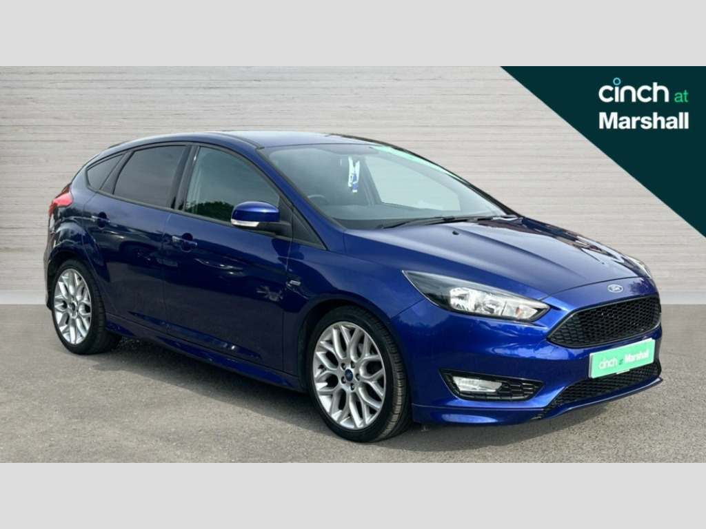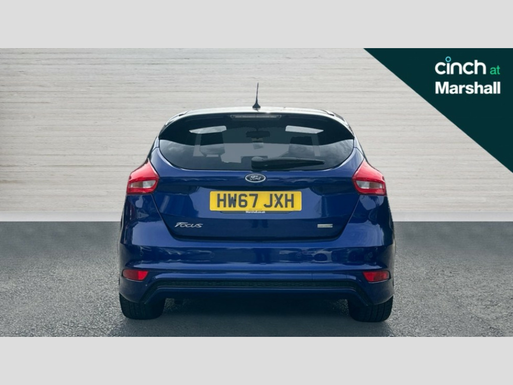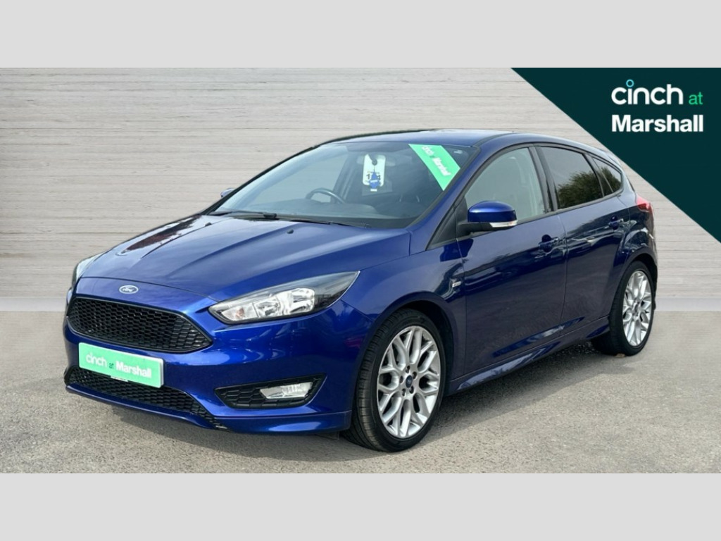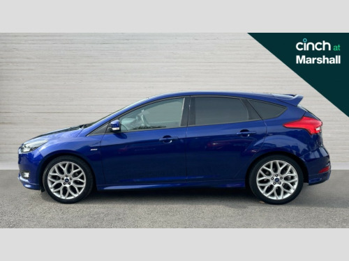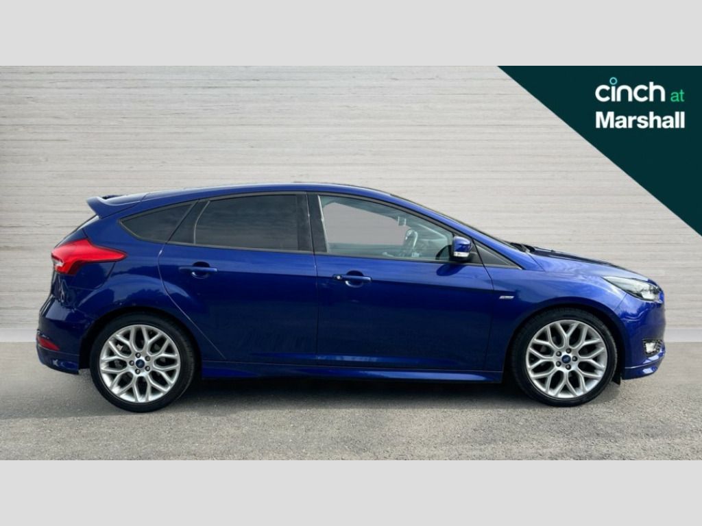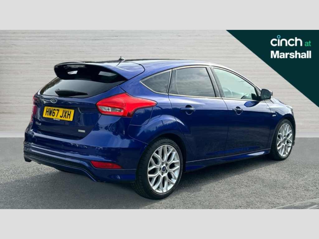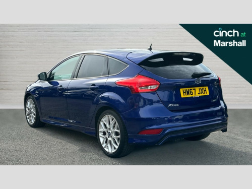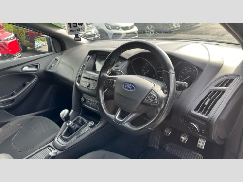 Ford Focus 1.0 EcoBoost 140 ST-Line Navigation 5dr Digital clock, Easy fuel capless refuelling system, Eco mode, Electric boot release, PAS, SYNC 3 nav system with DAB radio/CD, 8" colour touch screen, bluetooth, emergency assistance, advanced voice control and 6 speakers, TFT cluster screen, Trip computer, Sports suspension, Aux input, Steering column with mounted audio controls, USB connection, 'Quickclear' heated windscreen/heated washer jets, Black honeycomb front grille, Body colour bumpers, Body colour door handles, Body colour door mirrors, Body colour rear spoiler, Body colour side skirt, Body styling kit, Chrome finish on upper door line, Electric adjustable heated door mirrors, Front fog lights, Front variable intermittent wipers with electric wash, Heated rear window, LED daytime running lights, Rear LED lights, Tailgate wash/wipe, 3 spoke sports leather steering wheel, 60/40 split back and cushion rear seats with 2 height adjustable headrests, Air conditioning - CFC-free, Black headlining, Centre console with sliding front armrest, Cloth upholstery, Driver's seat manual height adjust, Driver's seat with adjustable lumbar support, Front floor mats, Height adjustable front headrests, Isofix child seat preparation, Reach + rake adjustable steering column, Sport leather gear knob, Sports pedals, Sports style front seats, Stainless Steel Scuff Plates, ABS+Electronic Brake force Distribution, Driver airbag, ESP with traction control + emergency brake assist, Front inertia reel height adjustable seatbelts with pre-tensioners, Front passenger airbag, Front side airbags, Hill start assist, Side curtain airbags, Three rear inertia reel lap/diagonal seatbelts, Torque vectoring brake, Tyre pressure monitoring system, Immobiliser-Passive Anti-Theft System (PATS), Keyless Start, MyKey system, Remote central double locking, Thatcham Cat.1 alarm, Contrast stitching - Red, Mini steel spare wheel