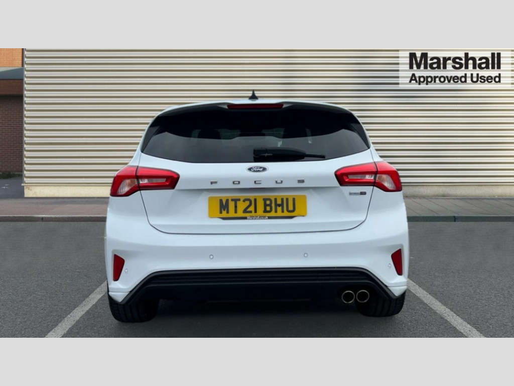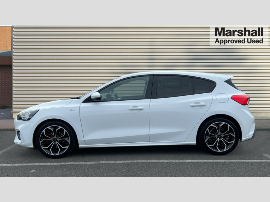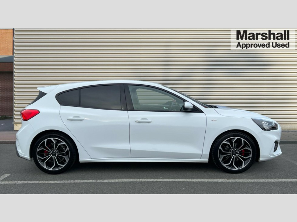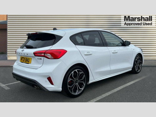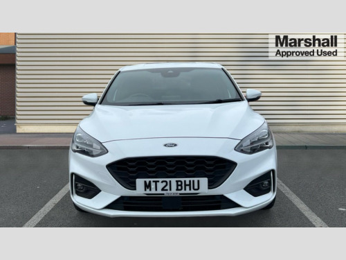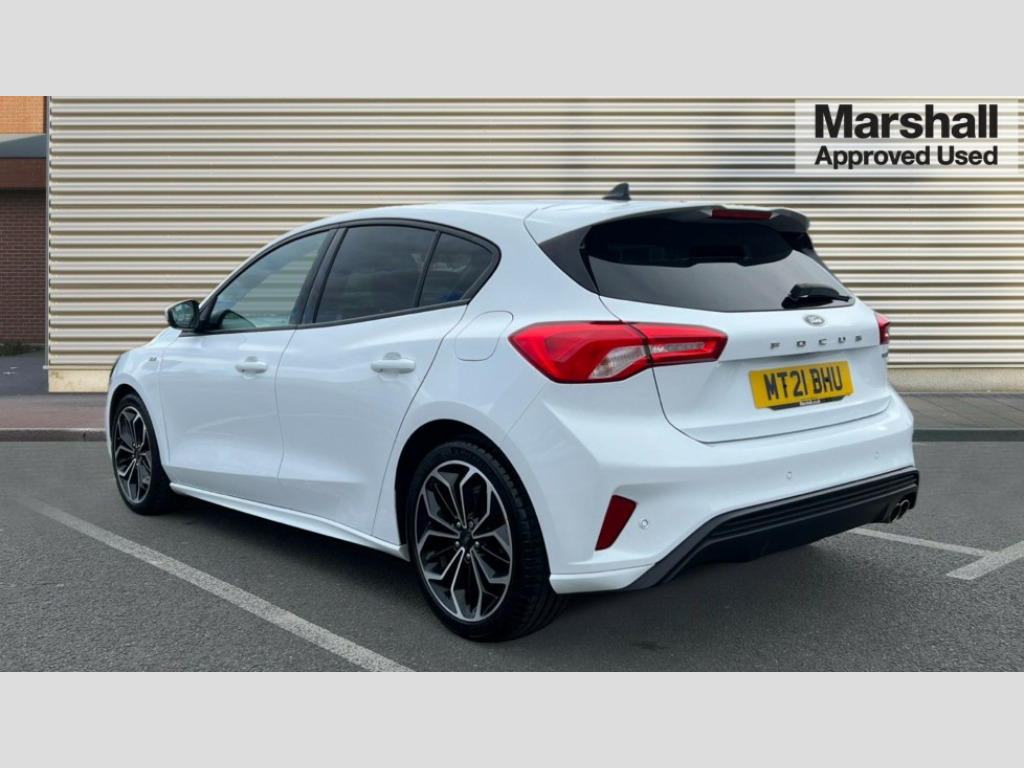 Ford Focus 1.0 EcoBoost Hybrid mHEV 125 ST-Line X Edition 5dr 12.3" Digital instrument cluster, Bluetooth system, Digital clock, Easy fuel capless refuelling system, Eco mode, Ford SYNC 3 navigation with 8" TFT touchscreen, DAB radio and app link Android auto/Apple carplay, Intelligent speed assist, Lane keeping system - lane keeping alert and lane keeping aid, PAS, Selectable drive mode, Trip computer, Sports tuned suspension, 2 USB ports, Aux input, Auto dimming rear view mirror, Auto headlamps (on/off), Automatic rain sensing wipers, Body colour large rear spoiler, Body coloured bumpers, Body coloured door handles, Body coloured electrically operated and heated door mirrors with side indicators, Electrically operated front and rear windows with one touch opening and closing, Front variable intermittent wipers with electric wash, Heated rear window, LED daytime running lamp, Polished twin tailpipe, Power folding door mirrors with puddle lights, Quickclear heated windscreen, Rear privacy glass, ST-Line upper and lower grille with full body styling kit and wing badges, Tailgate wash/wipe, Unique door and instrument panel inserts, 3 spoke flat bottomed Sensico steering wheel with red stitching, 6 way power adjustable driver seat, Aluminium gear knob, Dark headliner, Driver's lumbar support, Dual zone electronic air temperature control, Front and rear floor mats with red stitching, Heated driver and front passenger seats, Heating for Sensico steering wheel, Height adjustable front headrests, Isofix child seat preparation, Reach + rake adjustable steering column, Rear centre headrest, Sensico partial premium upholstery, Soft console knee pads with red stitching, 3x3 point rear seatbelts, ABS+Electronic Brake force Distribution, Auto hold function, Driver airbag, Electronic parking brake, Electronic stability control, Front and rear seatbelt reminder, Front inertia reel height adjustable seatbelts with pre-tensioners, Front passenger airbag, Front side airbags, Hill start assist, Passenger airbag deactivate switch, Post collision braking, Power child locks on rear doors, Pre collision assist with autonomous emergency braking and pedestrian/cyclist detection, Side curtain airbags, Three rear inertia reel lap/diagonal seatbelts, Tyre pressure monitoring system, Ford keyfree system with Keyless entry and keyless start/sleep mode key fob, MyKey system, Remote central locking & engine immobiliser, Thatcham category 1 alarm, 18" 5x2 spoke gloss black machined finish alloy wheels, Mini steel spare wheel