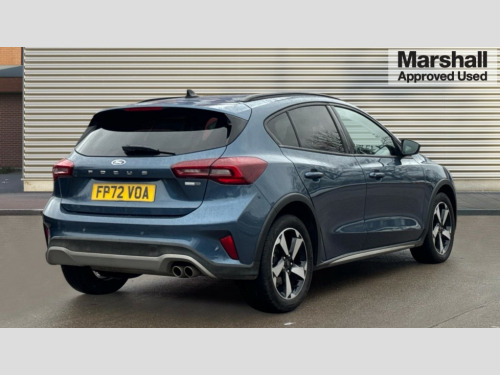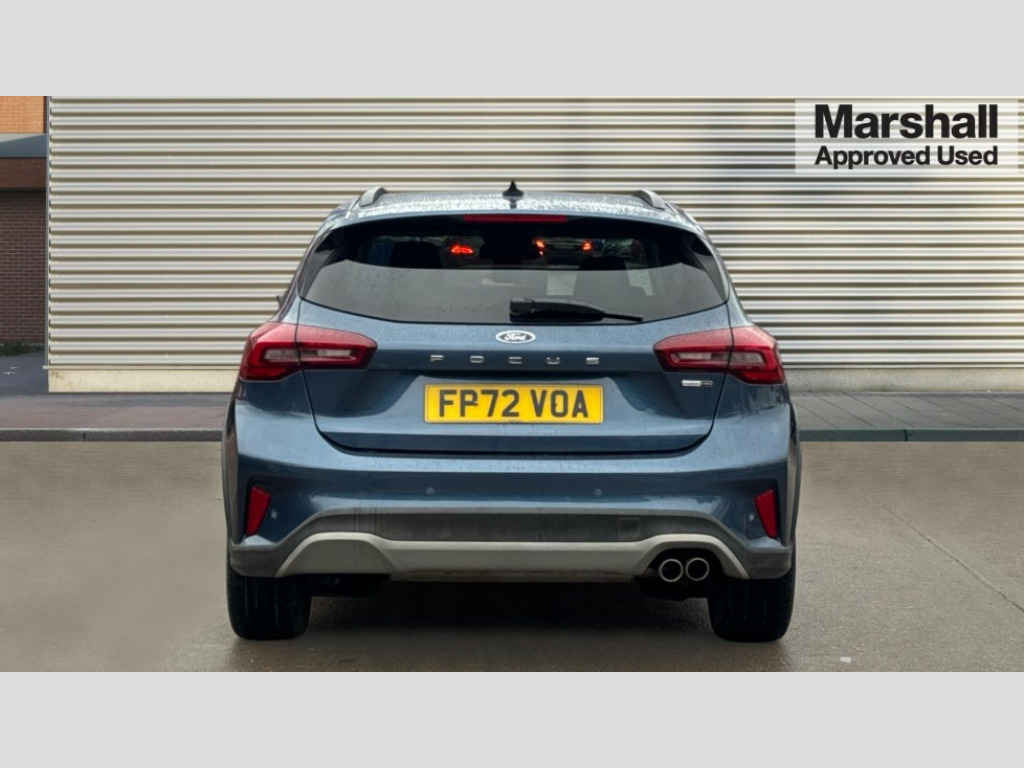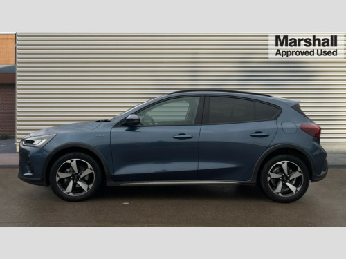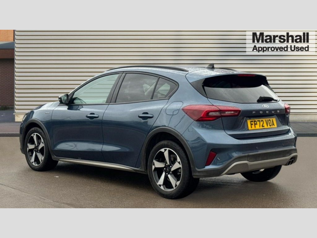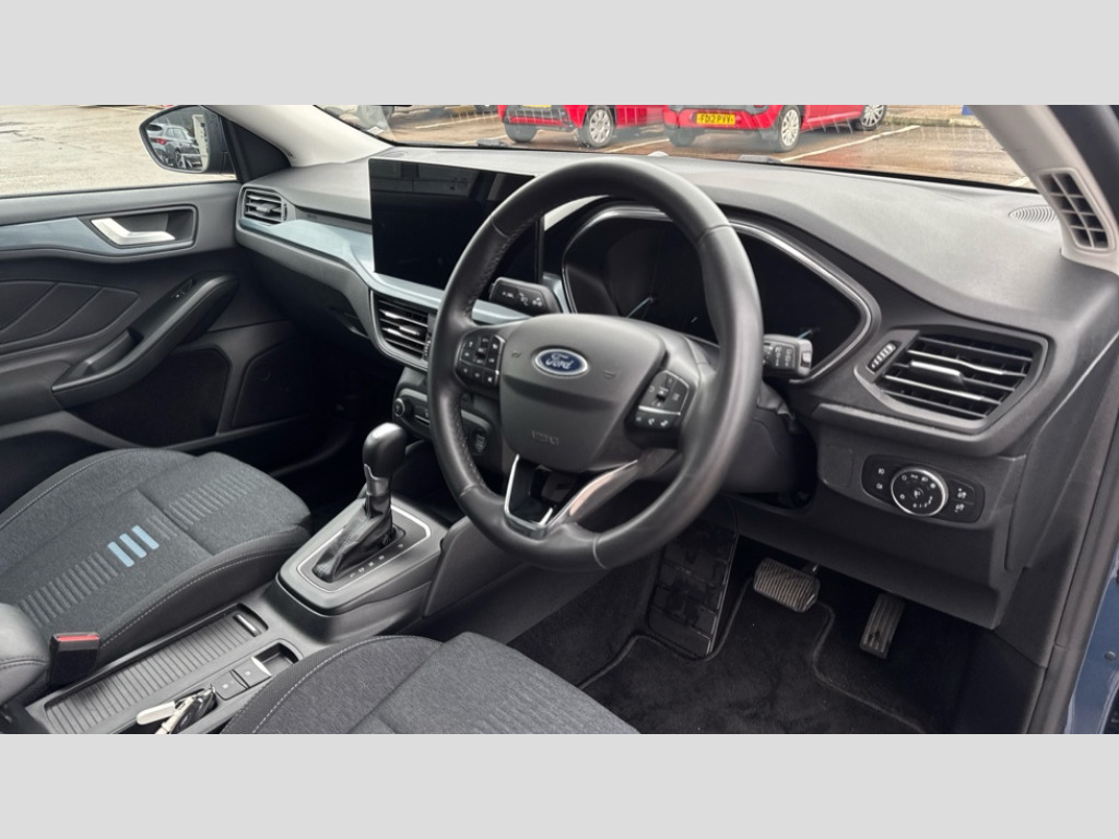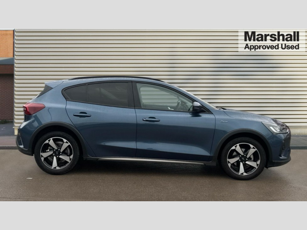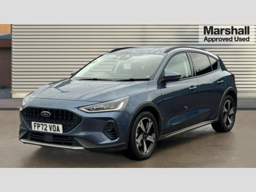 Ford Focus 1.0 EcoBoost Hybrid mHEV 155 Active 5dr Auto 4.2" Colour TFT Ice blue illumination analogue cluster with trip computer, Bluetooth system, Digital clock, Easy fuel capless refuelling system, Eco mode, Ford SYNC 4 Navigation with 13.2'' touchscreen, DAB radio, Emergency Assistance, Apple Carplay & Android Auto, 6 speakers & FordPass Connect, Lane keeping system - lane keeping alert and lane keeping aid, PAS, Rev counter, Selectable drive mode, Service interval indicator, Rough road suspension with increased ride height, 2 USB ports, Auto headlamps (on/off), Body coloured door handles, Electrically operated front and rear windows with one touch opening and closing, Electrically operated heated power fold door mirrors with puddle lamp with side indicators, Front variable intermittent wipers with electric wash, Full fixed LED headlamps, Heated rear window, LED daytime running lamp, LED rear lamps, LED third brake light, Polished twin tailpipe, Privacy glass, Quickclear heated windscreen, Rain sensor, Rear side wing doors, Rugged body styling kit with active front wing badges, Tailgate wash/wipe, 3 rear headrests, 3 seat bench in 2nd row, Cloth upholstery, Dual zone electronic air temperature control, Height adjustable front headrests, Isofix child seat preparation, Manual 2-way passenger seat adjust, Manual 4-way driver seat adjust, with manual lumbar adjust, Reach + rake adjustable steering column, Single front passenger seat, 3x3 point rear seatbelts, ABS+Electronic Brake force Distribution, Auto hold function, Driver airbag, EDL traction control, Electronic parking brake, Electronic stability control, Front and rear seatbelt reminder, Front inertia reel height adjustable seatbelts with pre-tensioners, Front passenger airbag, Front side airbags, Passenger airbag deactivate switch, Post collision braking, Pre collision assist with autonomous emergency braking and pedestrian/cyclist detection, Remote/power child rear door locks, Side curtain airbags, Three rear inertia reel lap/diagonal seatbelts, Tyre pressure monitoring system, Keyless entry and keyless start, MyKey system, Remote central locking & engine immobiliser, Thatcham alarm with power door dead locks, 17" 5 spoke foundry black and machined finish alloy wheels with mini spare wheel