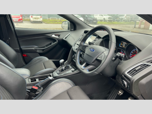 Ford Focus RS 2.3 EcoBoost 5dr 'Ford Power' starter button, Damper control, Drive mode selector, Easy fuel capless refuelling system, PAS, Rear view camera, SYNC 3 Navigation system with DAB radio/CD, 8" colour touch screen, emergency assistance, Bluetooth connection, advanced voice control, Launch control, Sony audio system with 10 Speakers + subwoofer, 'Quickclear' heated windscreen/heated washer jets, Adaptive front lighting system, Auto dimming rear view mirror, Automatic headlights, Automatic rain sensing wipers, Bi-Xenon headlights and headlight washers, Body colour bumpers, Body colour door mirrors, Body colour rear spoiler, Electric adjustable heated door mirrors, Electric front and rear windows + one touch + global open/closing, Rear wiper, Twin exhaust tailpipe, 12V power point front/rear, 60/40 split folding rear seat, Alloy pedals, Boot lamp, Dual zone electronic climate control, Flat bottom sports leather steering wheel, Front and rear reading lights, Front armrest, Front/rear floor mats, Height adjustable drivers seat, Height adjustable passenger seat, Integrated front head restraints, Isofix child seat preparation, LED ambient lighting, Part leather upholstery, Reach + rake adjustable steering column, ABS+Electronic Brake force Distribution, Driver airbag, ESP with traction control + emergency brake assist, Hill start assist, Passenger airbag + deactivate switch, Torque vectoring brake, Tyre pressure monitoring system, Immobiliser, MyKey system, Remote central double locking, Thatcham Cat.1 alarm, Tyre repair kit