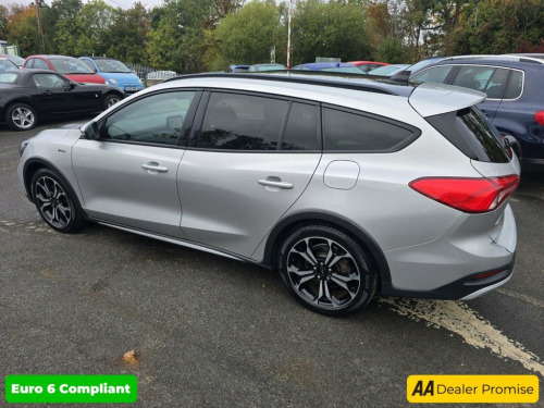 This 2019 Ford Focus T Active X presents an excellent opportunity with its MOT valid until October 2026, offering peace of mind for the coming years. This Euro 6 compliant model features a 1.0L petrol engine and is presented in the Active X trim. Inside, you'll find a wealth of desirable features designed for comfort and convenience, including a B&O PLAY Premium Audio System for an enhanced listening experience, front and rear parking sensors with parking assistance, and heated front seats for those colder journeys. The cabin is further complemented by a DEATC dual-zone electronic automatic temperature control system and an openable panoramic roof, allowing you to enjoy the open air. The Ford Focus T Active X stands out with its impressive fuel economy, achieving a highlight of 48 mpg, which indicates it is more economical than many similar vehicles. Its low CO2 emissions also contribute to its appeal, suggesting a more environmentally conscious choice. Furthermore, this model boasts a large boot space, providing ample room for luggage, shopping, or sports equipment, making it a practical and versatile option for everyday use and longer trips. 18in Alloy Wheels - 5x2 Spoke - Absolute, 2nd Load Floor, ABS - Anti-lock Braking System, Acoustic Laminated Windscreen, Active Badge, Active Front and Rear Bumper with Unique, Airbags - Driver and Front Passenger, Airbags - Front and Rear Side Curtain, Airbags - Front Side Impact, Alarm - Thatcham Category 1 with Volume , Automatic Dimming Rear View Mirror, B&O PLAY Premium Audio System, Black Finish on Upper Door Line, Centre Console - Premium with Sliding Ar, Child Proof Rear Door Locks, Cruise Control with Speed Limiter, DEATC - Dual-Zone Electronic Automatic T, Door Handles - Body Colour, Door Mirrors - Electrically-operated - H, Easy Stow Tonneau Cover, Electric Parking Brake, ESC