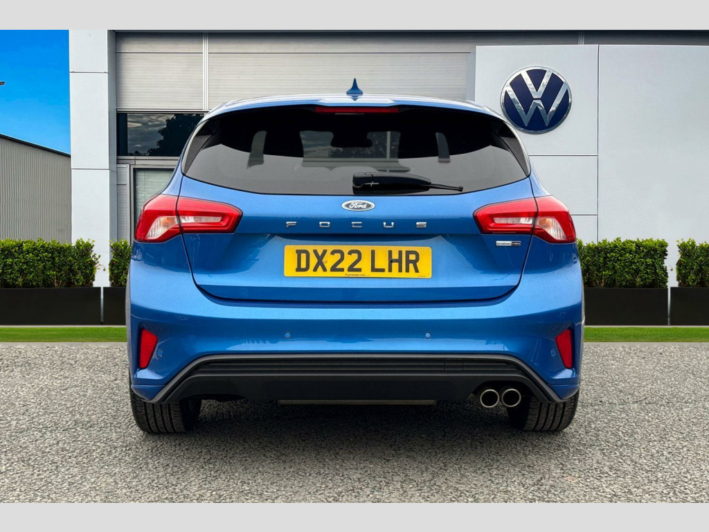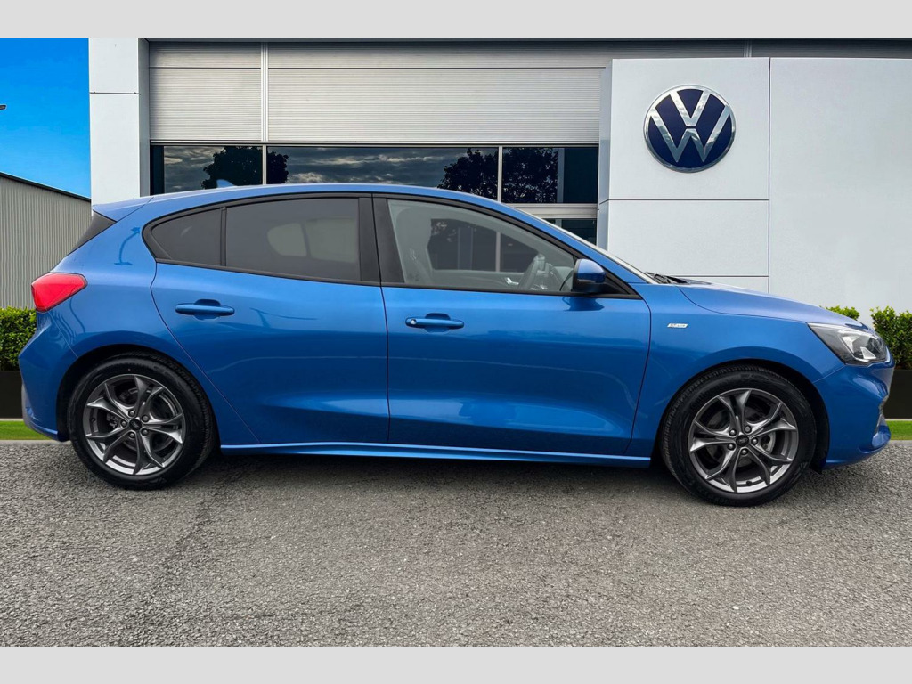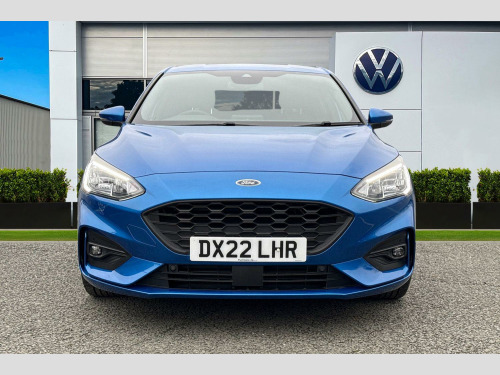 Now available at Wrexham Volkswagen is this Ford Focus ST-Line. Powering this Focus is a 1.0L petrol engine that produces 123 BHP with manual transmission. The exterior is finished in a blue paintwork, which is complimented by the 17in alloy wheels to the side. This Focus comes with a range of features on offer such as the LED headlights that provide exceptional visibility, rear tinted windows for passenger privacy, keyless entry and starting for quick accessibility, and front and rear parking sensors that assist with maneuvering.