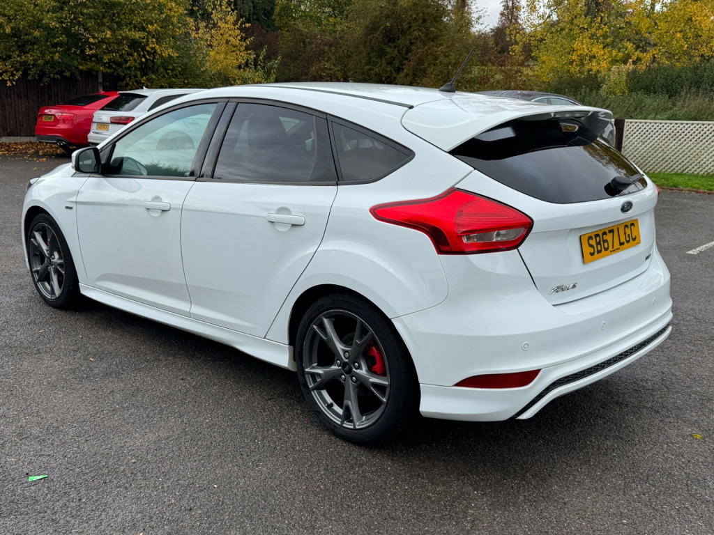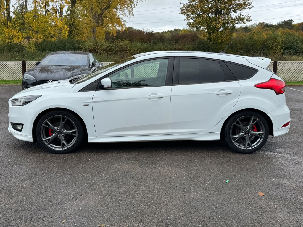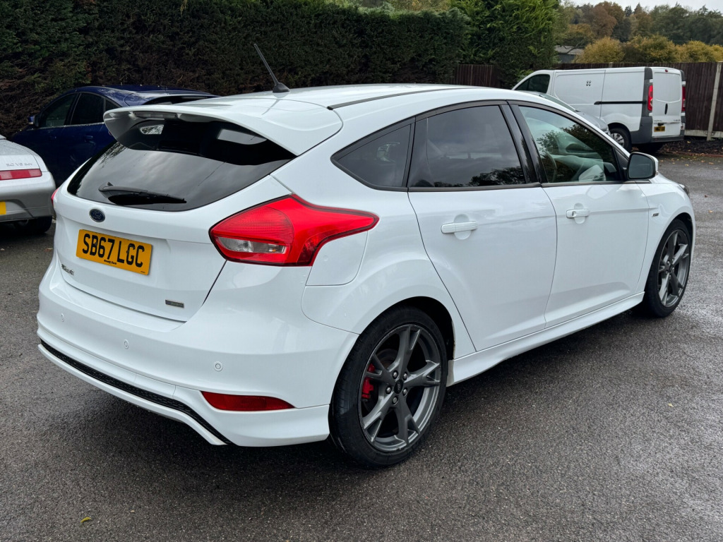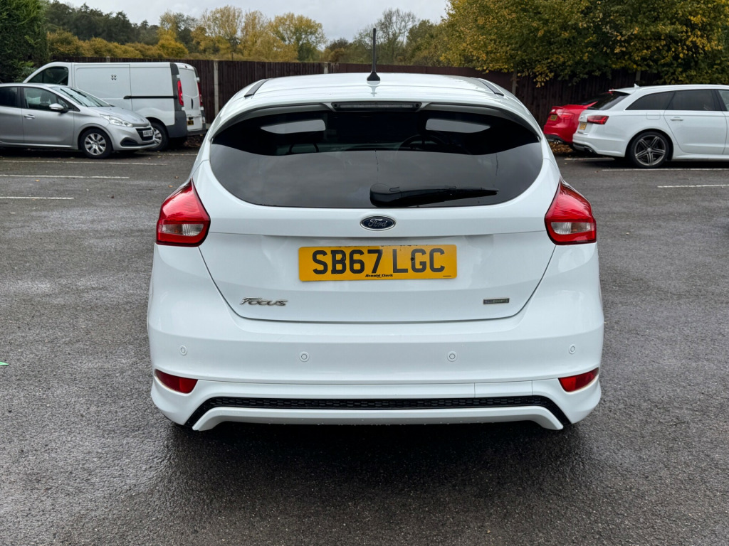 1/OWNER FROM NEW WITH FULL SERVICE HISTORY TIMING BELT JUST BEEN DON AT 87K SATNAV PARKING SENSORS WELL LOOKED AFTER This British car is a 2017 Ford Focus ST-LINE X 5-Door hatchback with a petrol engine and 87000 miles on the clock. It can comfortably accommodate 5 passengers with its 5 seats and 5 doors, making it a convenient and spacious choice for transporting family or friends. The MOT is valid until 04/02/2026, providing peace of mind for the future. Additionally, this car is ULEZ compliant, ensuring it meets the strict emissions standards in London. With only 1 previous registered keeper, this well-maintained vehicle is in good condition and ready for its next owner to enjoy a reliable and stylish ride.