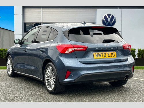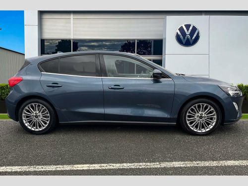 Have a look at this Ford Focus Titanium that is available at Wrexham Volkswagen. This Focus is powered by a 1.5L diesel engine that produces 118 BHP with automatic transmission. The exterior is finished in a blue paintwork, which is complimented by the 17in alloy wheels to the side. This Focus comes with a range of features on offer such as the halogen headlights that keep the roads well lit, rear tinted windows for passenger privacy, keyless entry and starting for quick accessibility, and front and rear parking sensors that assist with maneuvering.