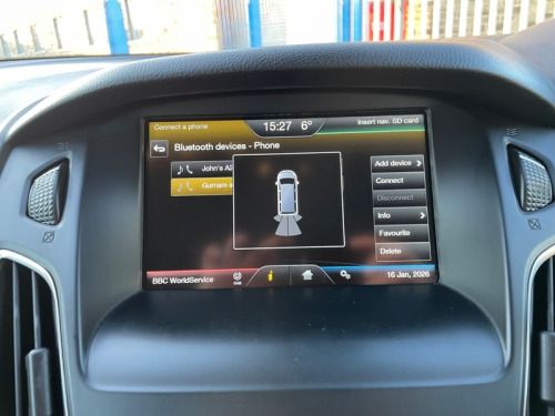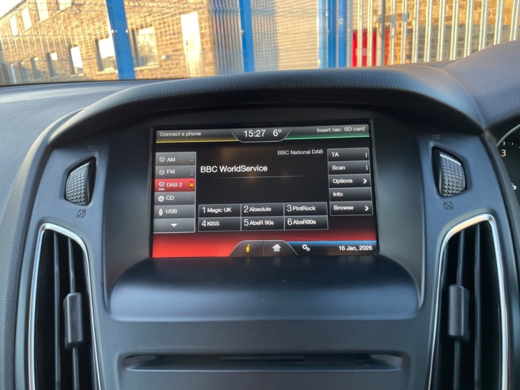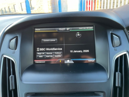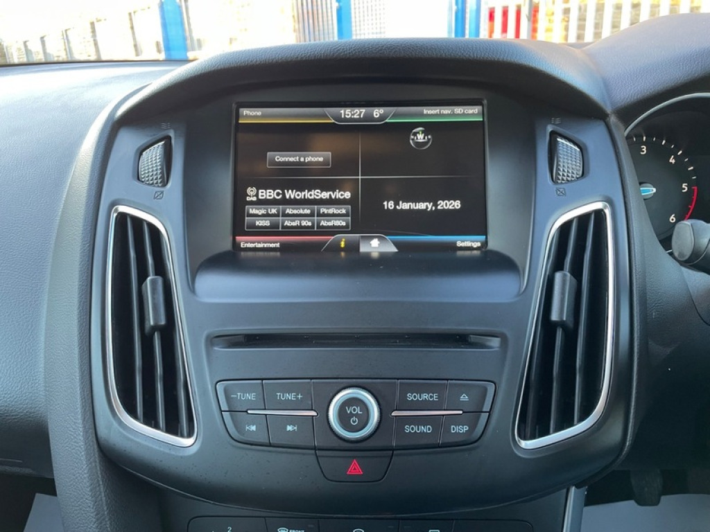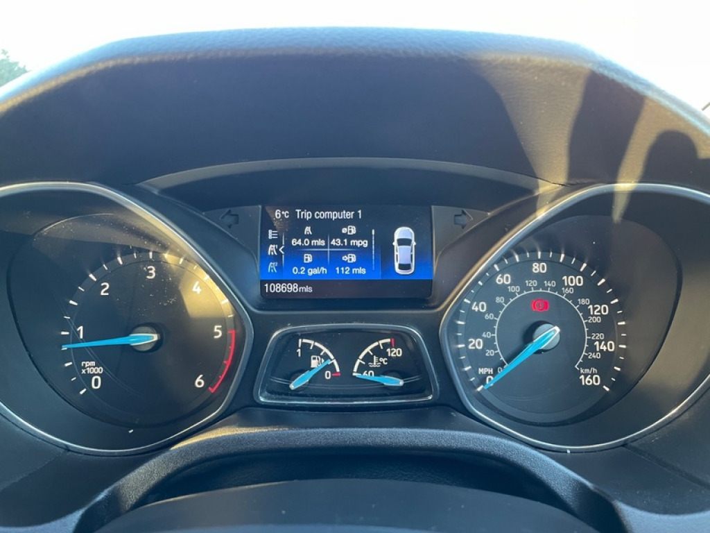 BRILLIANT EXAMPLE OF THE FORD FOCUS ZETEC 1.5 TDCI 6 SPEED MANUAL ESTATE + TIMING BELT & WATER PUMP DONE + GOOD SERVICE HISTORY + £20 TAX + PRACTICAL & ECONOMICAL + LOW INSURANCE BRACKET + LANE ASSIST + SAT NAV + REAR PARKING SENSORS , CRUISE CONTROL, SYNC MEDIA, DAB RADIO, BLUETOOTH - SUPPLIED WITH 3 MONTHS WARRANTY & 12 MONTHS AA BREAKDOWN COVER ++ 2015 Ford Focus Zetec 1.5 TDCi 120ps 5dr Estate Diesel Manual Euro 6 (s/s). Warranted mileage covered 108,500 miles, Current MOT valid till January 2027 Fuel economy - offers an impressive 70+ mpg combined and £20 road tax. Zetec model SPEC: Black paint, Alloy wheels, Daytime running lights, Auto headlights, Front fog lights, Rear Parking sensors. Inside we have tidy cloth upholstery, multifunction steering wheel, Cruise control, Climate control, SYNC, DAB radio, Satellite Navigation, Bluetooth phone and audio, AUX, USB, Start stop function, Push Button start, Central locking, Electric mirrors, Electric windows. Presented with 2 remote key, logbook, service book, owners manual