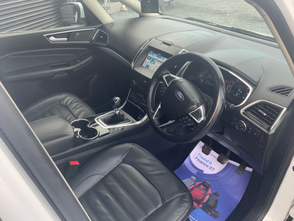 This 2017 Ford Galaxy 2.0 TDCi Titanium X MPV with 109000 miles on the clock is a spacious and practical family car, perfect for those in need of extra seating with its 7 seats across 5 doors. This diesel vehicle is ULEZ compliant and comes with an MOT that expires on 13/11/2026, providing peace of mind for the future. The 2.0 TDCi engine delivers 150 ps, ensuring a powerful and efficient drive, while the manual transmission offers full control for the driver. The exterior features 17in alloy wheels, chrome finish on doorline and lower side windows, as well as body-coloured door handles and electrically-operated, heated, and power-foldable mirrors. With its spacious interior and practical features, this Ford Galaxy is the perfect choice for families or those in need of extra space. in alloy wheels - 10 spoke, chrome finish on doorline, chrome trim to lower side windows, door handles - body colour, door mirrors - electrically-operated - heated and power-foldable - body-coloured housings, exhaust - dual, fog light bezels - self colour, front lower grille - self colour with chrome surround, front upper grille - chrome horizontal bars with chrome finish surround, front and rear bumper - self colour lower-body colour upper, locking wheel nuts, mini spare wheel - 17in steel, opening panorama roof, quickclear heated front windscreen with heated washer jets, rear privacy glass - dark glass to rear windows, rocker panel mouldings - self colour, scuff plates - bright finish front door, silver roof rails, windows - fixed rear quarter glass, windows - global lowering-closing - key fob operated, windows - power-operated front and rear with one touch lowering-closing, active park assist with parallel includes park out assist and perpendicular parking, cruise control with active speed limiter, epas - electric power assisted steering, front and rear parking sensors, gear shift indicator, rear view camera, tsr - traffic sign recognition, tyre pressure monitoring system, air conditioning - tri-zone electronic automatic temperature control, automatic dimming rear view mirror, centre console with cup holders, centre console with fixed armrest and stowage, courtesy lights - ambient lighting, courtesy lights - led 2nd and 3rd row reading lights, floor mats - carpet - front and rear, ford power starter button, front seats - 2-way manual height adjust passive head restraints, front seats - driver and passenger underseat stowage, front seats - seat back tray tables, gearshift knob - leather, heated front seats, load compartment - 4 tie down rings, load floor storage compartment, mykey, overhead console - with sunglasses holder and child observation mirror, power tailgate - button operated, rear seats - 2nd row with manual easy entry - fold flat - slide - recline, rear seats - 3rd row easy entry - fold flat - slide - recline, remote audio controls, seats - 10-way power driver with memory, seats - 8 way power front passenger, sports seats, steering column - rake and reach adjustment, steering wheel - leather wrapped, tonneau cover, wipers - automatic rain sensing front windscreen wipers with variable sensitivity adjustment, airbags - driver and front passenger, airbags - driver and passengers first - second and third row side curtain, airbags - drivers knee bolster, airbags - front side impact, airbags - passenger deactivation, anti-lock braking system - abs with electronic brake force distribution - ebd, child proof door and window locks on rear doors, electric handbrake, ford easy fuel - capless refuelling with misfuel inhibitor, ips - intelligent protection system, isofix child safety seat attachments on 2nd row outer seats, keyfree system, lane keeping aid, rsc - roll stability control, remote central locking, thatcham category 1 alarm, automatic headlights, front fog lights, headlights - courtesy delay, headlights - halogen projector, headlights - manual levelling control, led daytime running lights, rear lights - led technology, ford dab navigation audio system with sd card slot and two usb ports, instrument cluster - 10.1in colour tft display, sync 3 with bluetooth and voice control - 8in colour touchscreen and emergency assistance