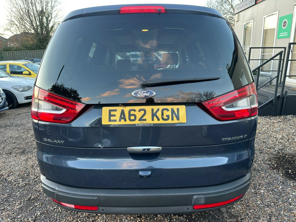 ******** SAME DAY FINANCE AVAILABLE ******** COMES WITH 03 MONTHS FREE WARRANTY ********* **********PERFECT EXAMPLE OF EXCELLENT CAR********* Another Perfect example of 2012 Ford Galaxy 2.2tdci Titanium X Diesel Auto Special Edition 5 dr Estate / MPV 7 Seats 140 bhp with Metallic Grey Colour and Full Beige / Black Leather Interior which has just covered 89000 miles (warranted) . A U T O M A T I C , 89000 Miles , 2012 FORD GALAXY 2.2TDCI TITANIUM X Diesel Auto SE Special Edition 5dr ESTATE / MPV 140 bhp , 7 Seats , 62 Reg , Metallic Grey Colour , Excellent Condition , Full Beige / Black Leather Interior , Power Steering , Remote Central Locking , Adjustable Steering Column / Wheel , Front and Rear Head Restraints , Immobiliser ,Front and Rear Fog Lights , Traction Control , Iso-fix child seat , A I R C O N D I T I O N I N G / Climate Control , Anchor Points , A B S ,Body colour Bumpers , Multiple Air - bags , Electric Mirrors , Radio / CD Player , Alloy Wheels , Just been Fully Valeted , Full Service History + Old m.o.ts to Prove Mileage , 4 Good Tyres , M.O.T Till OCTOBER 2026 , Ideal First / Family Car , Very Clean in and out , Cheap to Run and insure , Cheap to Tax , Price for Quick sale . c - adaptive cruise control with forward alert and hill start assist, sony dab radio - cd-mp3 and usb with premium audio system, multi-media dvd - rear seat entertainment system, touchscreen navigation plus with usb and rear view camera, tyre pressure monitoring system, central locking - keyless entry, driver assistance pack 1, 18in alloy wheels - 5 spoke, power fold door mirrors, sliding cross bars for roof carrier system - aluminium bars with black feet, seat pack, seats - front heated, seats - front climate driver and passenger - heated and cooled, windsor premium leather - biscuit, 12v power socket - front, 12v power socket - rear, abs - anti-lock braking system, aux connection, air conditioning - dual electronic automatic temperature control and rear compartment heater, airbags - drivers knee bolster, airbags - front - 2nd and 3rd row curtain, airbags - front passenger, airbags - side impact, alarm - thatcham category 1 with volume sensing and perimeter, automatic dimming rear view mirror, automatic rain sensing wipers, bi-xenon headlights, bluetooth handsfree and voice control, body colour exterior mirrors, brake warning lights - automatic flashing of brake lights under heavy braking, centre console - includes stowage bin - hinged armrest - 2 cupholders - 2nd row rear ashtray, centre console - overhead full length with stowage bin sunglasses holder child observation mirror, child proof rear door locks - electric, cruise control with adjustable speed limiter, door mirrors - puddle lights, door mirrors with integrated indicators, drivers airbag, drivers seat lumbar support, eba - emergency brake assist, ebd - electronic brakeforce distribution, esp - electronic stability programme, electric windows - flip rear quarter, electric windows - front and rear with one touch drivers, ford easy-fuel capless refuelling system, front fog lights, front parking sensors, front seat - driver electric height adjustment, gear knob - leather, headlights - automatic, headlights - cleaning system, headlights - static cornering lights, heated front windscreen, ips - intelligent protection system, load barrier, load compartment - tie down hooks, locking wheel nuts, panorama roof, parking sensor - rear, power steering, privacy glass, rear seats - 2nd row easy entry tip and slide system, rear seats - three 2nd row individual fold flat seats with height adjustable head restraints, rear seats - two 3rd row individual fold flat seats with height adjustable head restraints, remote central locking, seat back trays - folding, seats - front comfort style, seats - front lumbar support, solar reflect windscreen, sony dab digital radio with cd player and bluetooth usb, steering column - rake and reach adjustment, steering wheel - multifunction, steering wheel - soft feel leather-trimmed, ta - traction assist, tyre repair kit, usb connection - ipod connectivity