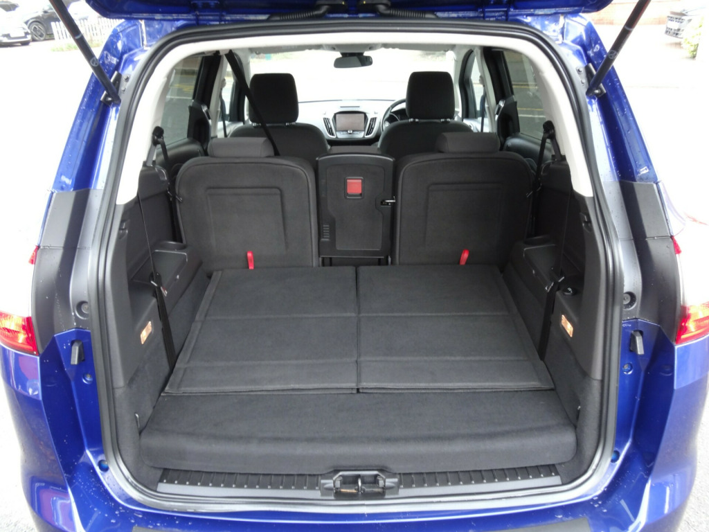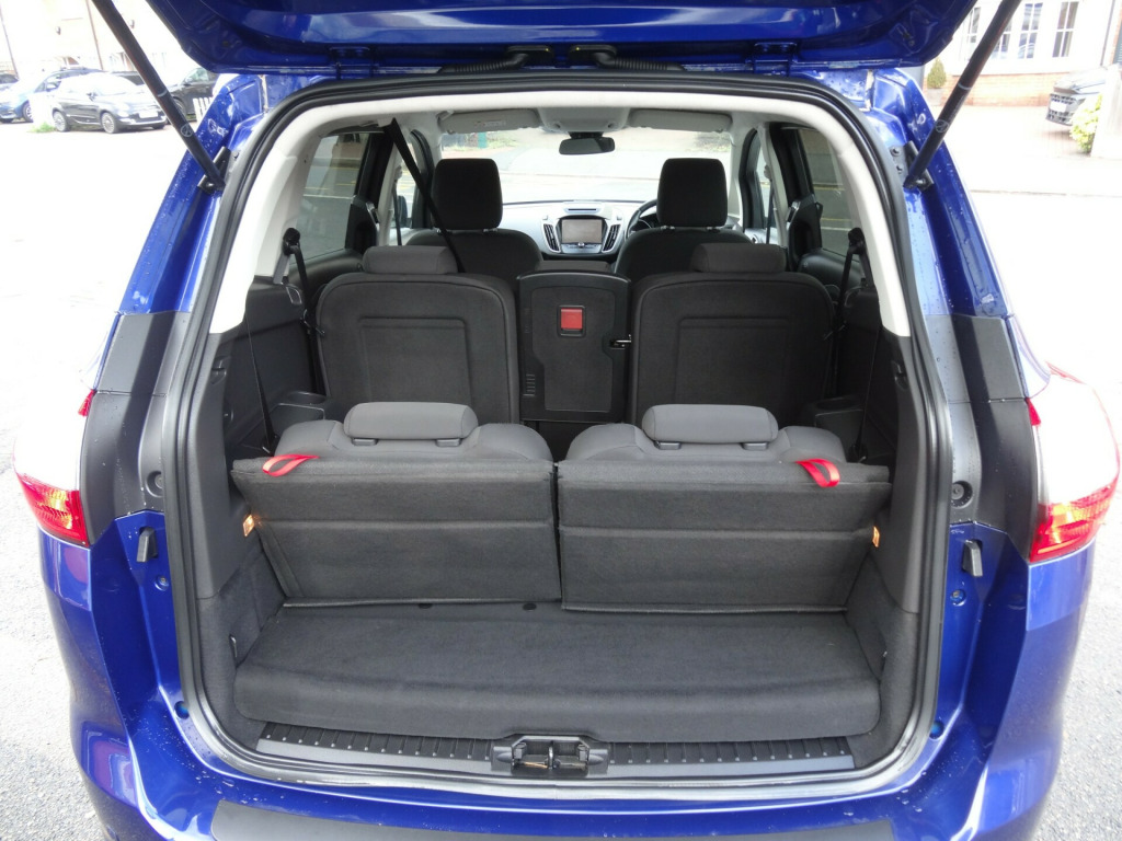 This 2015 Ford Grand C-MAX 1.0T EcoBoost Zetec MPV with a mileage of 61142 miles & full service history is a great family car with 7 seats and 5 doors, making it perfect for those with a larger family. Powered by a petrol engine and equipped with a manual transmission, this vehicle is ULEZ compliant and has an MOT that expires on 21/10/2026. With features such as a Ford DAB Audio System, 16in Alloy Wheels, and various power sockets, it offers both comfort and convenience. Its Euro 6 rating ensures low emissions, and the bright finish on the upper door line adds a touch of style. If you're in need of a spacious and reliable MPV, this well-maintained Ford Grand C-MAX is worth considering. Call us on 01708-913354, friendly service & advice at all times, v power socket - front, auxiliary power socket, ford dab audio system, 16in alloy wheels - 5x2 spoke, bright finish on upper door line, door handles - body colour, door mirrors - heated - electric - integrated side indicators - body coloured, electric windows - front and rear - one touch - global opening and closing, fog light bezel - high gloss black with chrome finish surround, front lower grille - self colour, front upper grille - self colour with chrome surround, locking wheel nuts, mini steel spare wheel, quickclear heated windscreen, wipers - standard with 6 speed interval settings, abs - anti-lock braking system, airbags - driver and front passenger, airbags - front and 2nd row curtain, airbags - side impact, alarm - thatcham category 1 with volume sensing and perimeter, brake warning lights - automatic flashing of brake lights under heavy braking, esp - electronic stability programme, ford easy-fuel capless refuelling system, ips - intelligent protection system, isofix - child seat attachments, power rear door child locks, remote central locking, air conditioning - manual, automatic rain sensing wipers, centre console, courtesy light - front and rear, doors - sliding rear passengers, drivers seat lumbar support, floor mats - front, front seat - passengers manual fore-aft adjustment, front seats - height adjustable head restraints, gearshift knob - leather, glovebox - illuminated, interior door lever - satin chrome finish, mykey, rear seats - 3rd row outer armrests, rear seats - 40-20-40 split, rear seats - two 3rd row individual fold flat seats with height adjustable head restraints, seats - drivers manual height and fore-aft adjustment, steering column - rake and reach adjustment, steering wheel - 3 spoke - leather trimmed, tonneau cover, epas - electric power assisted steering, ford eco mode - driver information system, fuel computer, parking sensor - rear, tyre pressure monitoring system, front fog lights