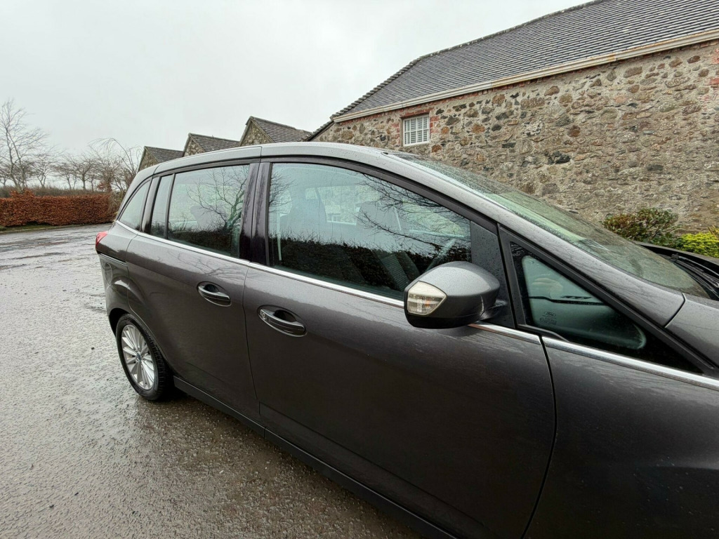 This 2016 Ford Grand C-Max TDCi Titanium offers an impressive 64 miles per gallon, making it a highly economical choice for families. This seven seater MPV is equipped with a 1.5 litre diesel engine and meets Euro 6 emissions standards. Inside, you'll find the Ford SYNC2 DAB Audio System with Bluetooth connectivity, dual zone electronic automatic air conditioning for personalised comfort, and rear parking sensors to aid with manoeuvring. Automatic headlights also feature, providing convenience and enhanced visibility.The Titanium trim level ensures a well appointed driving experience, and the low CO2 emissions highlight its environmental consideration. These factors combined indicate that this Grand C-Max is a superior option compared to other vehicles in its class, offering a blend of practicality, efficiency, and modern features for everyday journeys. v power socket - front, 17in alloy wheels - 15 spoke, abs - anti-lock braking system, air conditioning - dual zone electronic automatic temperature control, airbags - driver and front passenger, airbags - front and 2nd row curtain, airbags - side impact, alarm - thatcham category 1 with volume sensing and perimeter, automatic dimming rear view mirror, automatic rain sensing wipers, auxiliary power socket, brake warning lights - automatic flashing of brake lights under heavy braking, bright finish on upper door line, centre console - sliding armrest, courtesy light - front and rear - led, cruise control with speed limiter, door handles - body colour, door mirrors - heated - electric - auto foldable - integrated side indicators - body coloured, doors - sliding rear passengers, drivers seat lumbar support, epas - electric power assisted steering, esp - electronic stability programme, electric windows - front and rear - one touch - global opening and closing, floor mats - 2nd row rear, floor mats - 3rd row rear, fog light bezel - high gloss black with chrome finish surround, ford easy-fuel capless refuelling system, ford eco mode - driver information system, ford power engine start-stop button, ford sync2 dab audio system, front fog lights, front lower grille - self colour, front seat - passenger manual height fore-aft adjustment, front seat - passengers manual lumbar support adjustment, front seats - height adjustable head restraints, front upper grille - high gloss black with chrome surround and chrome bar, fuel computer, gearshift knob - leather, glovebox - illuminated, headlights - automatic, headlights - halogen, ips - intelligent protection system, isofix - child seat attachments, interior door lever - satin chrome finish, led ambient courtesy lighting, locking wheel nuts, mini steel spare wheel, mykey, overhead console - sunglasses holder, parking sensor - rear, power rear door child locks, quickclear heated windscreen, rear seats - 3rd row outer armrests, rear seats - 40-20-40 split, rear seats - two 3rd row individual fold flat seats with height adjustable head restraints, remote central locking, scuff plates - front - ford logo, seats - drivers manual height and fore-aft adjustment, steering column - rake and reach adjustment, steering wheel - 3 spoke - leather trimmed, tonneau cover, tyre pressure monitoring system
