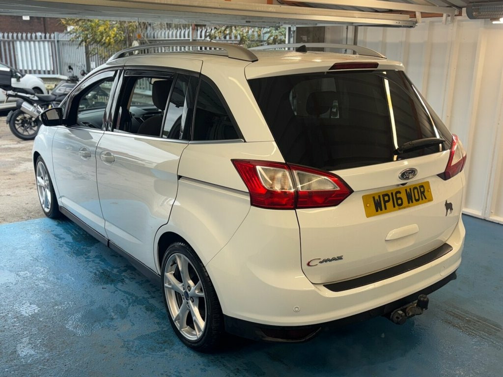 NEW TIMING BELT AND SERVICE+2 KEYS+£35 ROAD TAX+HISTORY+7 SEATS+TOW BAR+CRUISE+SENSORS+NAV+CAMERA+ALLOYS+AIRCON+HPI CLEAR+VOSA MOT HISTORY+FULL DEALER FACILITIES+FINANCE ARRANGED+CLEAN +GREAT DRIVE+GOOD MPG, The car is in very good condition in and out . Bodywork and interior clean for age and mileage . Interior is clean and tyres good ,Engine and gearbox in good order. Discover this 2016 Ford Grand C-Max TDCi Titanium, a versatile 7 seater family car that offers a comfortable and practical driving experience. Powered by an efficient 1.5L Diesel engine, this Euro 6 compliant model boasts low CO2 emissions, making it an environmentally conscious choice. The Titanium trim level ensures a premium feel, complemented by stylish 18 inch alloy wheels. This Grand C-Max is equipped with a host of convenient features designed to enhance your journey. Enjoy effortless parking with the rear view camera and parking assistance. Stay connected and entertained with the Ford SYNC3 DAB audio system, featuring Bluetooth connectivity. The DEATC dual zone electronic automatic temperature control allows for personalised comfort for both driver and passengers, while keyless entry adds a touch of modern convenience. . 17in Alloy Wheels - 15 Spoke, 18in Alloy Wheels - 5 Spoke, Accessory Power Socket - 12V, Alarm - Thatcham Category 1 with Volume , Automatic Headlights - Rain Sensing Wipe, Auxiliary Power Socket - Luggage Space, Chrome Finish on Upper Door Line, Courtesy Light - Ambient LED Courtesy Li, Courtesy Light - Front and Rear - LED Re, Cruise Control with Active Speed Limiter, DEATC - Dual-Zone Electronic Automatic T, Door Handles - Body Colour, Door Mirrors - Heated - Electric - Power, Doors - Sliding Rear Passengers, EPAS - Electric Power Assisted Steering, Floor Mats - Front and Rear, Fog Light Bezel - High Gloss Black with , Ford Easy-Fuel Capless Refuelling System, Ford Eco Mode - Driver Infor