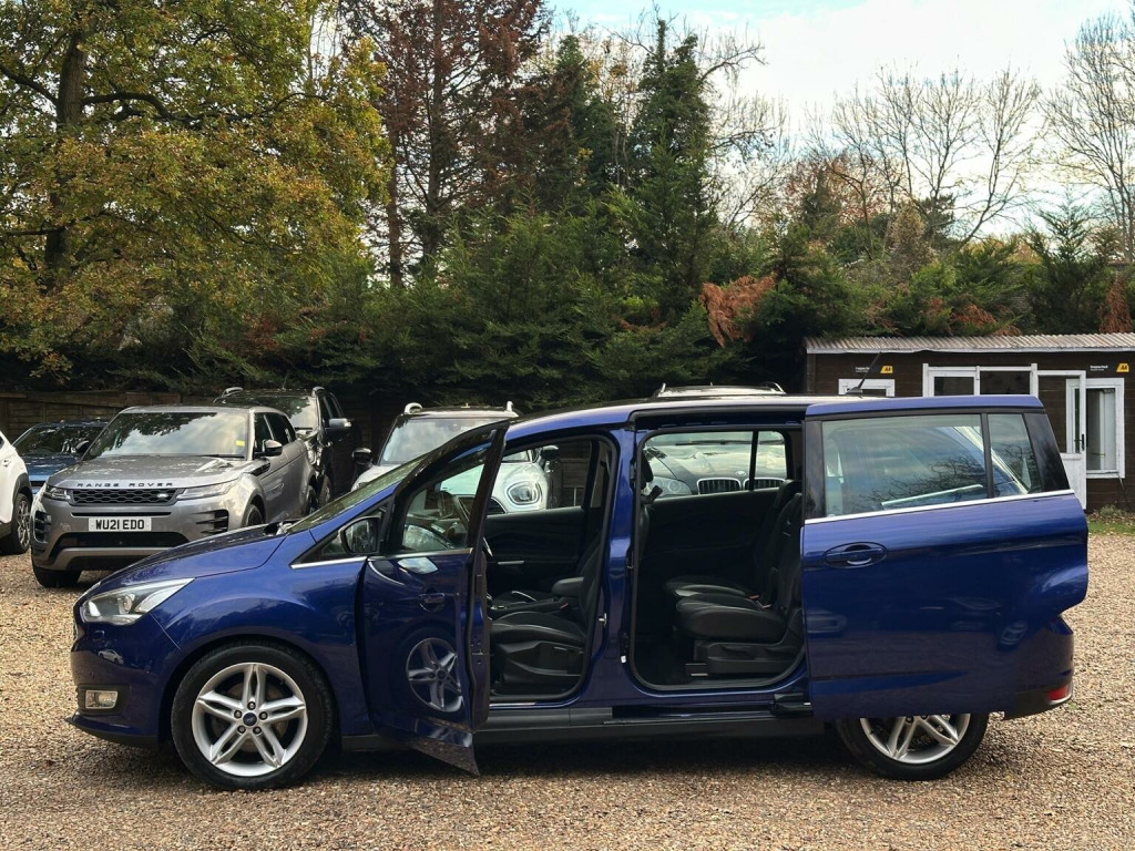 COMES WITH:, Iso fix, Sound system brand:SYNC, Electric seat, Sat nav, Heated seat, Pan roof, Usb port, Bluetooth, Reversing camera, Parking sensors , Electric windows , Dab radio, Tmps, Multi functional steering wheel, Speed reader, Adjustable headlight, Alloys wheels, Steering wheel adjustment , Auto hold, cruise control, This 2018 Ford Grand C-Max TDCi Titanium X presents an exceptional opportunity with its remarkably low mileage of just 42,639 miles. As a Euro 6 compliant model, this 1.5L diesel MPV offers a practical and efficient seven seat configuration, perfect for families. The Titanium X trim level ensures a premium experience, featuring keyless entry for effortless access, and heated front seats for added comfort during colder journeys. Further enhancing your driving pleasure, this Grand C-Max boasts DEATC dual zone electronic automatic temperature control, allowing both driver and front passenger to set their preferred climate. The Bi-Xenon headlamps with adaptive front lighting and jet wash provide superior visibility, adapting to your steering for improved safety. Entertainment and connectivity are seamlessly integrated through the Ford SYNC3 DAB audio system, complete with Bluetooth functionality. These advanced features collectively elevate this Ford Grand C-Max above other vehicles in its class, offering a refined and well equipped driving experience.