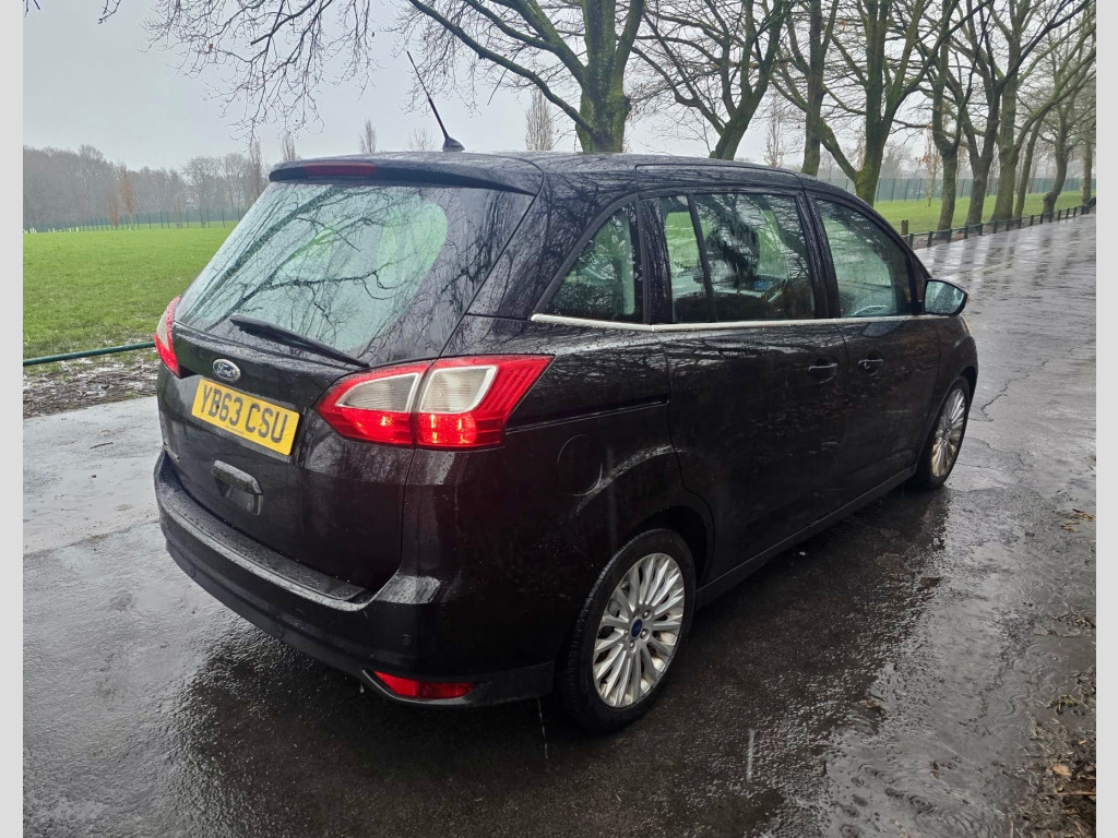 HPI CLEAR!LONG VALID MOT - DECEMBER 2026LOW INSURANCE FUEL EFFICIENT 7 SEATERPARKING SENSORSBLUETOOTHSONY RADIO/CDMETALLIC PANTHER BLACKWARRANTY PACKAGES AVAILABLE UK DELIVERY AVAILABLE This 2013 Ford Grand C-MAX 1.6 TDCi Titanium MPV with a diesel engine and manual transmission has covered 82000 miles and comes with an MOT that expires on 13/12/2026. This 5-door MPV can accommodate 7 passengers and comes equipped with 12V power sockets both at the front and rear, as well as a 4.2-inch TFT display. The interior features Pur - Lux Cloth - Syracuse upholstery, and the exterior is finished in Panther Black. With its Euro 5 (115 ps) engine, this spacious and practical MPV offers both comfort and efficiency, making it a great choice for families or those in need of extra space. v power socket - additional rear, 12v power socket - front, 4.2in tft display, aux input socket, bluetooth hands-free phone, emergency assistance, ford sync, remote multifunction display controls, sony dab audio system, sony radio-cd, speakers - x9, usb connection - ipod connectivity, 17in alloy wheels - 15 spoke, door lever front - satin chrome finish, electric windows - front and rear with one touch, electric windows - global opening-closing, ford easy fuel system, heated front windscreen, locking wheel nuts, power fold door mirrors, tyre repair kit, 2nd row airvents, air conditioning - dual zone electronic automatic temperature control, automatic dimming rear view mirror, automatic rain sensing wipers, branded integrated control panel, cd storage, centre console - premium with sliding armrest stowage bins and 12v front and rear sockets, centre console - bright finish cup holder surrounds, child observation mirror, courtesy light - footwell illumination, courtesy light - front and rear reading lights, courtesy light - led overhead and load compartment, doors - sliding rear passengers, drivers seat lumbar support, floor mats - front velour with ford logo, floor mats - 2nd row rear - velour, floor mats - 3rd row rear - velour with ford tag, ford power engine start-stop button, front seat - passenger manual height fore-aft adjustment, front seat - passengers manual lumbar support adjustment, gearshift knob - leather, headliner - luxury woven, led ambient courtesy lighting, overhead console - map reading lights and sunglasses holder, overhead console - mood lighting, overhead console - a5 stowage, rear seats - 2nd row easy entry tip and slide system, rear seats - two 3rd row individual fold flat seats with height adjustable head restraints, scuff plates - front aluminium-finish with ford logo, seats - drivers manual height and fore-aft adjustment, steering column - rake and reach adjustment, steering wheel - 4 spoke leather trimmed, steering wheel - multifunction, stowage boxes - two underneath rear passengers foot area, stowage boxes - two underneath rear passengers foot area in 2nd row, tonneau cover, variable dimming of instrument cluster and radio screen display, z-shape handbrake, abs - anti-lock braking system, airbag - front passenger, airbags - driver, airbags - front and 2nd row curtain, airbags - side impact, alarm - thatcham category 1 with volume sensing and perimeter, anti-roll protection, brake warning lights - automatic flashing of brake lights under heavy braking, eba - emergency brake assist, ebd - electronic brakeforce distribution, esp - electronic stability programme, ford easy-fuel capless refuelling system, hill start assist, power rear door child locks, remote central locking, traction control - tc, cruise control with adjustable speed limiter, dds - deflation detection system, front suspension - independent with macpherson struts, fuel computer, outside temperature thermometer, parking sensor - rear, power steering, voice control - audio, front fog lights, headlights - automatic, headlights - courtesy delay