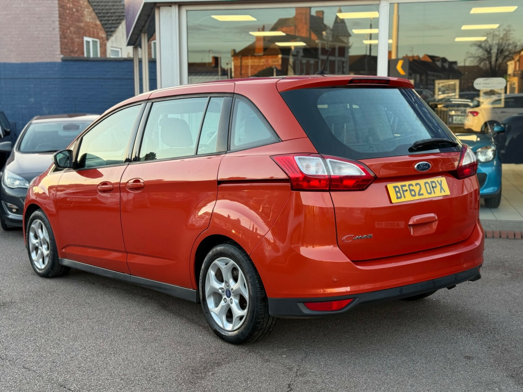 This 2012 Ford Grand C-MAX 1.6 Zetec MPV with 93065 miles on the clock is a reliable family car that's perfect for city driving, thanks to its ULEZ compliance and petrol engine. With 7 seats and 5 doors, there's plenty of space for the whole family, and the MOT is valid until 21/03/2026. The car comes with a range of convenient features, including 12V power sockets in the front and rear, an AUX connection, and a Ford DAB audio system with 6 speakers. With its Euro 5 engine producing 125 ps, this MPV is not only practical but also powerful enough for long journeys., v power socket - front, 12v power socket - rear, aux connection, ford dab audio system, speakers - x6, stereo radio cd am fm mp3, usb connection - ipod connectivity, 16in alloy wheels - 5 spoke, body colour exterior mirrors, door mirrors - electrically operated and heated, door mirrors with integrated indicators, electric windows - front and rear with one touch drivers, heated front windscreen, heated washer jets, locking wheel nuts, tyre repair kit, abs - anti-lock braking system, airbags - front passenger, airbags - front and 2nd row curtain, airbags - side impact, alarm - thatcham category 1 with volume sensing and perimeter, brake warning lights - automatic flashing of brake lights under heavy braking, child proof rear door locks - electric, drivers airbag, eba - emergency brake assist, ebd - electronic brakeforce distribution, esp - electronic stability programme, emergency brake warning, ford easy-fuel capless refuelling system, ips - intelligent protection system, isofix child safety seat attachments on 2nd row outer seats, remote central locking, traction control - tc, air conditioning - manual, centre console - regular with stowage bins and 12v socket, centre console - sliding armrest, courtesy light - led overhead and load compartment, doors - sliding rear passengers, drivers seat lumbar support, front seat - passengers manual fore-aft adjustment, gear knob - leather, gearshift knob - leather, interior door lever - chrome finish, rear seats - 2nd row easy entry tip and slide system, rear seats - two 3rd row individual fold flat seats with height adjustable head restraints, seats - drivers manual height and fore-aft adjustment, steering column - rake and reach adjustment, steering wheel - 4 spoke leather trimmed, steering wheel - multifunction, stowage boxes - two underneath rear passengers foot area, tonneau cover, front fog lights, front suspension - independent with macpherson struts, fuel computer, parking sensor - rear, power steering