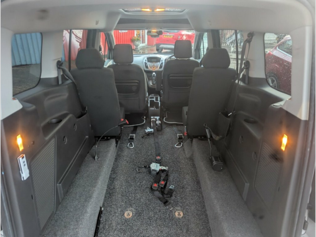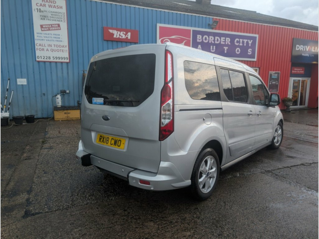 This 2018 Ford Grand Tourneo Connect TDCi Titanium presents an exceptional opportunity with its remarkably low mileage of just 33,000 miles. As a Euro 6 compliant model, this 1.5L diesel engine offers an impressive fuel economy of 57 mpg, making it an economical choice for families. The Titanium trim level ensures a well equipped interior, featuring the Ford SYNC audio system with Bluetooth connectivity for seamless hands free calls and music streaming. Practicality is further enhanced by manual air conditioning to keep you comfortable in all conditions and a reverse parking aid to assist with manoeuvring. The Grand Tourneo Connect is designed for versatility and comfort, boasting seven seats to accommodate larger families or groups. Its low insurance group rating is a significant advantage, suggesting lower running costs. The inclusion of automatic headlights adds convenience and safety, ensuring optimal visibility. These combined factors, including the excellent fuel efficiency and low mileage, position this Ford Grand Tourneo Connect as a superior option compared to other vehicles in its class. THIS VEHICLE HAS BEEN CONVERTED FOR WHEEL CHAIR ACCESS TO THE REAR WITH WINCH AND CLAMPS Metalicious, 16in Alloy Wheels - 5 Spoke, 2nd Remote Key, ABS - Anti-lock Braking System with Trac, Active City Stop, Airbag - Front Passenger, Airbags - Drivers and Front Passenger Si, Airbags - Front - 2nd and 3rd Row Curtai, Armrest - 2nd Row Centre Unit, Armrest - Drivers, Auto Headlamps, Automatic Rain Sensing Wipers, Body Colour Rear Bumper, Body Coloured Front Bumper, Bottle Holder - 1.5ltr in Door, Card-Ticket Holders in Lower Instrument , Cargo Compartment Net - Horizontal for F, Centre Console, Child Observation Mirror, Childproof Rear Door Locks, City Safety Pack, Courtesy Lights - Front Dome Light with , Courtesy Lights - Rear Overhead, Cruise Control with Adjustable Speed Lim, D