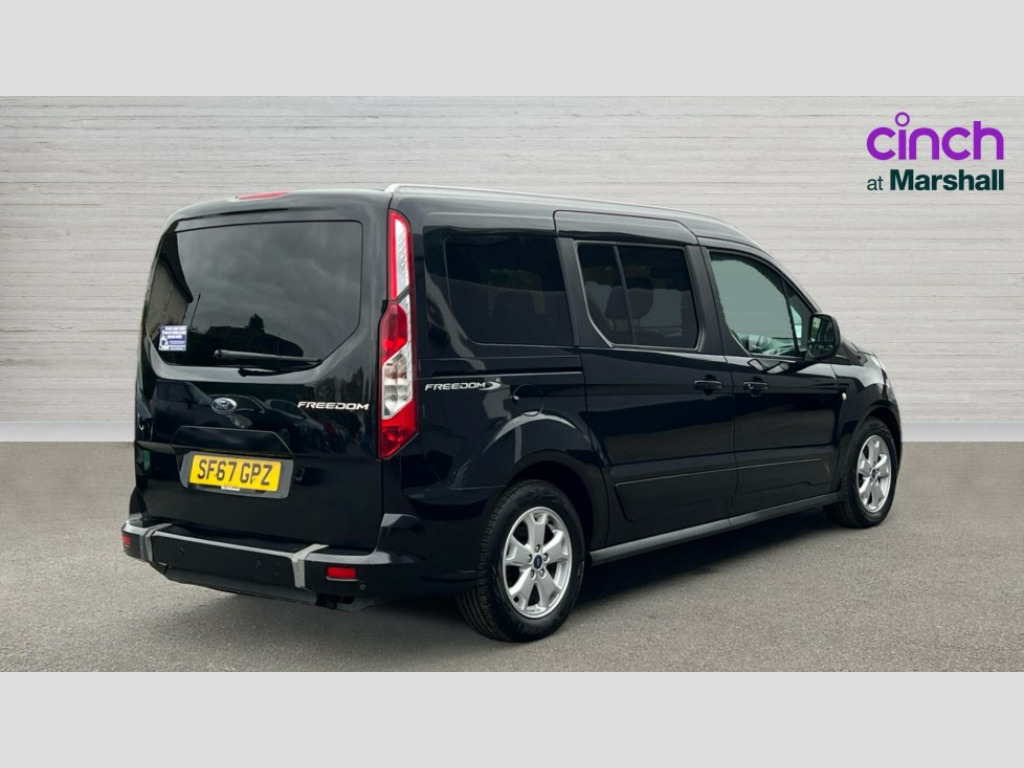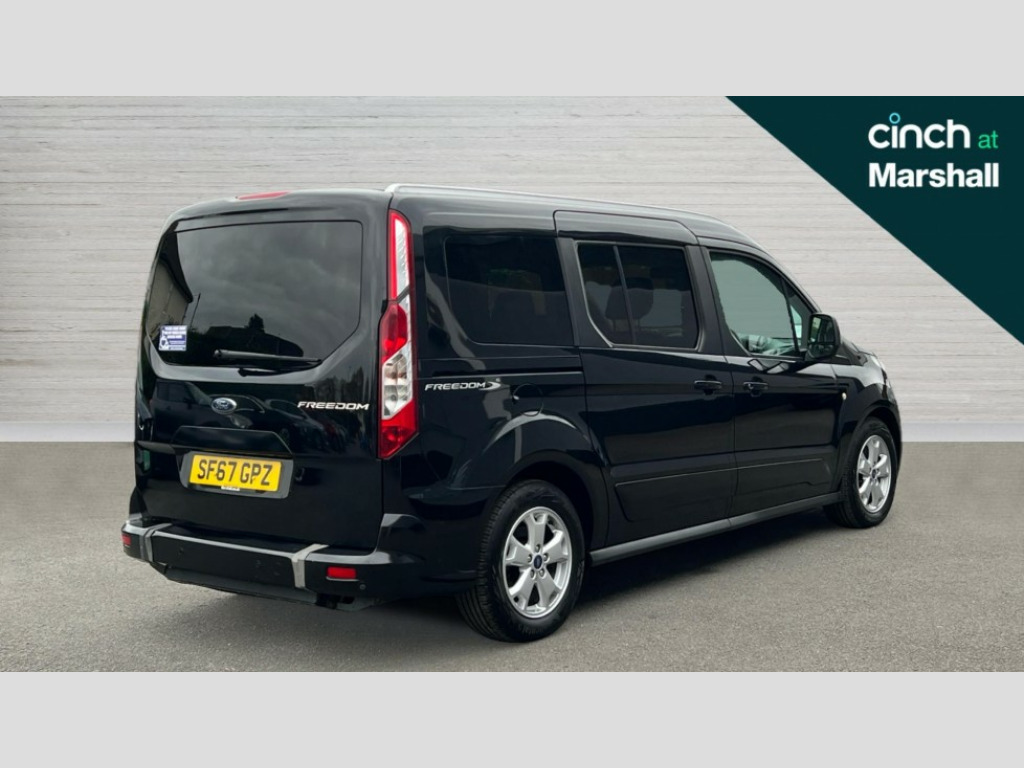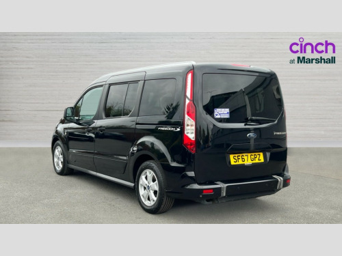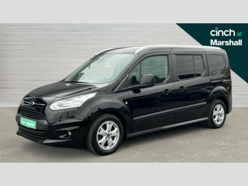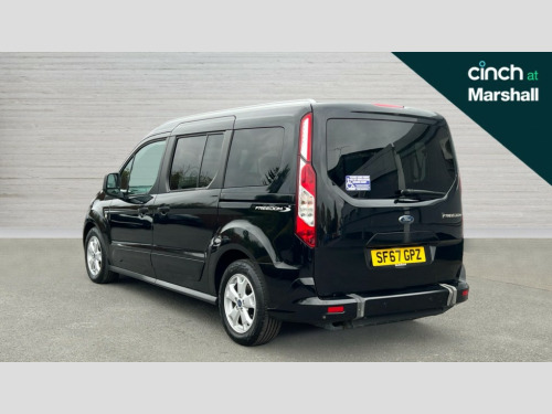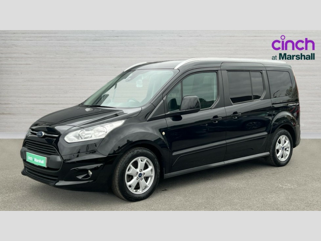 Ford Grand Tourneo Connect 1.5 TDCi 120 Titanium 5dr Bluetooth + USB, Cruise control + speed limiter, Easy fuel capless refuelling system, PAS, Rear parking sensor, Trip computer, Diesel particulate filter, Steering wheel mounted audio controls, Auto dimming rear view mirror, Automatic lights and wipers, Body colour door handles, Body colour side mouldings, Body coloured bumpers, Chrome headlight surround, Cornering light, Daytime running lights, Dual sliding side load doors, Electric folding and heated door mirrors, Front fog lights, Heated washer jets, Heated windscreen, Power front/rear windows with global close, Privacy glass, 2nd row centre armrest, 4 way manually adjustable passenger seat with height, reach, tilt, backrest and headrest, Cloth upholstery, Driver's armrest, Front carpet mats, Front head restraints, Leather gearknob, Leather steering wheel, Map pocket on front seat backs, Overhead storage shelfs, Pollen filter, Reach + rake adjustable steering column, Rear head restraints, Second row split/folding seats, Seat pack 9 - Tourneo connect//Grand Tourneo Connect, 3 point seatbelts on all seats, Active city stop, Driver and passenger airbags, Drivers seatbelt reminder, ESC with ABS, Front and rear curtain airbags, Front side airbags, Passenger seatbelt warning indicator, 2nd remote key, Immobiliser, Remote central double locking
