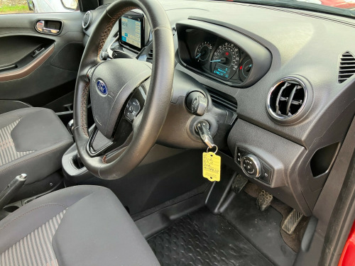 2019 '69' Ford KA+ 1.2 ACTIVEFinance available, please call for details.INTERIOR: Black cloth interior. Electric windows. Electric mirrors. Remote central locking. Power steering. Multiple air bags. Factory radio / media. Cruise control.EXTERIOR: Ruby Red paintwork, colour coded bumpers. 15'' Ford alloy wheels, recently fitted with 4 UNIROYAL all season tyres. Some marks consistent with age / value.MECHANICALS: 1197cc petrol engine. 5 speed manual gearbox. All running gear good, and the car drives superb. Recent engine service and clutch kit and new battery at 78k.PAPERWORK: HPI clear. Full logbook, only 1 private owner. Current MOT expires November 16th 2026. Stamped service book, showing 5 records, most recently at 78k. All owners manuals in Ford wallet.OVERALL: Lovely little car throughout. Looks great, Drives very well. Cheap to run and maintain. Great service history. Long MOT., v and aux power point in instrument panel, ford sync 3 dab radio with 6.5in touchscreen, 15in alloy wheels - 4x2 spoke in grey finish, body colour bumpers, door handles - body colour, electrically operated door mirrors with side indicators, electrically-operated heated rear window defroster, fog light surrounds - black, ford easy fuel system, front upper grille - unique active design, front and rear towing hooks, privacy glass, rugged bodystyling kit with active front wing badges, silver roof rails, tailgate threshold plate, tyre repair kit, windows - electrically-operated front with one-touch lowering-closing on drivers side, active logo front door threshold plates, all-weather floor and cargo mats, centre console with two cupholders and 12v power point, front seat - 2-way manual passenger seat - fore-aft-recline, front seat - 4-way manual driver seat - fore-aft-up-down, leather steering wheel with remote audio controls, manual air conditioning, mykey, rear centre head restraint, rear fog lamps, rear seat - 60-40 split folding seats, remote fuel cap release, steering column - tilt adjustment, windows - rear manual, airbags - driver and front passenger, airbags - front side impact, airbags - passenger airbag deactivation switch, airbags - side curtain, anti-lock braking system abs and electronic stability control esc with hill start assist, emergency brake warning, engine immobiliser, manual childproof locks on rear doors, perimeter anti theft alarm, remote central-double locking, traction control button on instrument panel, cruise control, electric power-assisted steering - epas, rough road suspension, speed limiter, trip computer, tyre pressure monitoring system - tpms, daytime running lamps, front fog lights, headlights - manual levelling control, high-mounted rear brake light