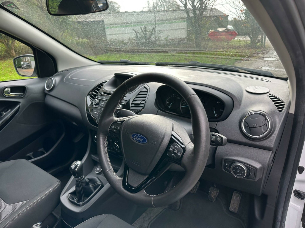 JUST ARRIVED!!This LOVELY 1 LADY OWNER Ford Ka+ 1.2 Ti-VCT Zetec Euro 6 5door in Oxford White. The car is in excellent condition and has always been garaged. It comes with a Comphensive Service History totalling x6 Services (5 at Ford Main Dealer) and has a new MOT with NO Advisories. It has a great specification that includes 15in Alloys, City Pack which includes Electric Rear Window, Rear Parking Sensors and Heated/Folding Door Mirrors, DAB, Cruise Control, Bluetooth, Privacy Glass, Navigation, Dual Zone Climate Control, Rear Parking Sensors to name just a few. It is supplied with 2 keys, 6 Months RAC Platinum Warranty and 12 Months Breakdown Cover.NO ULEZ charge.Competitive finance packages arranged with rates starting from 9.9% APR (Subject to status).Part exchange welcome. HPI Clear. Call now to arrange a viewing. dha cloth - dark shadow-charcoal black, rear parking sensors, city pack, 15in alloy wheels - 5x2 spoke, abs - anti-lock braking system, airbags - curtain, airbags - driver, airbags - front passenger, airbags - front side, airbags - passenger airbag deactivation switch, body colour bumpers, centre console with two cupholders and 12v power point, centre high-mounted stop light, chrome upper grille, cruise control, dds - deflation detection system, door handles - body colour, esp - electronic stability programme, electric power-assisted steering - epas, electrically operated door mirrors with side indicators, emergency brake warning, engine immobiliser, ford dab radio with 4.2in tft screen - sync and emergency assistance, ford easy fuel system, front floor mats - driver and passenger, front fog lamps with day running lights, front lower grille - black, front seat - 2-way manual passenger seat - fore-aft-recline, front seat - 4-way manual driver seat - fore-aft-up-down, gearshift knob - soft feel with chrome surround ring, glovebox light, handbrake - with chrome tip, hazard warning lights, headlights - manual levelling control, hill start assist, illuminated door switch, leather steering wheel with remote audio controls, load compartment light, manual air conditioning - a-c, manual childproof locks on rear doors, map reading lights, mykey, perimeter alarm with remote central locking, rear centre head restraint, rear fog lamps, rear seat - 60-40 split folding seats, seatbelts - 3-point with pre-tensioner, seatbelts - manual height adjustment, seatbelts - rear 3-point, speed limiter, steering column - rake and reach adjustment, sun visor - driver flip-up vanity mirror and stowage loop, sun visor - passenger flip-up vanity mirror, suspension - front stabiliser bar, tailgate remote release, tailgate wash-wipe, tinted glass, trip computer, tyre repair kit, windows - electrically-operated front with one-touch lowering-closing on drivers side, windows - rear manual, wipers - front variable intermittent