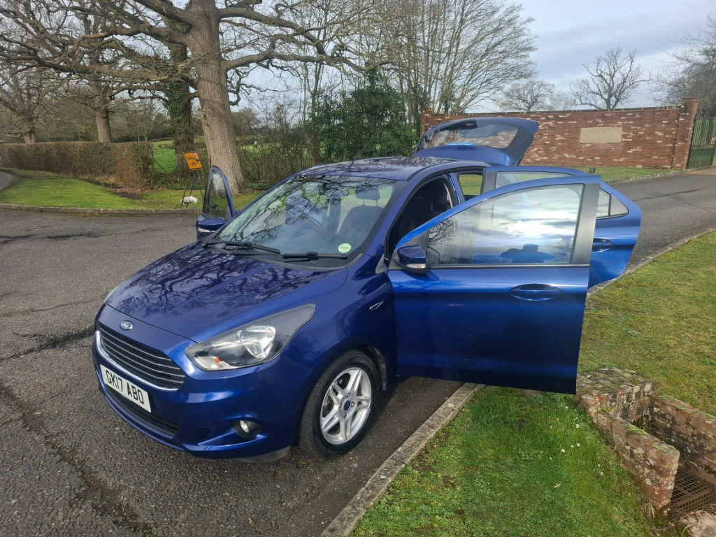 We are delighted to present for sale this 2017 Ford Ka+ Ti-VCT Zetec which has remarkably low mileage of just 21,500 miles backed by full service history and coming to you with one years mot upon sale, This Euro 6 compliant 1.2 litre petrol model has been cared for by us for the last 5 years so we know the vehicle very well, ensuring its excellent condition. It comes equipped with manual air conditioning, providing comfort during warmer journeys. The Ford Ka+ Ti-VCT Zetec stands out with its impressive fuel economy, achieving an excellent 57 miles per gallon, which is better than many similar vehicles. Furthermore, its low CO2 emissions and low insurance group rating mean that running costs are kept to a minimum, making it a very economical choice for everyday driving. All of our vehicles are fully hpi checked and clear and go through our rigorous 130 point pre delivery inspection for your peace of mind. Affordable finance options are available and we are currently paying £500 over autotrader valuations on all part exchanges (subject to condition and history). If you have any questions or you would like to pre book a test drive please call Dan or Sarah on 01622 890933 and we will be happy to help. in alloy wheels - 5x2 spoke, abs - anti-lock braking system, airbags - curtain, airbags - driver, airbags - front passenger, airbags - front side, airbags - passenger airbag deactivation switch, body colour bumpers, centre console with two cupholders and 12v power point, centre high-mounted stop light, chrome upper grille, cruise control, dds - deflation detection system, door handles - body colour, esp - electronic stability programme, electric power-assisted steering - epas, electrically operated door mirrors with side indicators, emergency brake warning, engine immobiliser, ford dab radio with 4.2in tft screen - sync and emergency assistance, ford easy fuel system, front floor mats - driver and passenger, front fog lamps with day running lights, front lower grille - black, front seat - 2-way manual passenger seat - fore-aft-recline, front seat - 4-way manual driver seat - fore-aft-up-down, gearshift knob - soft feel with chrome surround ring, glovebox light, handbrake - with chrome tip, hazard warning lights, headlights - manual levelling control, hill start assist, illuminated door switch, leather steering wheel with remote audio controls, load compartment light, manual air conditioning - a-c, manual childproof locks on rear doors, map reading lights, mykey, perimeter alarm with remote central locking, rear centre head restraint, rear fog lamps, rear seat - 60-40 split folding seats, seatbelts - 3-point with pre-tensioner, seatbelts - manual height adjustment, seatbelts - rear 3-point, speed limiter, steering column - rake and reach adjustment, sun visor - driver flip-up vanity mirror and stowage loop, sun visor - passenger flip-up vanity mirror, suspension - front stabiliser bar, tailgate remote release, tailgate wash-wipe, tinted glass, trip computer, tyre repair kit, windows - electrically-operated front with one-touch lowering-closing on drivers side, windows - rear manual, wipers - front variable intermittent