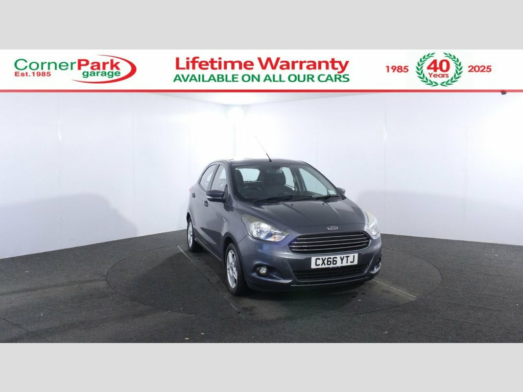Service history with 4 services. Last serviced at 31,402 miles. Presenting this 2016 Ford KA+ 1.2 Ti-VCT Zetec Hatchback 5dr Petrol Manual Euro 6 (85 ps), a compact and practical city car designed for easy urban driving and low running costs. Finished in Smoke Grey (£495 option) with 15-inch 5x2 spoke alloy wheels, body-coloured bumpers and door handles, chrome upper grille, and tinted glass, it offers a smart and modern appearance. The Zetec trim features include a leather steering wheel with remote audio controls, manual air conditioning, 4.2-inch TFT screen with Ford SYNC and DAB radio, cruise control with speed limiter, and hill start assist. Comfort and convenience are supported by electrically operated door mirrors with indicators, power front windows with one-touch driver's side, a split-folding 60/40 rear seat, and height-adjustable driver and passenger seats. Practical storage includes a centre console with two cupholders and a 12V power point, illuminated glovebox, and load compartment light. Safety features include ABS with EBD, electronic stability programme (ESP), airbags for driver, front passenger and side curtain, perimeter alarm with remote central locking, emergency brake warning, deflation detection system, manual childproof rear door locks, and a tyre repair kit. Manual headlight levelling, front fog lamps with daytime running lights, and rear fog lights improve visibility. The car's compact size and practical features make it an idea 15in Alloy Wheels - 5x2 Spoke, ABS - Anti-lock Braking System, Airbags - Curtain, Airbags - Driver, Airbags - Front Passenger, Airbags - Front Side, Airbags - Passenger Airbag Deactivation , Body Colour Bumpers, Centre Console with Two Cupholders and 1, Centre High-Mounted Stop Light, Chrome Upper Grille, Cruise Control, DDS - Deflation Detection System, Door Handles - Body Colour, Electric Power-assisted Steering - EPAS, Electrically Operated Door Mirrors with , Emergency Brake Warning, Engine Immobiliser, ESP - Electronic Stability Programme, Ford DAB Radio with 4.2in TFT Screen - S, Ford Easy Fuel System, Front Floor Mats - Driver and Passenger, Front Fog Lamps with Day Running Lights, Fr