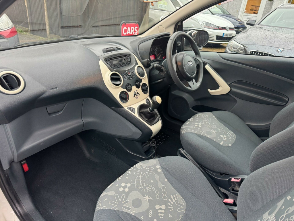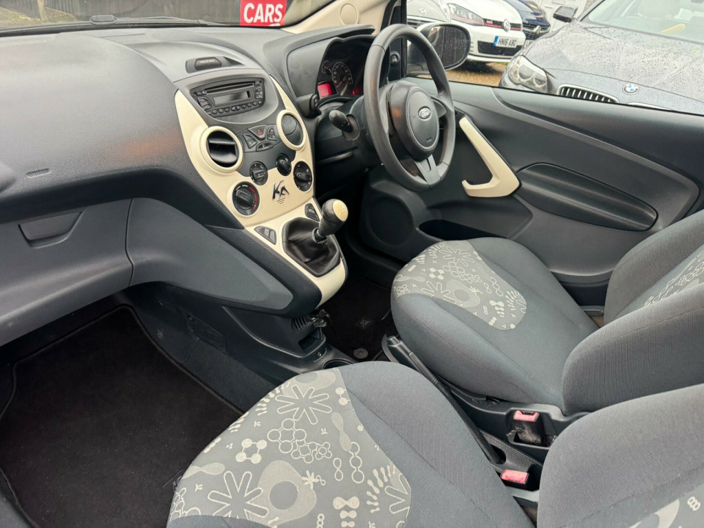 This 2015 Ford Ka Edge with exceptionally low mileage of just 44,000 miles. This compact and stylish, efficient 1.2 litre petrol engine, making it an ideal choice as a first car. Impressive fuel economy, achieving an excellent 58 miles per gallon, low CO2 emissions, low insurance group rating makes it an economical choice for many drivers, a sensible and practical vehicle. This example comes with a really good service history, has just been serviced, MOT'd, new timing belt and only £35 annual road tax. v power socket - front, 14in steel wheels - 6 spoke wheel covers, abs - anti-lock braking system, aux connection, air conditioning - manual, airbags - front passenger, airbags - passenger deactivation, body colour bumpers, body colour exterior mirrors, cd radio with mp3 and aux in connector - six radio speakers, door handles - body colour, driver seat belt minder, drivers airbag, eba - emergency brake assist, ebd - electronic brakeforce distribution, epas - electric power assisted steering, electrically-operated front windows with one touch drivers, emergency brake warning, engine immobiliser, floor mounted centre console - with single cup holder, front ashtray and cigar lighter, front dome light, front seat belts with pre-tensioners, front seatback map pockets - driver and passenger, front seats - driver tipping seat with easy entry - driver memory function, front suspension - independent with macpherson struts, front towing hook, gearshift, gearshift indicator light, headlights - courtesy delay, headlights - halogen, headlights - levelling system - automatic, headlights - manual control, high mounted brake light, immobiliser - safeguard passive anti-theft system - pats - insurance-approved category 2 immobiliser, loadspace compartment light, low series analogue cluster, mba - mechanical brake assist, manual locking doors, passengers seat manual 2-way adjustment, rear seat - one piece foldable bench seat, rear seats - isofix fittings, rear seat - head restraints, remote central locking, removable rear parcel shelf, seats - drivers 4-way adjustment, steering wheel - 3 spoke, steering column - rake adjustable, stowage box - front passenger underseat area, sunvisor - drivers with vanity mirror, sunvisor - passenger with vanity mirror, tailgate handle - body colour, tinted glass, tyre mobility kit, windscreen - heated with heated washer jets
