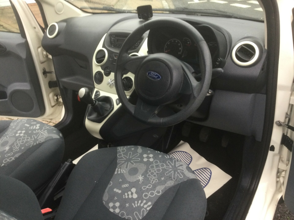 JUST ARRIVED NEW IN STOCK , PART EXCHANGE TO CLEAR , BRIGHT LITTLE FORD KA , GREAT FIRST CAR , NEW MOT , GREAT SERVICE RECORDS , LOOKS AND DRIVES WITH NO ISSUES AT ALL PERFECT , WARRANTY INCLUDED , PLEASE BE FREE TO CALL OR EMAIL ME ANY TIME NIGEL . v power socket - front, cd radio with mp3 and aux in connector - six radio speakers, 14in steel wheels - 6 spoke wheel covers, door mirrors - power operated with black housings - heated, electrically-operated front windows with one touch drivers, tinted glass, abs - anti-lock braking system, airbags - front passenger, airbags - passenger deactivation, drivers airbag, ebd - electronic brakeforce distribution, emergency brake warning, engine immobiliser, manual locking doors, rear seats - isofix fittings, remote central locking, air conditioning - manual, floor mounted centre console - with single cup holder, front ashtray and cigar lighter, front dome light, rear seat - 50-50 split rear seat, removable rear parcel shelf, seats - drivers 4-way adjustment, steering wheel - 3 spoke, steering column - rake adjustable, stowage box - front passenger underseat area, sunvisor - drivers with vanity mirror, epas - electric power assisted steering, mba - mechanical brake assist