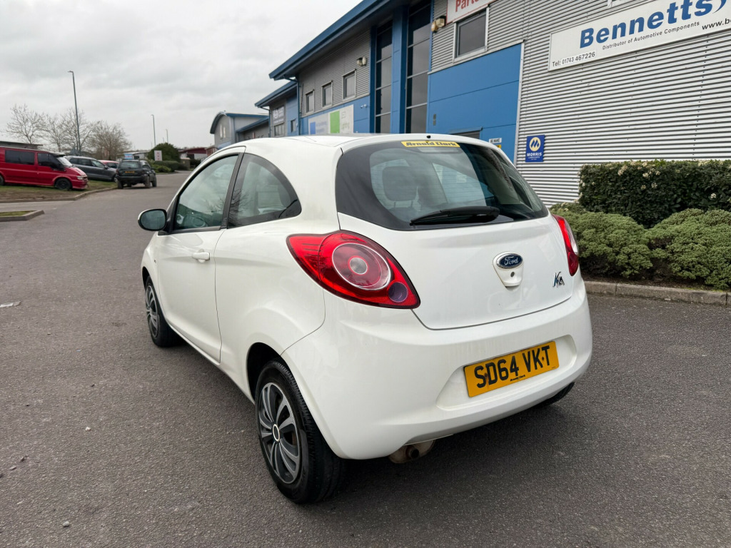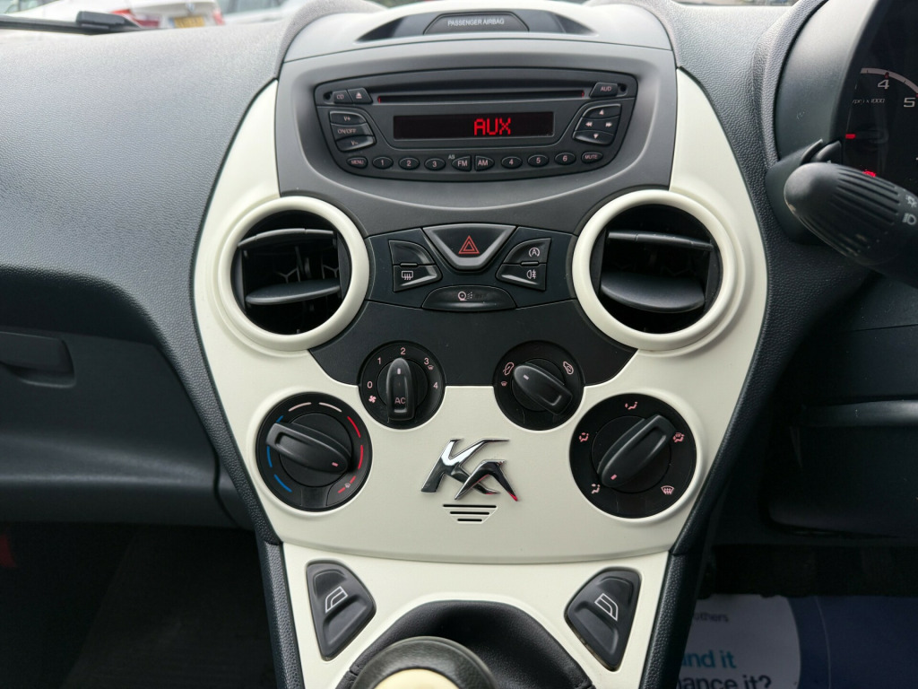 NEW STOCK AWAITING PREP - This 2014 Ford Ka 1.2 Edge Hatchback with a manual petrol engine and Euro 5 emissions compliance is a practical and reliable choice for city driving, with only 37078 miles on the clock. With 4 seats and 3 doors, it's the perfect compact car for navigating urban streets, and it's ULEZ compliant for peace of mind. The MOT doesn't expire until 17/11/2026, so you can hit the road with confidence, and it comes equipped with features such as a 12V power socket, AUX connection, CD radio with MP3 and Aux in connector, six radio speakers, and 14in steel wheels with 6 spoke wheel covers. The body color bumpers add a touch of style to this practical hatchback, making it a great all-round choice for anyone in the market for a reliable, efficient car., v power socket - front, aux connection, cd radio with mp3 and aux in connector - six radio speakers, 14in steel wheels - 6 spoke wheel covers, body colour bumpers, body colour exterior mirrors, door handles - body colour, electrically-operated front windows with one touch drivers, front towing hook, headlights - manual control, tailgate handle - body colour, tinted glass, tyre mobility kit, windscreen - heated with heated washer jets, abs - anti-lock braking system, airbags - front passenger, airbags - passenger deactivation, driver seat belt minder, drivers airbag, eba - emergency brake assist, ebd - electronic brakeforce distribution, emergency brake warning, engine immobiliser, front seat belts with pre-tensioners, immobiliser - safeguard passive anti-theft system - pats - insurance-approved category 2 immobiliser, manual locking doors, rear seats - isofix fittings, rear seat - head restraints, remote central locking, air conditioning - manual, floor mounted centre console - with single cup holder, front ashtray and cigar lighter, front dome light, front seatback map pockets - driver and passenger, front seats - driver tipping seat with easy entry - driver memory function, gearshift, loadspace compartment light, low series analogue cluster, passengers seat manual 2-way adjustment, rear seat - one piece foldable bench seat, removable rear parcel shelf, seats - drivers 4-way adjustment, steering wheel - 3 spoke, steering column - rake adjustable, stowage box - front passenger underseat area, sunvisor - drivers with vanity mirror, sunvisor - passenger with vanity mirror, epas - electric power assisted steering, front suspension - independent with macpherson struts, gearshift indicator light, mba - mechanical brake assist, headlights - courtesy delay, headlights - halogen, headlights - levelling system - automatic, high mounted brake light