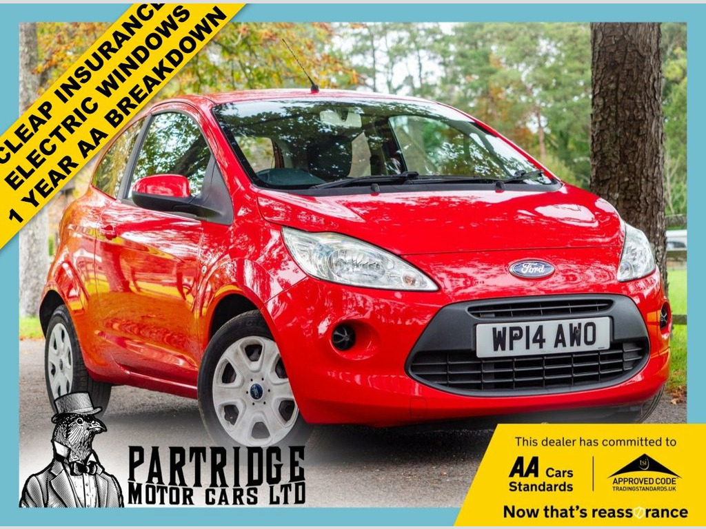 HPI CLEAR, SUPPLIED WITH NEW MOT, SUPPLIED WITH NEW SERVICE, ELECTRIC WINDOWS, RADIO CD PLAYER, CHEAP INSURANCE, PERFECT FIRST CAR, ONLY 2 OWNERS FROM NEW, 3 DOOR, MANUAL, 3 MONTHS WARRANTY, 1 YEAR AA BREAKDOWN, AA DEALER **2014 Ford Ka 1.2 Edge: 2 Owners, £35 Tax, New MOT & Service! AA Approved!** ******** The perfect first car, boasting an impeccable history! This 2014 Ford Ka is a truly fantastic example, with just **2 owners from new**. Finished in a vibrant Flame Red, this is the desirable 'Edge' model, which comes with essential features like **Air Conditioning**. The Ka is renowned for its fun-to-drive character, stylish looks, and incredibly low running costs, costing only **£35 a year in road tax** and sitting in a very low insurance group. ******** This vehicle will be fully prepared by our workshop to the highest standard. For the next owner's complete peace of mind, it will be supplied with a **brand new service** and a **fresh 12-month MOT**. ******** **Key Features:** *** **Excellent Provenance**: A fantastic history with just 2 owners from new, showing it has been well cared for. *** **1.2L Petrol Engine**: A fun, frugal, and reliable engine that is perfect for keeping insurance and fuel costs down. *** **£35 Annual Road Tax**: Incredibly cheap to tax, saving you money every year. *** **'Edge' Specification**: A great mid-range trim level that includes desirable features for a more comfortable drive. *** ** 12V Power Socket - Front, 14in Steel Wheels - 6 Spoke Wheel Covers, ABS - Anti-lock Braking System, Air Conditioning - Manual, Airbags - Front Passenger, Airbags - Passenger Deactivation, AUX Connection, Body Colour Exterior Mirrors, Bumpers - Front and Rear - Body Colour, Centre Console - China White, Cup Holder, DDS - Deflation Detection System, Door Handles - Body Colour, Driver Seat Belt Minder, Drivers Airbag, EBA - Emergency Brake Assist, EBD - Electronic Brakeforce Distribution, Electric Windows - Front, Emergency Brake Warning, Engine Immobiliser, EPAS - Electric Power Assisted Steering, ESP - Electronic Stability Programme, Front Seatback Map Pockets - Driver and , Gearshift Indicat