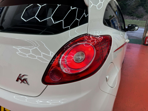This 2010 Ford Ka 1.2 Grand Prix Hatchback 3dr Petrol Manual Euro 4 (69 ps) is a stylish and efficient vehicle with only 120450 miles on the clock. Its 3 doors and 4 seats make it practical for city driving, while its ULEZ compliance ensures it can navigate urban areas without restrictions. With an MOT that expires on 19/01/2027, this hatchback is ready for the road. The 16in 7Spoke Alloy Wheels and distinctive Grand Prix Red and White stripes add a sporty touch, making it stand out from the crowd. The inclusion of a Tyre Repair kit ensures that you're always prepared for any unexpected roadside mishaps. This reliable petrol car is the perfect combination of performance and style, making it the ideal choice for any driver who values both efficiency and aesthetics. in 7spoke alloy wheels, grand prix red stripes, grand prix white stripes, tyre repair kit