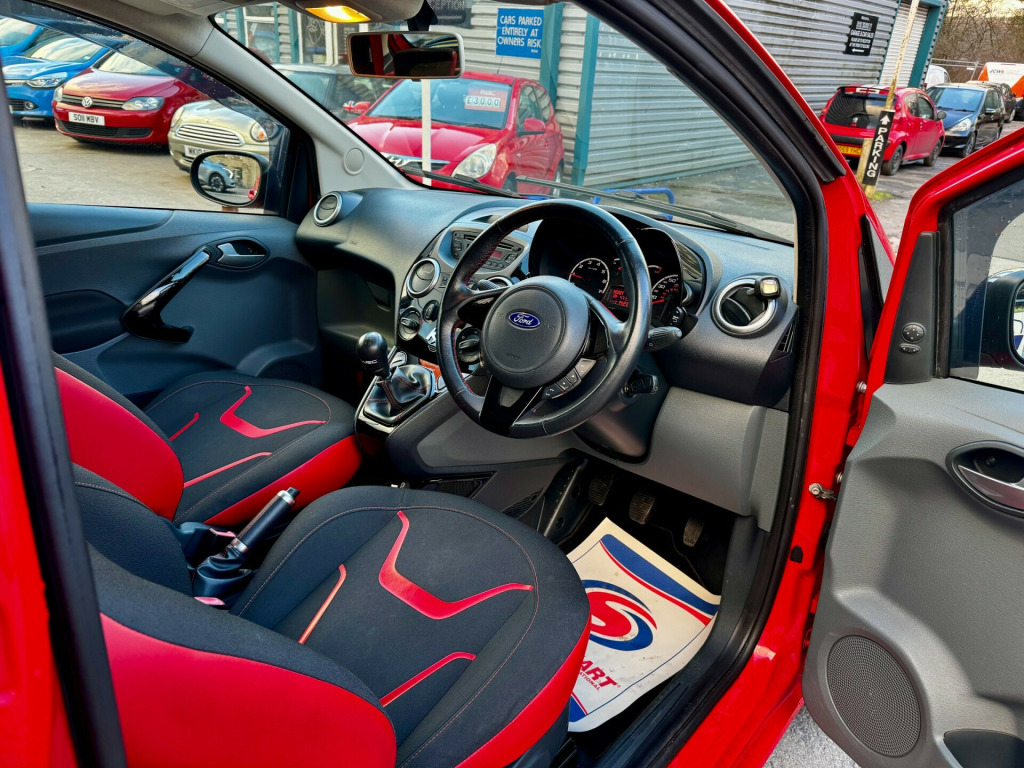 FORD KA GRAND PRIX - SPECIAL EDITION - £35 TAX - RED?2015 (15) 1.2 Petrol 5-Speed Manual 3-Door Hatchback Red - ALL MOT ADVSIORIES ADDRESSEDA sporty-looking Ford Ka Grand Prix in striking Red with factory graphics. Cheap to insure, cheap to tax and great on fuel ideal first car or economical daily runaround. Compact, easy to park and drives exactly as it should.Key Features:- 1.2 Petrol Engine- 5-Speed Manual Gearbox- Grand Prix Styling Graphics- Red Exterior Paintwork- ULEZ Compliant- £35 Annual Road Tax- Bluetooth Phone & Music Connectivity- USB & AUX Connection- Air Conditioning- Electric Windows- Multi-Function Steering Wheel- ESP Stability Control- ISOFIX Child Seat Mounting PointsMOT & Running:- MOT Valid to 11/2026- Low insurance group- Excellent fuel economy- Ideal first car or city runaroundPeace of Mind Included:- Fully Serviced & Ready To Go- Multi-Point Inspection Completed- RAC Warranty Included- 12 Months RAC Breakdown Assistance- Part-Exchange Welcome- Finance Options Available- Nationwide Delivery AvailableCall Now to Arrange a Viewing or Test Drive?V5 Present - HPI Clear - Drives Very WellCondition commensurate with age and mileage - a tidy, honest little car that's cheap to run.www.regalcar.co.uk in 7spoke alloy wheels, grand prix red stripes, grand prix white stripes, tyre repair kit