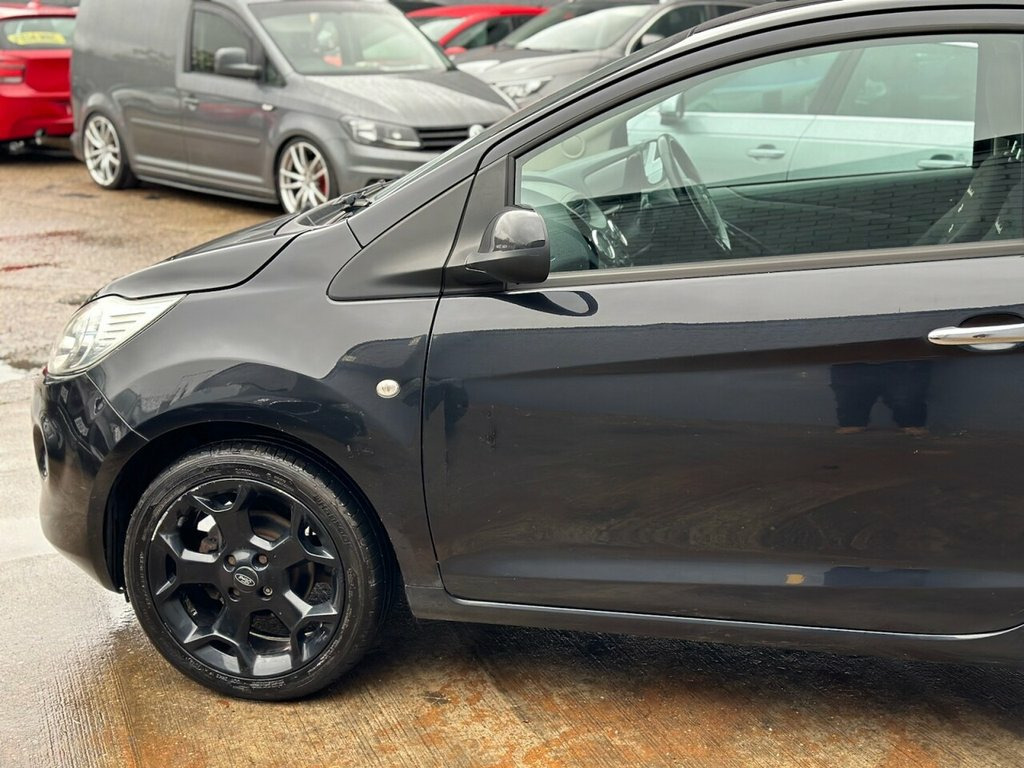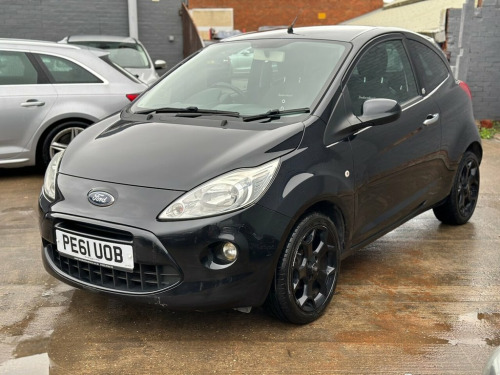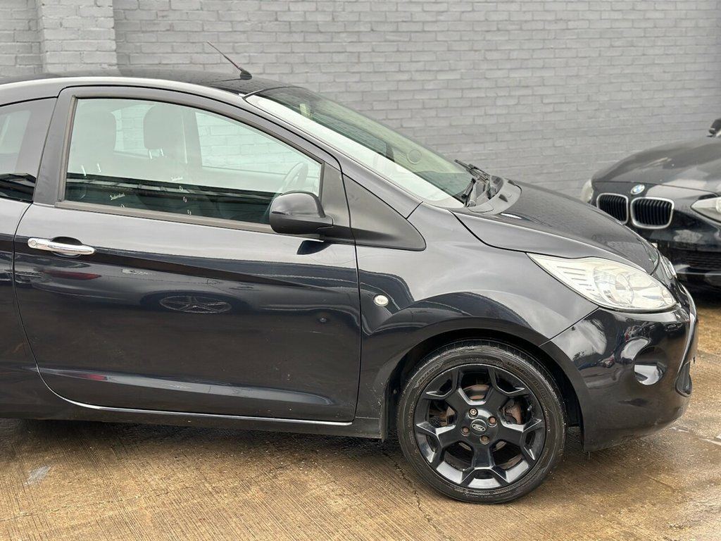 Here we have a Ford KA Manual Petrol finished in Metallic Black having only done 75,518 miles from new. The last service was completed less than 50 miles ago and also comes with a full 12 months MOT. The interior and exterior of the car have been looked after very well, it starts and drives perfectly with no issues at all. Fully HPI clear. The car will be sold with extendable Warranty. We also offer Part Exchange / Delivery / Finance, HPI report available on request. Please call us on 0121 798 2352 for further enquiries. =============================================================================== Why not read our AutoTrader reviews to see what our customers think about their experience here and why they choose to buy from us? =============================================================================== Please contact our sales department for the latest finance offers on this vehicle. We have a dedicated team researching our used car prices daily to make sure we offer the best value cars in the market, =============================================================================== To arrange a personal viewing of this amazing car, or if you would like a tailored video to be emailed to you then please contact us. =============================================================================== Please give us a call for directions. Our postcode for Sat Nav direction is B25 8EL. • Finance subject to status, T&C's apply. , Metallic - Midnight, PAS, Trip computer, Engine immobiliser, Locking wheel bolts, Remote central locking, 6 speakers, Radio/CD + MP3, 12V Accessory socket, 2 way manual adjustable passenger seat, 4 way manually adjustable drivers seat, Air conditioning, Boot carpet, Boot light, Cloth upholstery, Coloured leather steering wheel, Courtesy light delay, Driver seat memory function, Front and rear velour floor mats, Front head restraints, Front passenger underseat storage tray, Front seat back map pockets, Front seats - 'Easy Entry', Interior stowage net, Isofix, Leather handbrake grip, Passenger sunvisor with vanity mirror, Rake adjustable steering column, Rear head restraints, Removable rear pa
