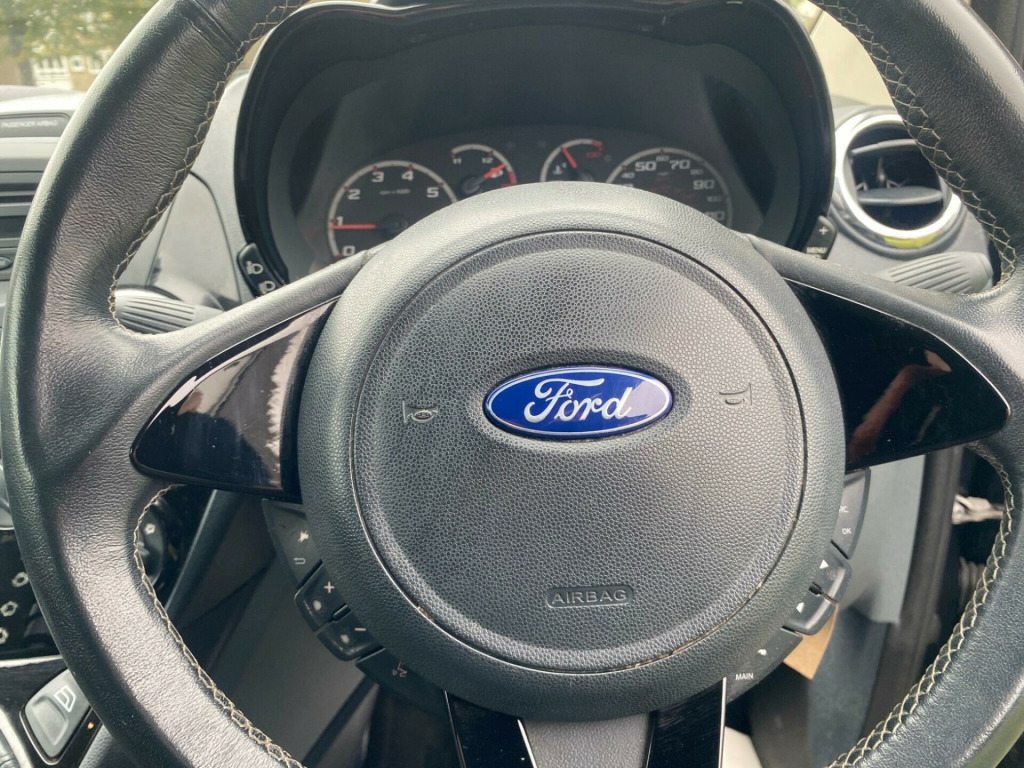 Discover this 2015 Ford Ka Metal, a compact car offering a blend of style and practicality. Powered by a responsive 1.2 litre petrol engine, this model is equipped with manual air conditioning to keep you comfortable on every journey. The driver's seat features a useful tipping function for easy entry and exit, along with a memory function to recall your preferred seating position.This Ford Ka Metal stands out with its thoughtful features designed to enhance your driving experience. The inclusion of driver memory seats and manual air conditioning demonstrates a focus on driver comfort and convenience, setting it apart from other vehicles in its class. It represents a well appointed option for those seeking a reliable and comfortable city car. v power socket - front, 16in alloy wheels, 16in alloy wheels - 5 spoke - y design, abs - anti-lock braking system, aux connection, air conditioning - manual, airbags - front passenger, airbags - passenger deactivation, black velour floor mats with aluminium ka logo, body colour bumpers, cd radio with mp3 and aux in connector - six radio speakers, chrome finish exhaust pipe, door handles - chrome, door mirrors - power operated with body colour housings heated, driver seat belt minder, drivers airbag, eba - emergency brake assist, ebd - electronic brakeforce distribution, epas - electric power assisted steering, electrically-operated front windows with one touch drivers, emergency brake warning, engine immobiliser, flexible accessory holder - piano black, floor mounted centre console - with single cup holder, front ashtray and cigar lighter, front dome light, front fog lights, front lower grille - black, front seat belts with pre-tensioners, front seatback map pockets - driver and passenger, front seats - driver tipping seat with easy entry - driver memory function, front suspension - independent with macpherson struts, front towing hook, gear knob - leather, gearshift indicator light, gloss b-pillar foil with chrome finish ka logo, handbrake cover - leather, head restraints - black fabric, headlights - courtesy delay, headlights - halogen, headlights - levelling system - automatic, headlights - manual control, heated front windscreen, high mounted brake light, high series analogue cluster, immobiliser - safeguard passive anti-theft system - pats - insurance-approved category 2 immobiliser, individual matal ka, loadspace compartment light, mba - mechanical brake assist, manual locking doors, passengers seat manual 2-way adjustment, piano black painted gearshift knob with syracuse leather and chrome finish insert, rear privacy glass, rear seat - 50-50 split rear seat, rear seats - isofix fittings, rear seat - head restraints, remote central locking, removable rear parcel shelf, seats - drivers 4-way adjustment, steering wheel - leather-trimmed, steering column - rake adjustable, stowage box - front passenger underseat area, sunvisor - drivers with vanity mirror, sunvisor - passenger with vanity mirror, syracuse leather handbrake handle with black stitching and gaiter with black stitching, syracuse leather steering wheel with silver stitching and bezel in piano black, tailgate handle - body colour with chrome finisher, theatre style dimming, theatre-style dimming, trip computer, tyre mobility kit, windscreen - heated with heated washer jets