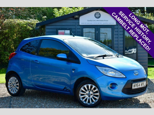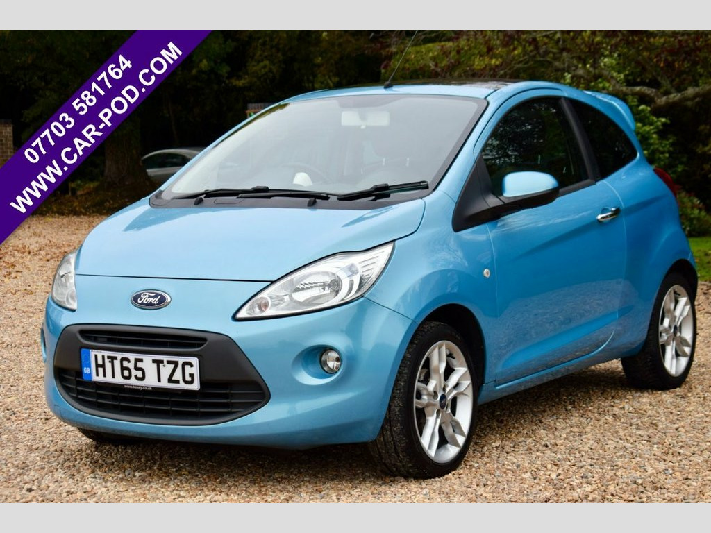 Welcome to Car-Pod and our advert for this Low Mileage Metallic 'Scuba Blue' Ford KA 1.2 Titanium which joins us with just 2 Owners from New, Service History (5 Services to 60k miles) and will come with a New MOT upon purchase. As an added bonus, this popular little hatchback is in a Low Insurance Group (Insurance Group 3) and is just £35/year Road Tax! This particular example has an unusual amount of upgrades including a Panoramic Glass Roof, Heated Leather Seats, Reverse Parking Sensors, Heated Windscreen, 16in Alloy Wheels, Electric Windows and Mirrors, Fingertip Audio Controls, Air Conditioning and 2 Keys. First to see will buy, so call now to book your personal viewing! 14in temporary spare Wheel, Leather- Leather Pack- Ka, Rear spoiler, Reverse Parking Aid, Scuba, Tyre Repair kit