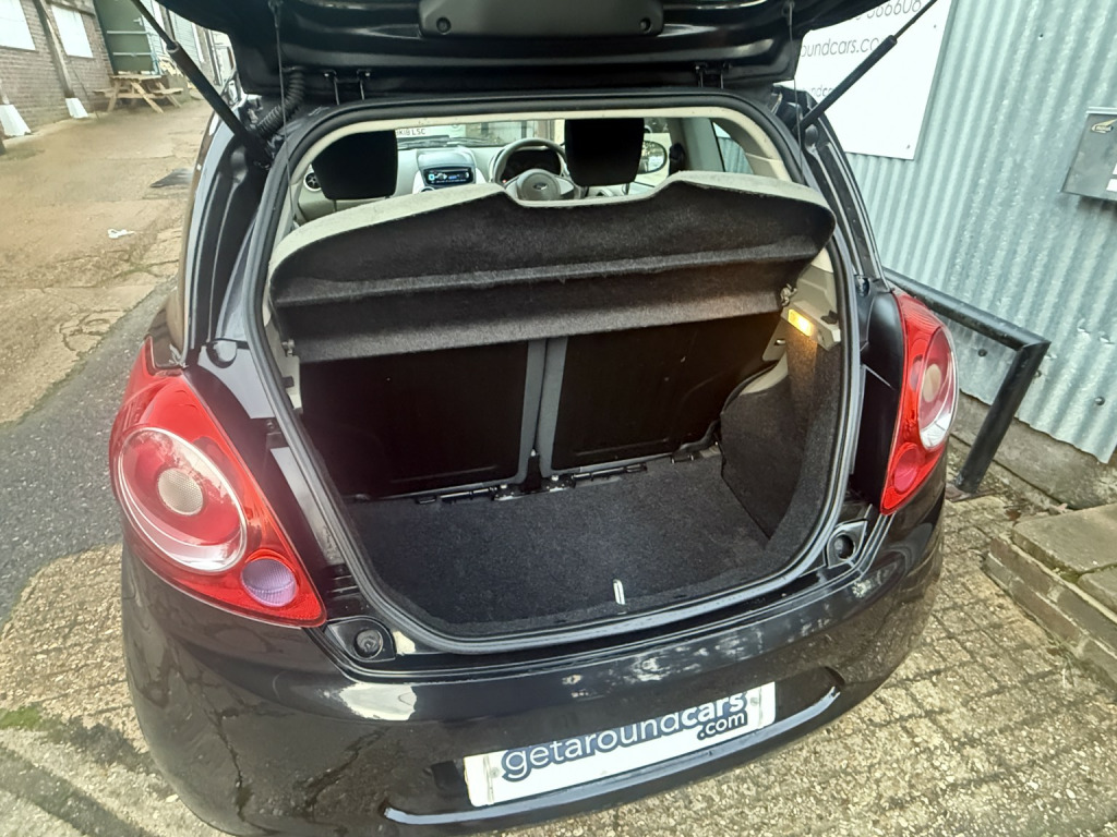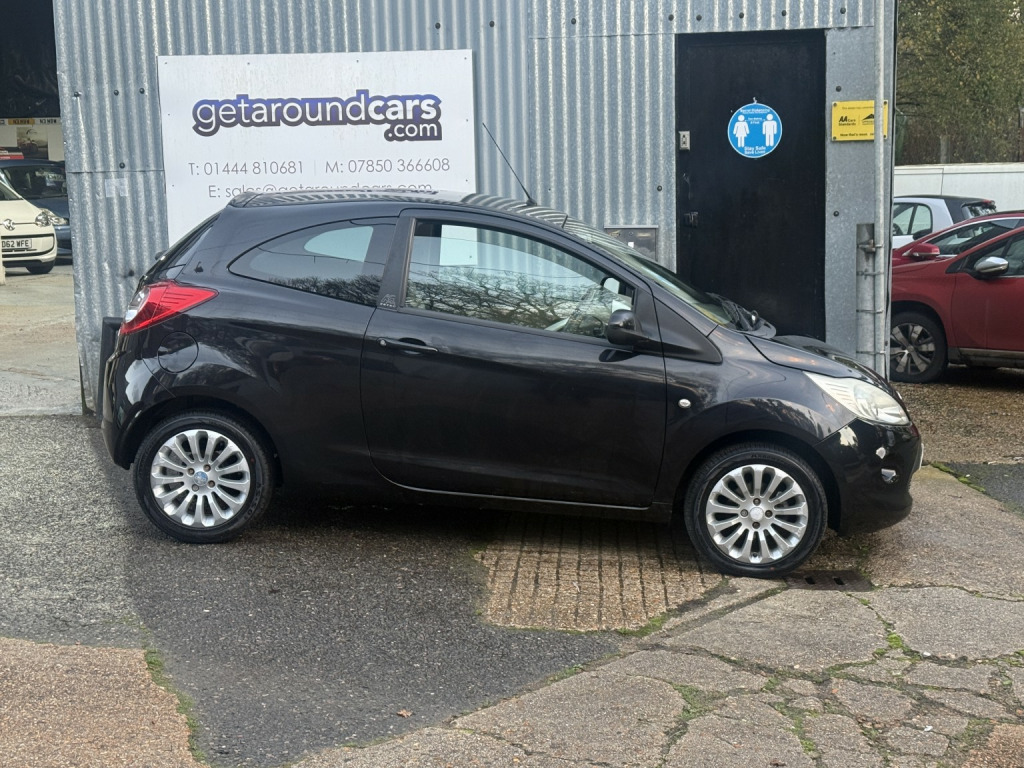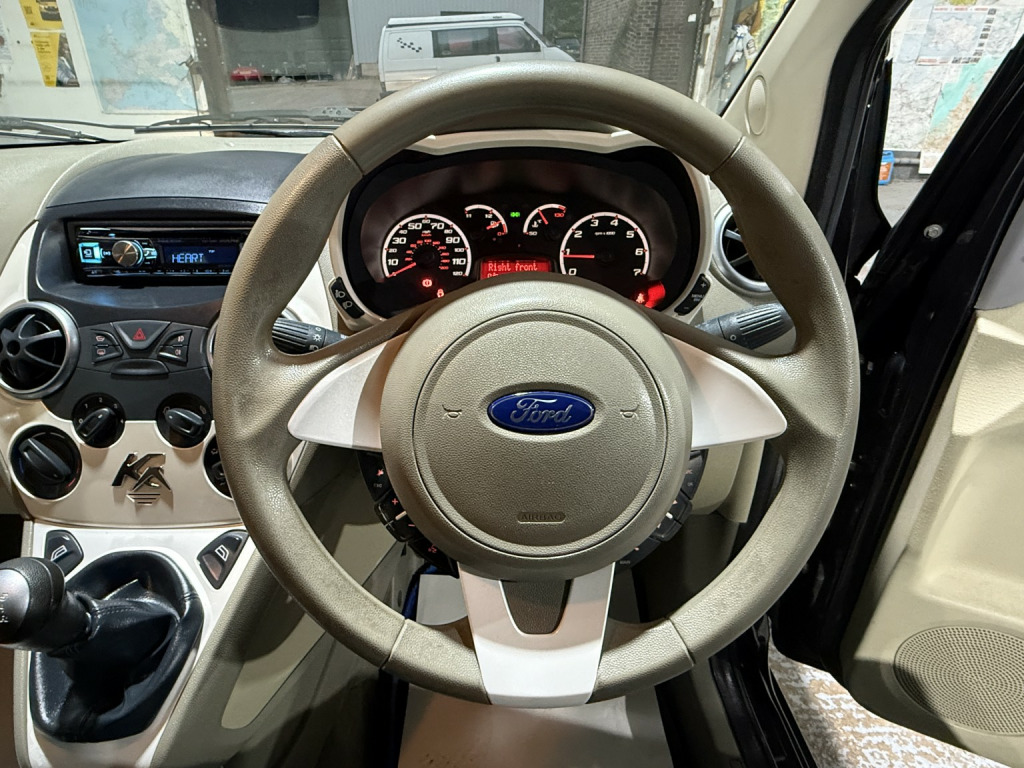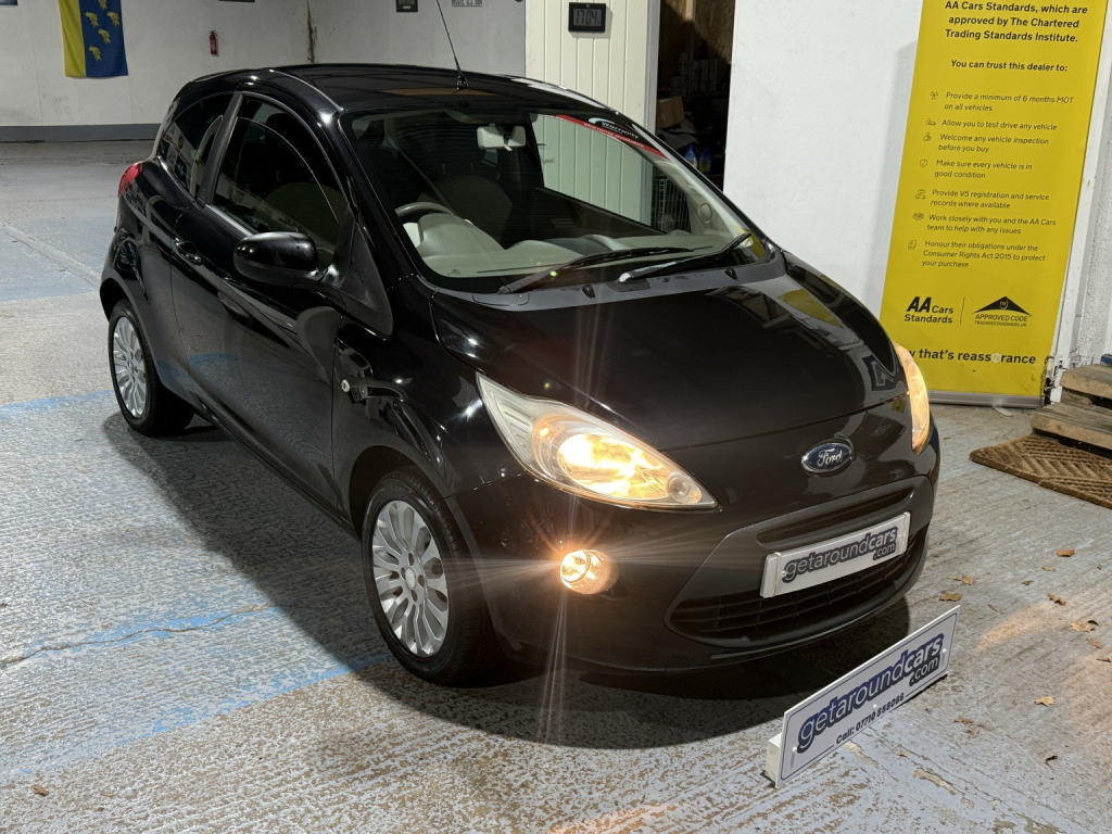 getaround in this immaculate 1.2 petrol KA from Ford. This 5-speed manual Zetec model looks great finished in black with contrasting dark cloth interior. It has a good spec that includes alloy wheels, electric windows, electric mirrors, remote locking, radio with hands-free phone prep and air-conditioning. It has a comprehensive service history that is made up of some 7-dealer stamps and a long advisory-free MOT. It comes with two keys, locking wheel nut, fully stamped service booklet, clear HPi certificate. Phone, text or email for an appointment to view this cheap to run and cheap to insure ulez compliant hatchback soon.
