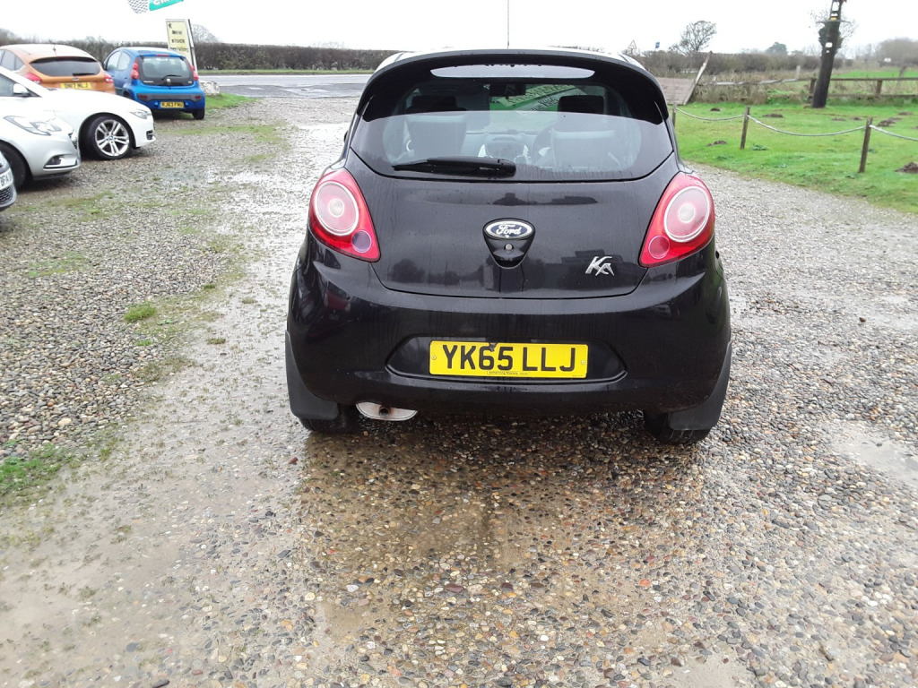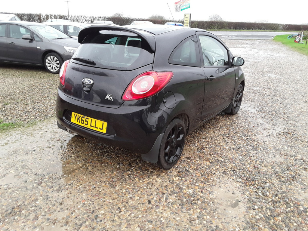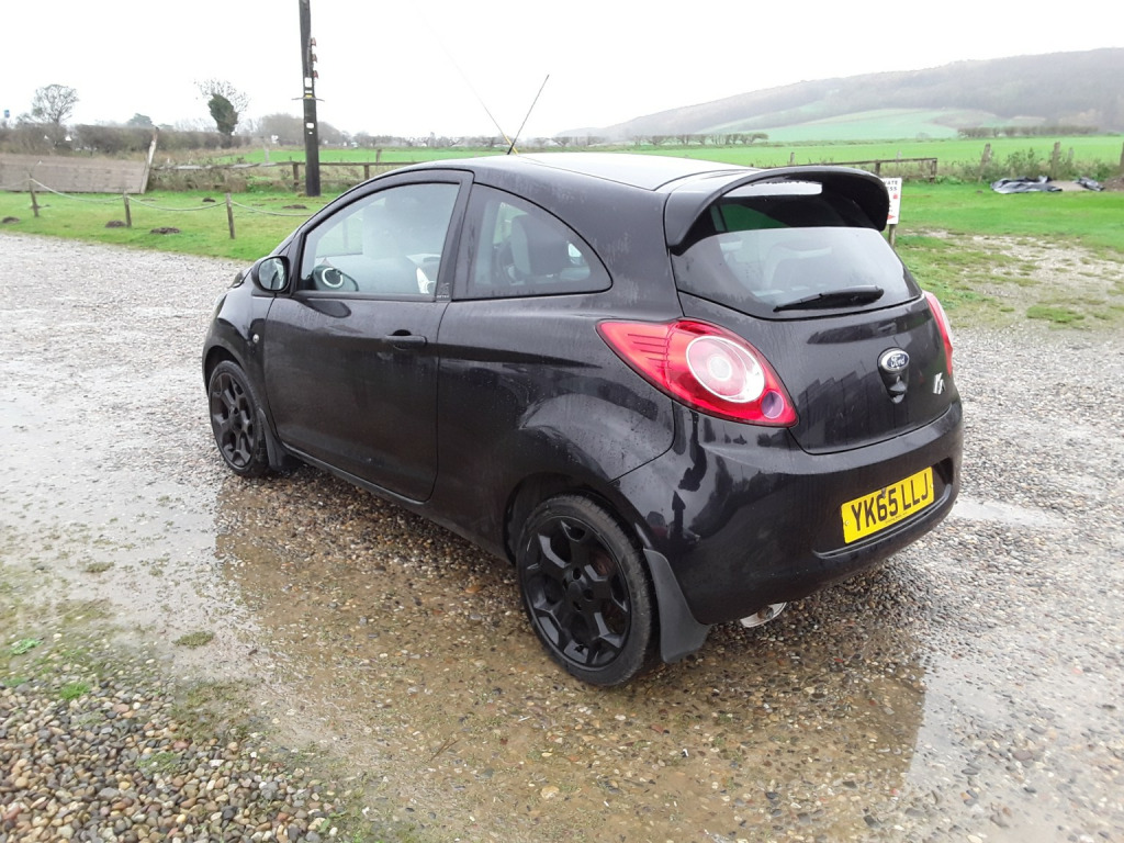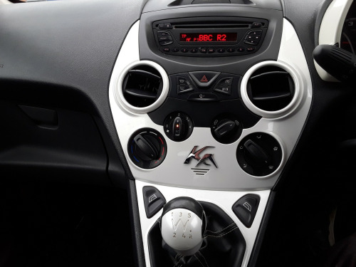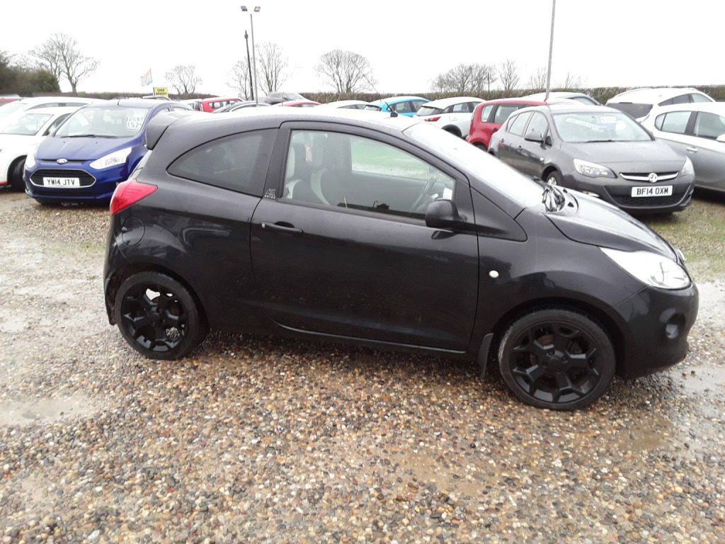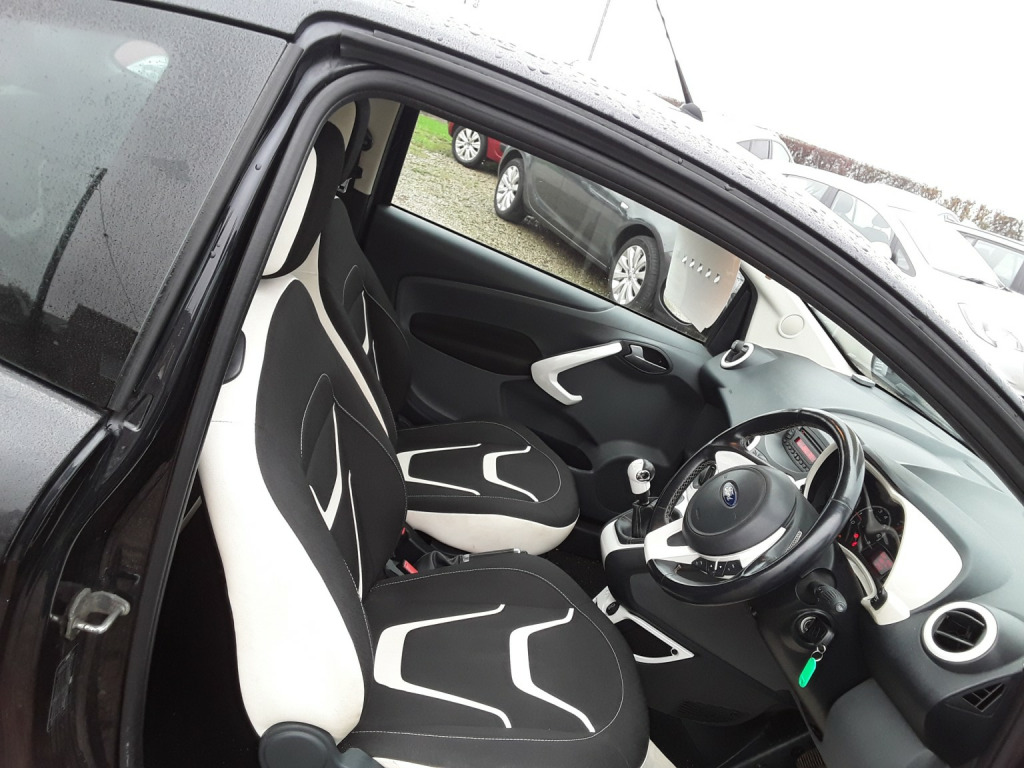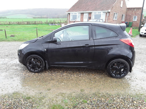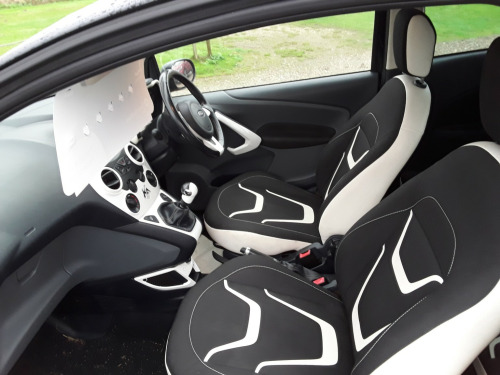 SAPPHIRE BLACK METALLIC WITH BLACK/WHITE DECALS.FORD KA ZETEC BLACK EDITION 1242cc PETROL. LOW MILEAGE OF 68,000 MILES WITH FULL SERVICE HISTORY. COMES WITH 12 MONTHS M.O.T.AND A FRESH SERVICE TO BRING THE BOOK UP TO DATE. ONLY £35 PER YEARS ROAD TAX,AVERAGE 56 M.P.G.VERY NICE CONDITION INSIDE AND OUT. DRIVES FANTASTIC. GREAT LOOKING CAR IF YOU REQUIRE A 1ST TIME CAR.NICE REAR SPOILER AND GLOSS BLACK ALLOYS, AND STYLISH INTERIOR.BLUETOOTH FOR YOUR PHONE.REAR PARKING SENSORS. 1ST TO SEE WILL BUY.