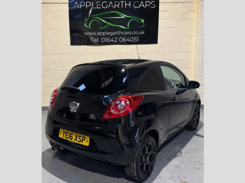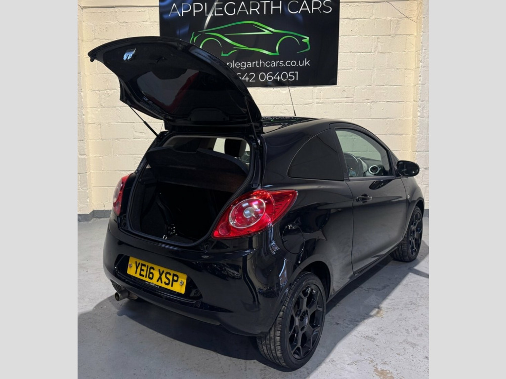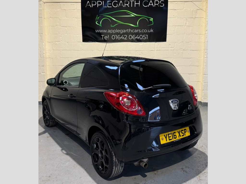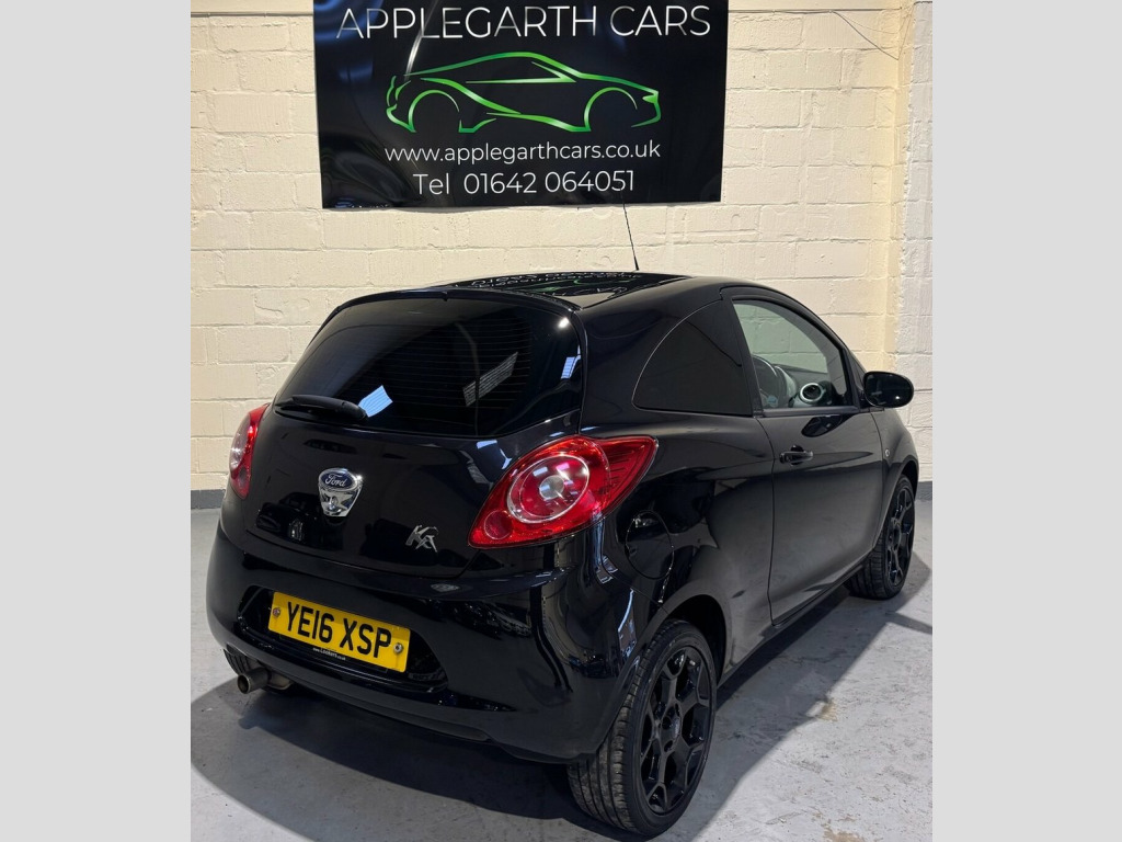 Ford Ka 1.2 Zetec Black Edition Hatchback 3dr Petrol Manual Euro 6 (s/s) (69 PS) Registration: YE16 XSP Year: 2016 (16) Mileage: 30,863 miles Body Type: Hatchback Fuel Type: Petrol Transmission: Manual Colour: Black This 2016 Ford Ka Zetec Black Edition is a well-presented, low-mileage example of a highly popular and economical small hatchback. Designed with urban driving in mind, it offers excellent fuel efficiency, low insurance costs and easy manoeuvrability, while still providing a high level of comfort, safety and modern technology. Fitted with Ford's proven 1.2 litre petrol engine producing 69 PS, this Ka delivers a smooth and responsive drive that is ideal for both city use and longer journeys. The Euro 6 compliant engine with start/stop technology ensures reduced emissions and improved fuel economy, making it affordable to run and compliant with current emission standards. The Zetec Black Edition stands out thanks to its distinctive styling upgrades, giving the car a sportier and more premium appearance compared to standard models. Finished in sleek black, this edition offers a refined yet youthful look that remains popular with drivers of all ages. Exterior Specification: Zetec Black Edition exterior styling Gloss black finish 15-inch alloy wheels Body-coloured bumpers and door mirrors Front fog lights Heated front windscreen (Quickclear) Compact 3-door hatchback design, ideal for city parking Interior Specification: Cloth interior with Zetec trim 12V Power Socket - Front, 16in Alloy Wheels - 5 Spoke - Y Design -, ABS - Anti-lock Braking System, AUX Connection, Air Conditioning - Manual, Air Vents - White Accents, Airbags - Front Passenger, Airbags - Passenger Deactivation, Bluetooth Hands-free Phone, Body Colour Exterior Mirrors, Bumpers - Front and Rear - Body Colour, Centre Console - Pearl White, Connectivity Pack, Cup Holder, DDS - Deflation Detection System, Door Handles - Body Colour, Door Mirrors - Electrically Operated and, Driver Seat Belt Minder, Drivers Airbag, EBA - Emergency Brake Assist, EBD - Electronic Brakeforce Distribution, EPAS - Electric Power Assisted Steering, ESP - Electronic Stability Programme, Electric Windo