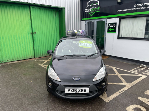 SUPPLIED WITH 12 MONTHS MOT AND A SERVICE 5 SERVICE STAMPS For sale is a sleek and stylish 2016 Ford Ka 1.2 Zetec Black Edition Hatchback with a 3-door design, perfect for urban driving and city commutes. This petrol vehicle has only covered 90000 miles and is ULEZ compliant, ensuring it meets the standards for low emissions. With 4 seats and a MOT expiry date of 09/12/2025, this car provides comfortable and reliable transportation for years to come. The Euro 6 engine delivers 69 ps of power, and the manual transmission offers a dynamic driving experience. The car comes equipped with modern features such as a 12V Power Socket, AUX Connection, Bluetooth Hands-free Phone, Connectivity Pack, and a Radio CD Player MP3 Compatible system, making it both practical and enjoyable to drive. Don't miss out on this top-quality hatchback that combines efficiency, style, and performance.Select automotive solutions pride ourselves on 5-star service and reviews we are a small family ran business, with over 30 years in the trade, Select Automotive Solutions pride ourselves on supplying vehicles at affordable prices we have teamed up with AA putting you in safe hands with all cars provided with a minimum of 6 months MOT,We welcome any inspection before you buy. Please visit us or take a look on our website at similar stock.We are located 10 minutes from M4/M5 with many quality vehicles to choose from. We offer full dealer facilities, low deposit finance, all debit cards accepted.Please call 0117 2050727 for out of hours response ON THIS VEHICLE please SMS or WhatsApp 07970797964 v power socket - front, aux connection, bluetooth hands-free phone, connectivity pack, radio cd player mp3 compatible, speakers - x4, usb connection, 16in alloy wheels - 5 spoke - y design - black, body colour exterior mirrors, bumpers - front and rear - body colour, door handles - body colour, door mirrors - electrically operated and heated, electric windows - front, heated front windscreen, heated washer jets, locking wheel nuts, privacy glass, tailgate handle - body colour, tyre mobility kit, abs - anti-lock braking system, airbags - front passenger, airbags - passenger deactivation, driver seat belt minder, drivers airbag, eba - emergency brake assist, ebd - electronic brakeforce distribution, esp - electronic stability programme, emergency brake warning, engine immobiliser, hill start assist, ips - intelligent protection system, rear seats - isofix fittings, remote central locking, steering wheel - white accents, air conditioning - manual, air vents - white accents, centre console - pearl white, cup holder, flexible accessory holder, floor mats - contrast white stitching, floor mats - front and rear - velour, front seatback map pockets - driver and passenger, gearshift knob - black with silver insert, head restraints - rear seat, interior trim - contrast black-white, loadspace compartment light, loadspace floor carpet, pollen filter, rear seat - 50-50 split rear seat, removable package tray, seats - driver and passenger tipping with easy entry, seats - drivers 4-way adjustment, seats - front passenger 2-way adjustment, steering column - tilt adjustment, steering wheel - contrast white stitching, steering wheel - leather, sunvisor - drivers with vanity mirror, sunvisor - passenger with vanity mirror, theatre style dimming, dds - deflation detection system, epas - electric power assisted steering, gearshift indicator light, trip computer, front fog lights, headlights - courtesy delay, headlights - halogen, headlights - levelling control, high mounted brake light