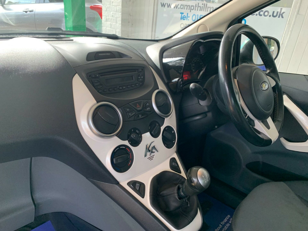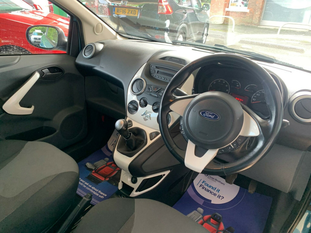 Air Conditioning, Two Keys, HPI Clear, Fully Inspected, Discover this 2015 Ford Ka Zetec, a compact car offering a blend of practicality and comfort. Powered by a 1.2 litre petrol engine, this model is equipped with manual air conditioning to keep you comfortable in all weather. A standout feature for the driver is the tipping front seat with an easy entry function and a memory setting, ensuring a personalised and convenient driving experience.The Ford Ka Zetec is designed to make your journeys more enjoyable. The inclusion of air conditioning means you can maintain a pleasant cabin temperature, while the driver's seat memory function allows for quick and easy adjustment if multiple people drive the car. These thoughtful features contribute to a superior experience compared to other vehicles in its class, making this Ka a sensible choice for everyday driving. v power socket - front, 15in alloy wheels - multispoke, abs - anti-lock braking system, aux connection, air conditioning - manual, airbags - front passenger, airbags - passenger deactivation, body colour bumpers, cd radio with mp3 and aux in connector - six radio speakers, door handles - body colour, door mirrors - power operated with body colour housings heated, driver seat belt minder, drivers airbag, eba - emergency brake assist, ebd - electronic brakeforce distribution, epas - electric power assisted steering, electrically-operated front windows with one touch drivers, emergency brake warning, engine immobiliser, flexible accessory holder - pearl white, floor mats - front and rear - velour, floor mounted centre console - with single cup holder, front ashtray and cigar lighter, front dome light, front fog lights, front seat belts with pre-tensioners, front seatback map pockets - driver and passenger, front seats - driver tipping seat with easy entry - driver memory function, front suspension - independent with macpherson struts, front towing hook, gearshift, gearshift indicator light, headlights - courtesy delay, headlights - halogen, headlights - levelling system - automatic, headlights - manual control, heated front windscreen, high mounted brake light, high series analogue cluster, immobiliser - safeguard passive anti-theft system - pats - insurance-approved category 2 immobiliser, loadspace compartment light, mba - mechanical brake assist, manual locking doors, passengers seat manual 2-way adjustment, rear privacy glass, rear seat - 50-50 split rear seat, rear seats - isofix fittings, rear seat - head restraints, remote central locking, removable rear parcel shelf, seats - drivers 4-way adjustment, steering wheel - leather-trimmed, steering column - rake adjustable, stowage box - front passenger underseat area, sunvisor - drivers with vanity mirror, sunvisor - passenger with vanity mirror, tailgate handle - body colour, theatre style dimming, theatre-style dimming, trip computer, tyre mobility kit, windscreen - heated with heated washer jets