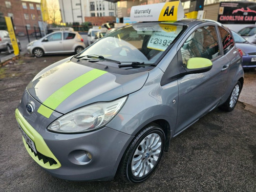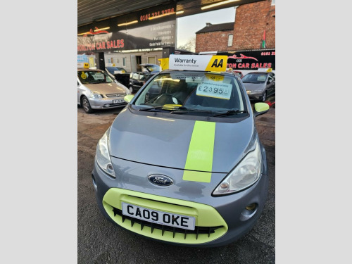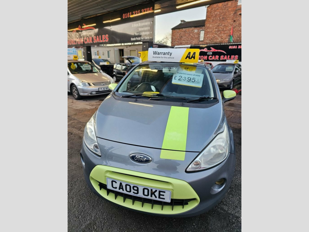 Here we have for sale a lovely 2009 ford ka zetec in a lovely metallic Grey with the lovely lime green stripes from factory. It is the small 1.2L petrol engine which is great for new or first drivers as they are cheap to insure and very economical to run. It has covered very low mileage for its age of just over 80000 miles backed by some service history. It will come with a full 12month mot with no advisories and a full service from ourselves upon purchase. Very clean car both cosmetically and mechanically. First to see will buy. Here at chorlton car sales we strive to deliver 100% customer satisfaction to all our customers therefore we offer a full 3month aa warranty for complete piece of mind. Extended warranty is available by the reputable aa warranties for up to 12months as we are approved dealers for them. They are the uks number one warranty company. We are now proudly part of the aa dealer promise as aa approved dealers which means you can buy through us with complete confidence. Delivery available. 5day driveaway insurance available.12month aa breakdown cover with all vehicles. All major cards accepted. All forms of payment accepted. Open 7days a week. ESP, Curtain Airbags, Side Airbags, Leather Steering Wheel, Digital exterior Pack, 15in Alloy Wheels, Tattoo exterior Pack, 16in Alloy Wheels, 14in temporary spare Wheel, 15in 13Spoke Alloy Wheels, Air Conditioning, Body colour door handles, Body colour tailgate handle, Front Passenger underseat storage tray, Steel spare Wheel, Tyre Repair kit