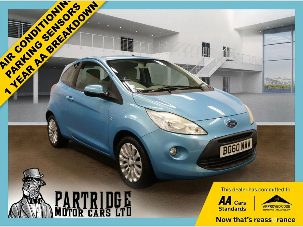 HPI CLEAR, SUPPLIED WITH NEW MOT, SUPPLIED WITH NEW SERVICE, AIR CONDITIONING, PARKING SENSORS, ALLOY WHEELS, ELECTRIC WINDOWS, CHEAP INSURANCE, RADIO CD PLAYER, 3 MONTHS WARRANTY, 1 YEAR AA BREAKDOWN, AA DEALER **2010 Ford Ka 1.2 Zetec: Scuba Blue, Air Con, Parking Sensors! AA Approved!** ******** The perfect choice for a first car or a stylish city runaround! This is the 2010 Ford Ka in the popular 'Zetec' specification. Finished in the vibrant and sought-after **Scuba Blue** metallic, this car offers a fantastic mix of fun styling and low running costs. The Zetec trim is the one to have, adding body-coloured bumpers and stylish **Alloy Wheels** to the package. Powered by a reliable **1.2L petrol engine**, it is incredibly cheap to insure and fuel, making it ideal for new drivers. Unusually for a car of this size, this example also features **Rear Parking Sensors**, making it even easier to park. ******** **Key Features:** *** **1.2L Petrol Engine**: A punchy yet frugal engine that shares parts with the Fiat 500, offering proven reliability and low insurance premiums. *** **'Zetec' Specification**: A desirable trim level that includes 15-inch alloy wheels, front fog lights, and upgraded interior cloth. *** **Air Conditioning**: A vital feature for keeping the cabin cool and demisting windows quickly in winter. *** **Rear Parking Sensors**: A fantastic bonus feature that takes the stress out of parallel parking. *** **Scuba Blue Metallic**: A fun, b 15in 13Spoke Alloy Wheels, Air Conditioning, Body colour door handles, Body colour tailgate handle, Front Passenger underseat storage tray, Scuba, Steel spare Wheel, Tyre Repair kit
