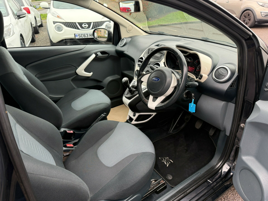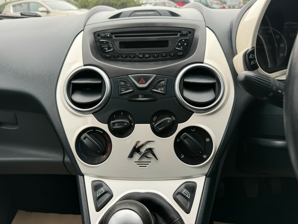 NEW STOCK AWAITING PREP- This 2014 Ford Ka 1.2 Zetec Hatchback with 84953 miles on the clock is a stylish and practical choice for those in the market for a reliable petrol car. With MOT expiring on 22/10/2026, this 3-door, 4-seat vehicle is ULEZ compliant, making it ideal for city driving. The Euro 5 (s/s) engine delivers 69 ps, ensuring a smooth and efficient drive. The car comes equipped with 12V Power Socket, AUX Connection, CD Radio with MP3 and Aux in Connector, and Six Radio Speakers for entertainment on the go. The 15in Alloy Wheels and Body Colour Bumpers add a touch of class to the exterior. Don't miss the chance to own this practical and stylish hatchback., v power socket - front, aux connection, cd radio with mp3 and aux in connector - six radio speakers, 15in alloy wheels - multispoke, body colour bumpers, door handles - body colour, door mirrors - power operated with body colour housings heated, electrically-operated front windows with one touch drivers, front towing hook, headlights - manual control, heated front windscreen, rear privacy glass, tailgate handle - body colour, tyre mobility kit, windscreen - heated with heated washer jets, abs - anti-lock braking system, airbags - front passenger, airbags - passenger deactivation, driver seat belt minder, drivers airbag, eba - emergency brake assist, ebd - electronic brakeforce distribution, emergency brake warning, engine immobiliser, front seat belts with pre-tensioners, immobiliser - safeguard passive anti-theft system - pats - insurance-approved category 2 immobiliser, manual locking doors, rear seats - isofix fittings, rear seat - head restraints, remote central locking, air conditioning - manual, flexible accessory holder - pearl white, floor mats - front and rear - velour, floor mounted centre console - with single cup holder, front ashtray and cigar lighter, front dome light, front seatback map pockets - driver and passenger, front seats - driver tipping seat with easy entry - driver memory function, gearshift, high series analogue cluster, loadspace compartment light, passengers seat manual 2-way adjustment, rear seat - 50-50 split rear seat, removable rear parcel shelf, seats - drivers 4-way adjustment, steering wheel - leather-trimmed, steering column - rake adjustable, stowage box - front passenger underseat area, sunvisor - drivers with vanity mirror, sunvisor - passenger with vanity mirror, theatre style dimming, theatre-style dimming, epas - electric power assisted steering, front suspension - independent with macpherson struts, gearshift indicator light, mba - mechanical brake assist, trip computer, front fog lights, headlights - courtesy delay, headlights - halogen, headlights - levelling system - automatic, high mounted brake light